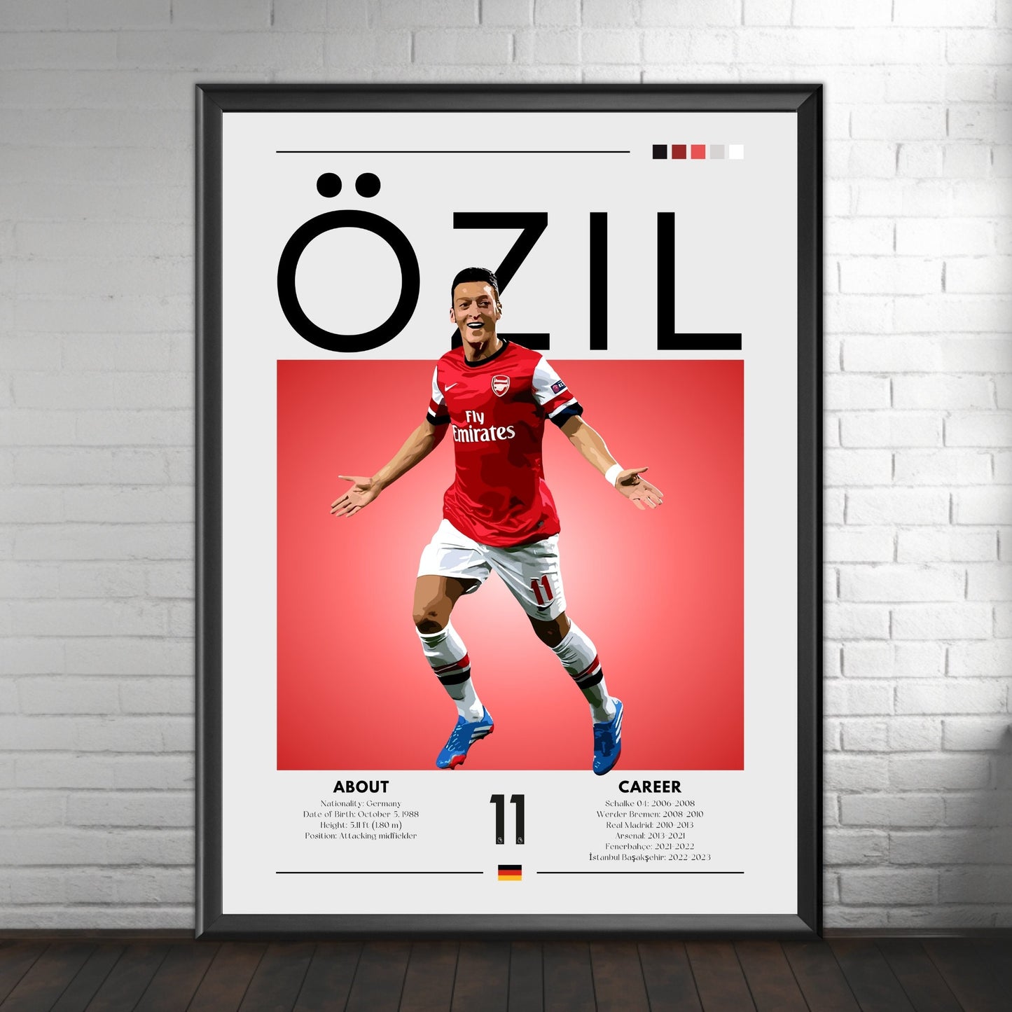 Revivez l'élégance et la vision de Mesut Özil avec cette magnifique affiche de football d'Arsenal signée Brighton Posters. Mettant en scène le maestro allemand en pleine créativité, cette affiche capture son jeu exceptionnel et sa classe lors de son passage inoubliable à l'Emirates.