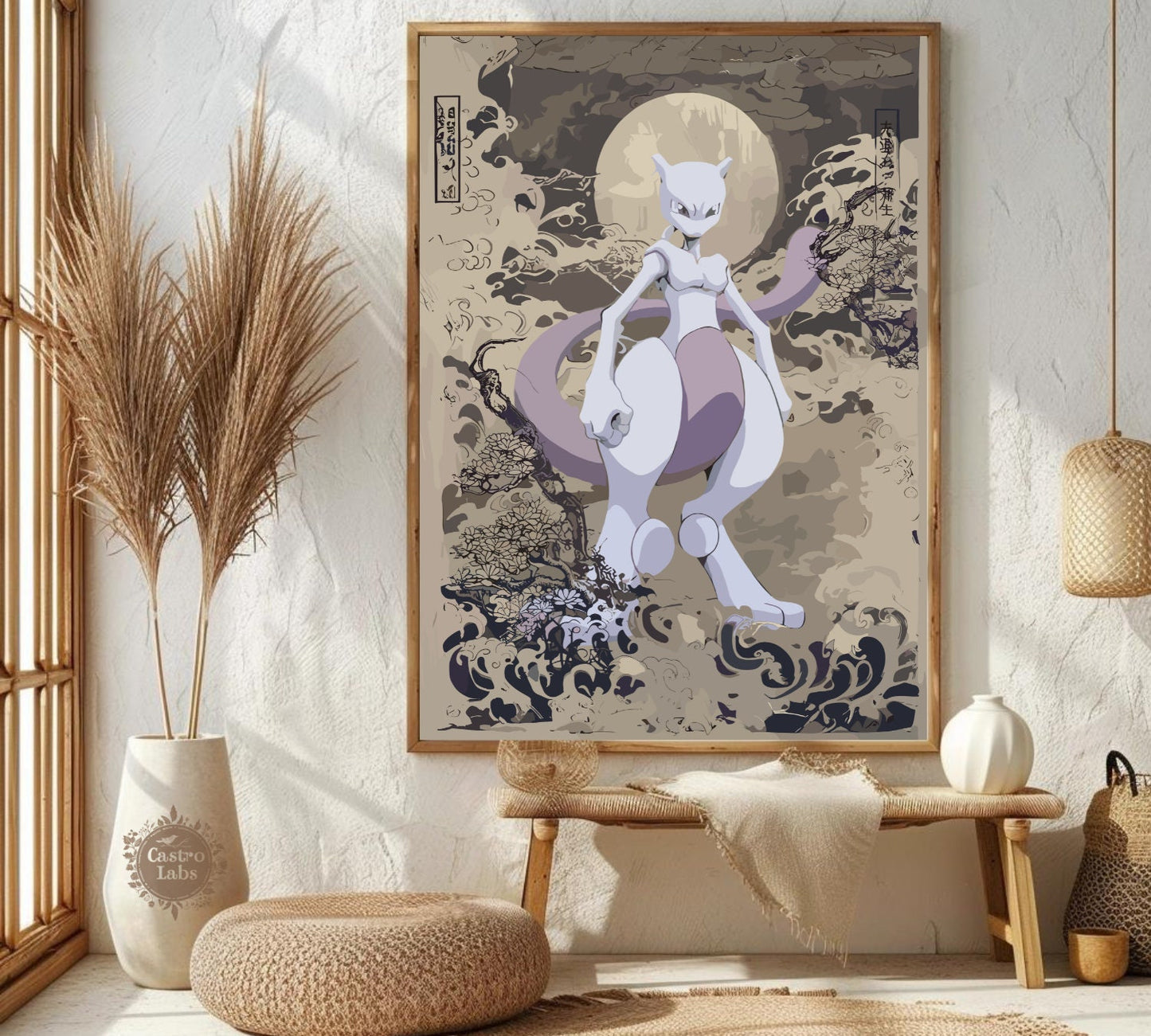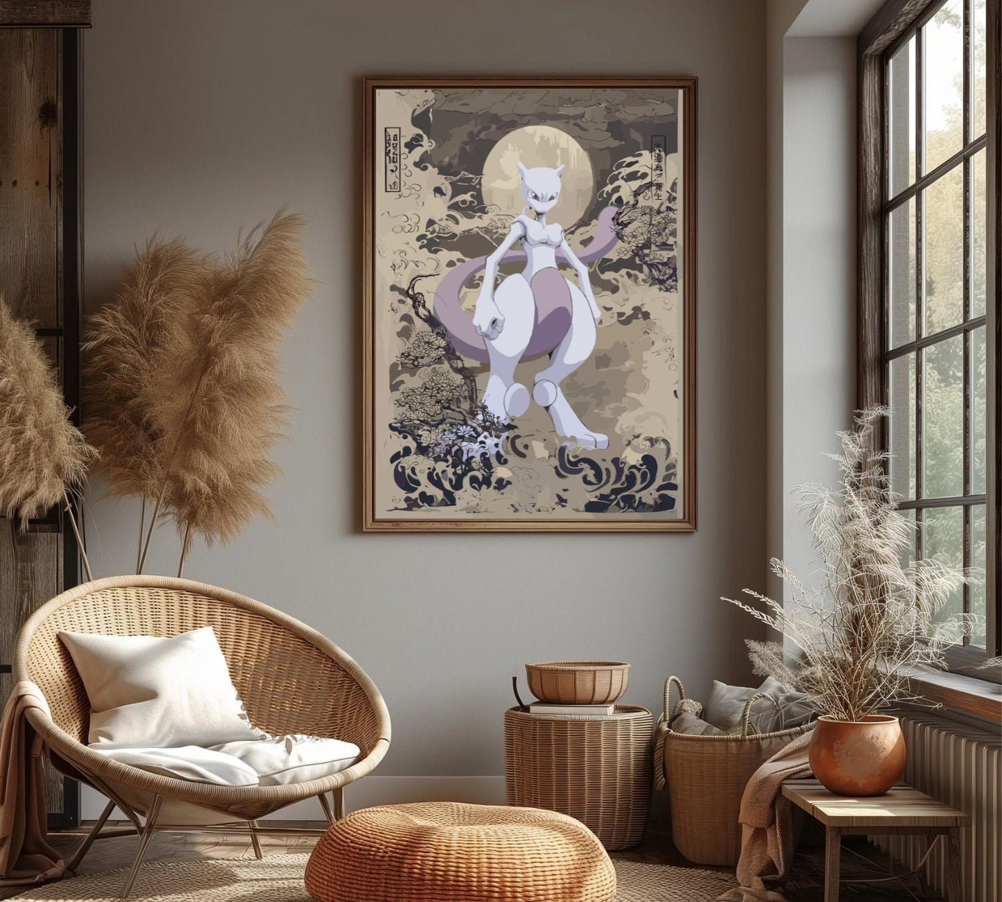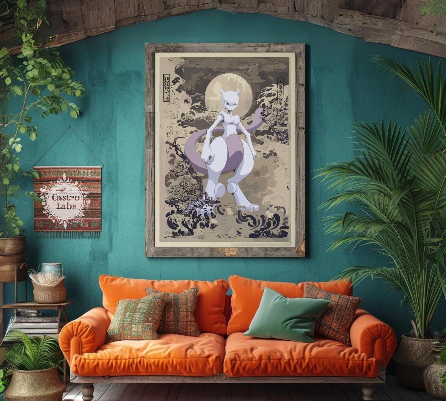 Affiche japonaise Mewtwo - Pokémon légendaires JCC et décoration murale animée