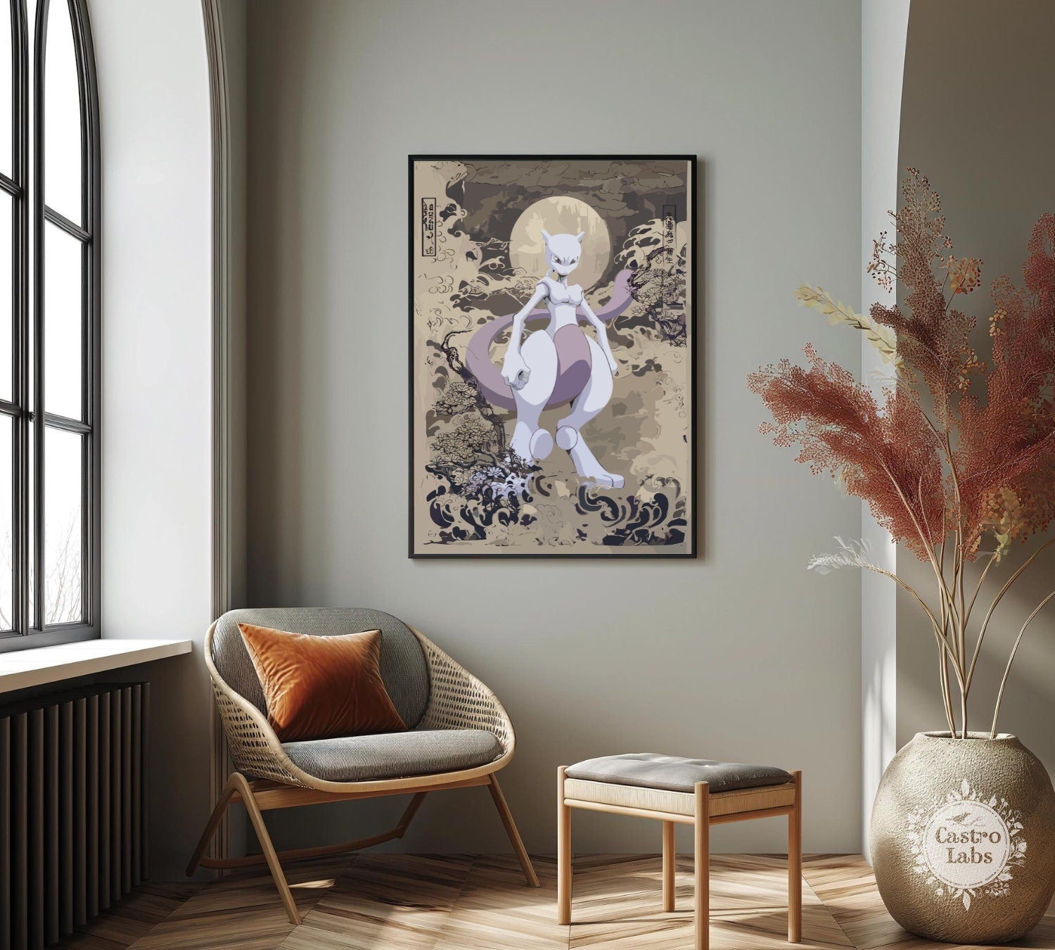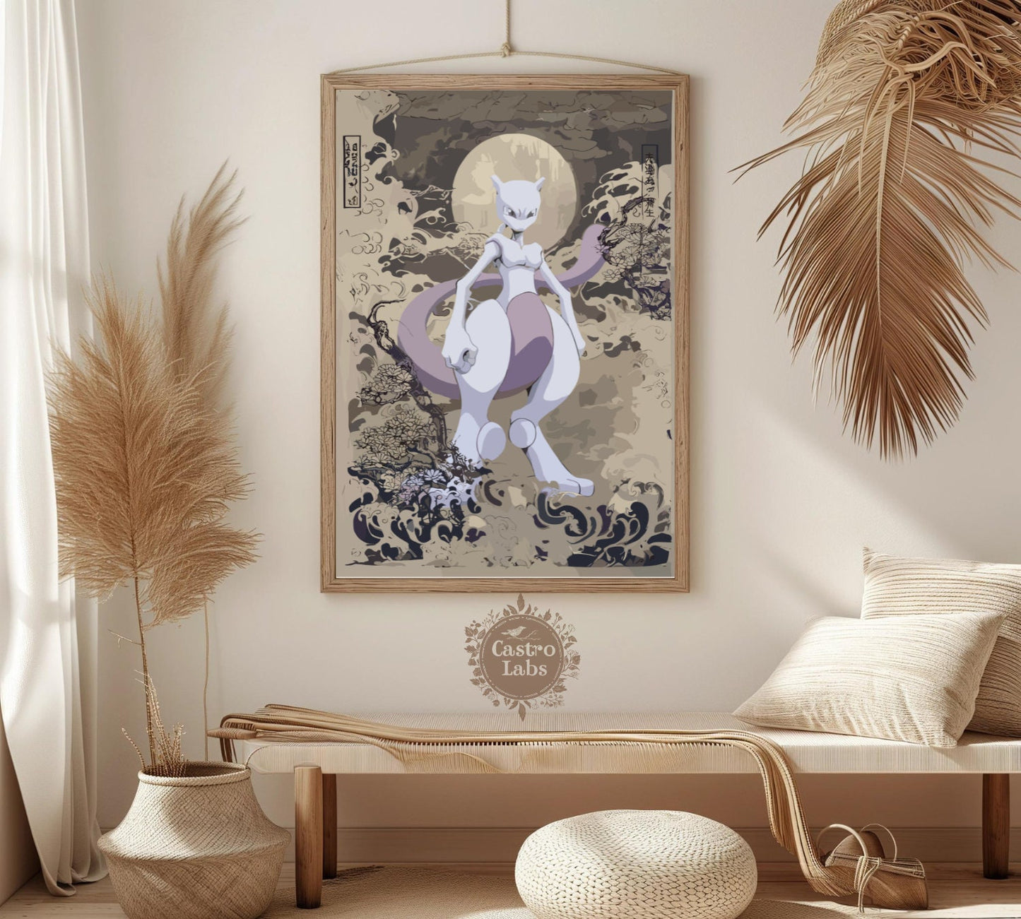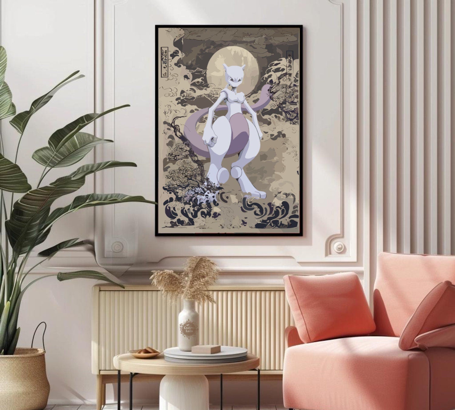 Affiche japonaise Mewtwo - Pokémon légendaires JCC et décoration murale animée