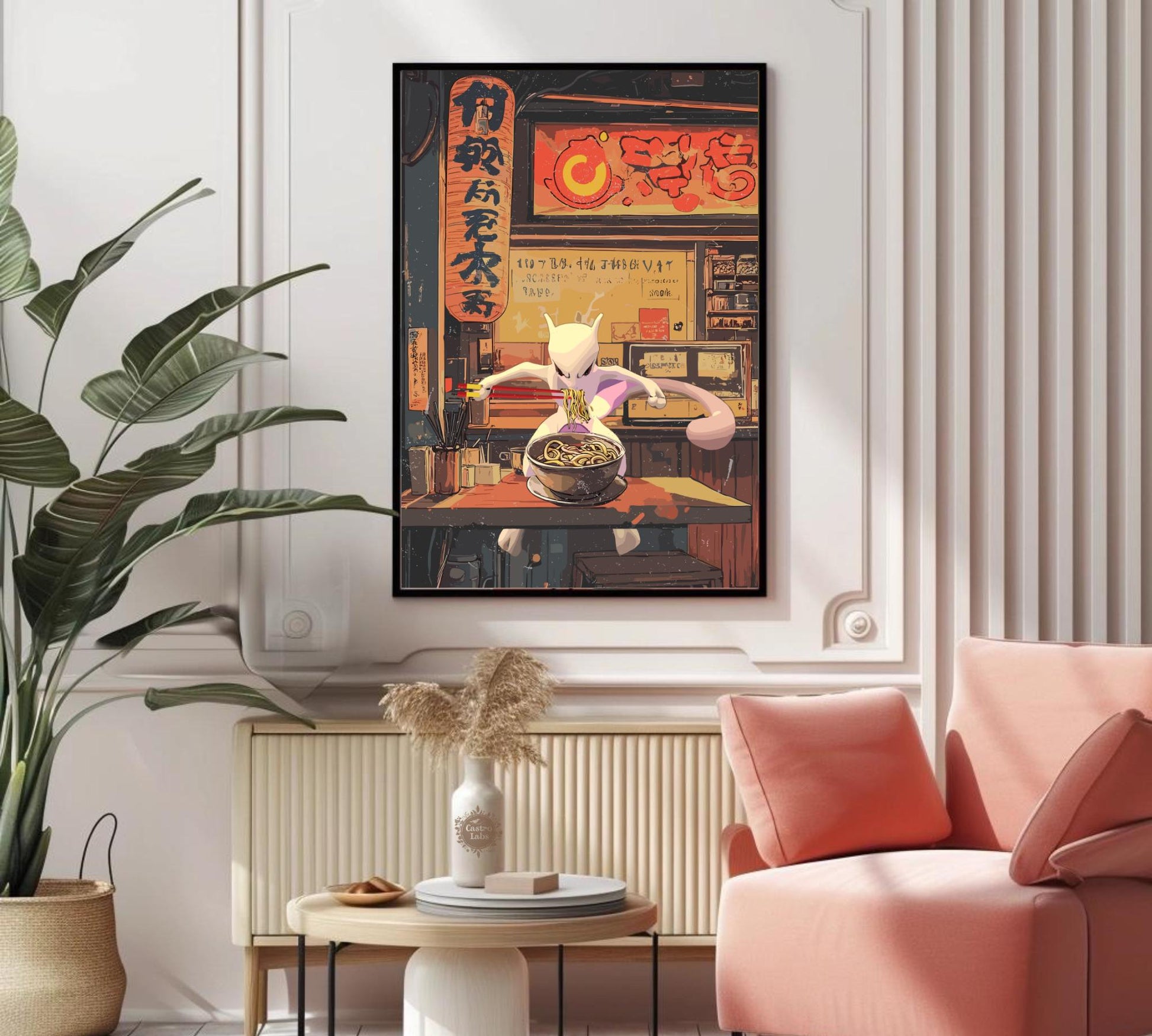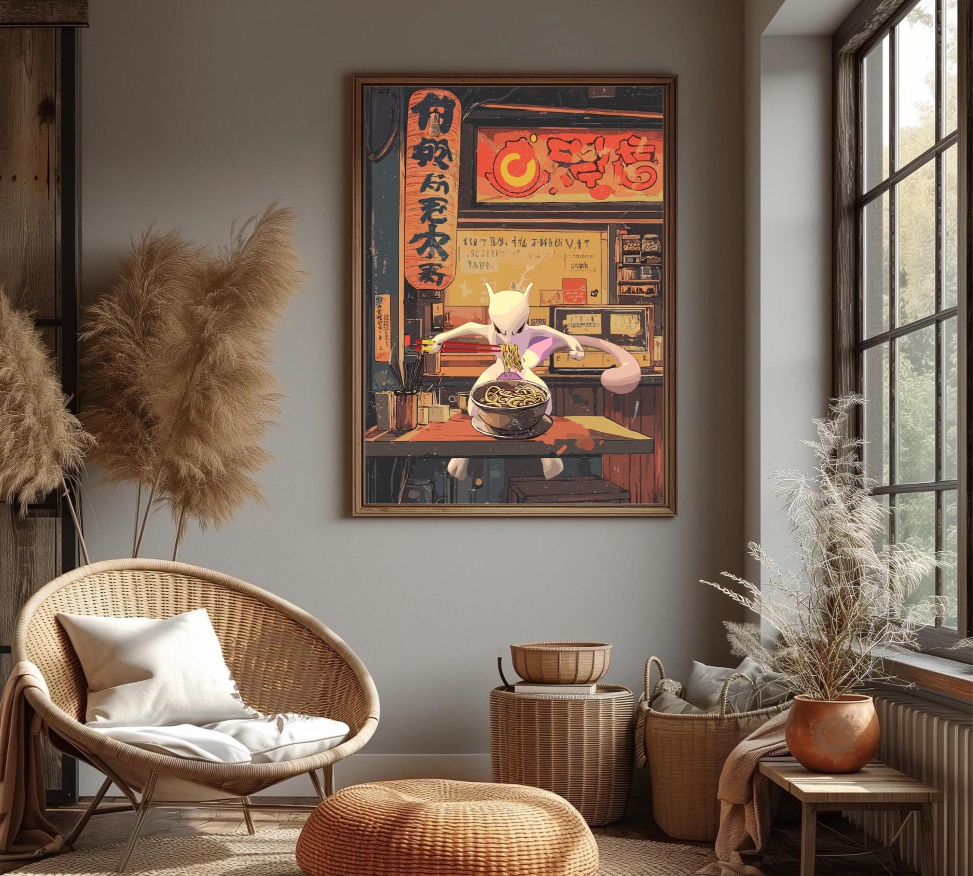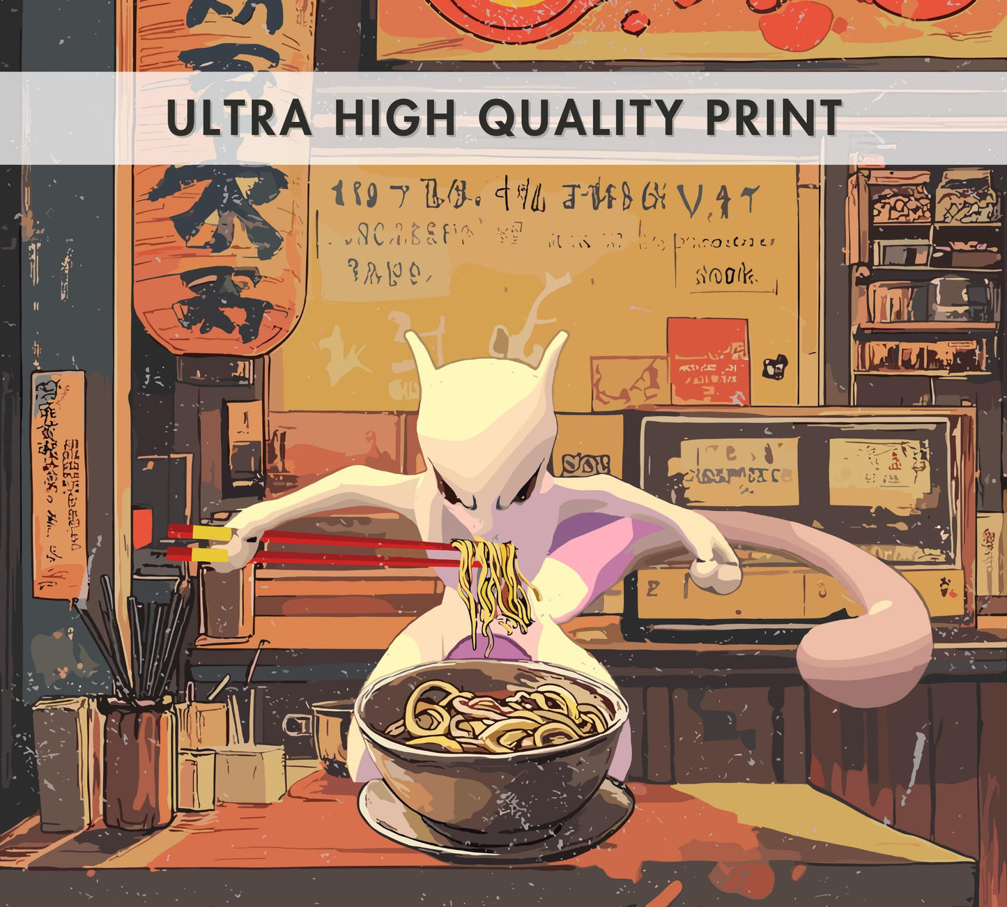 Affiche Mewtwo Ramen - Décoration murale Pokémon japonaise | Décoration Anime et Nouilles