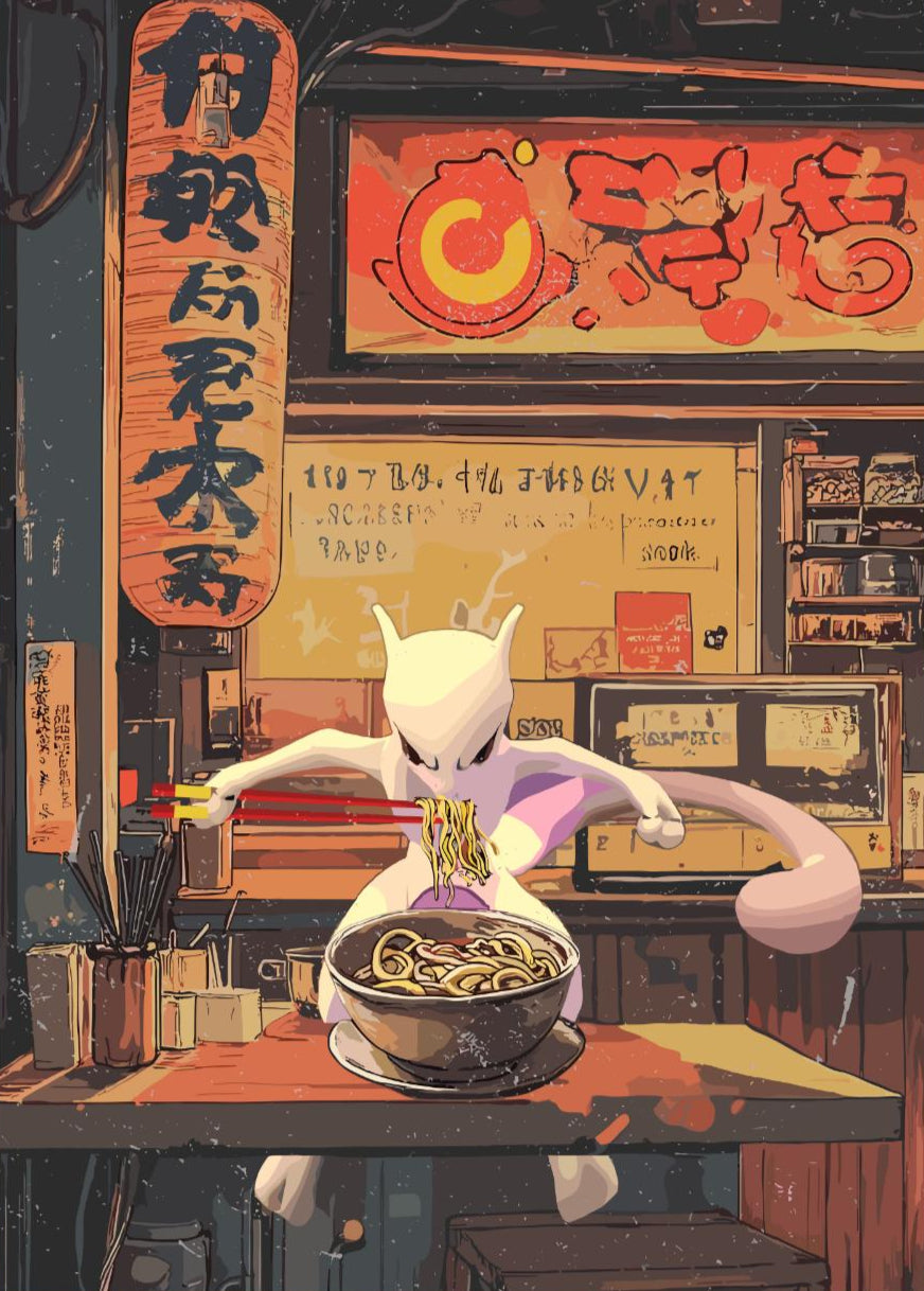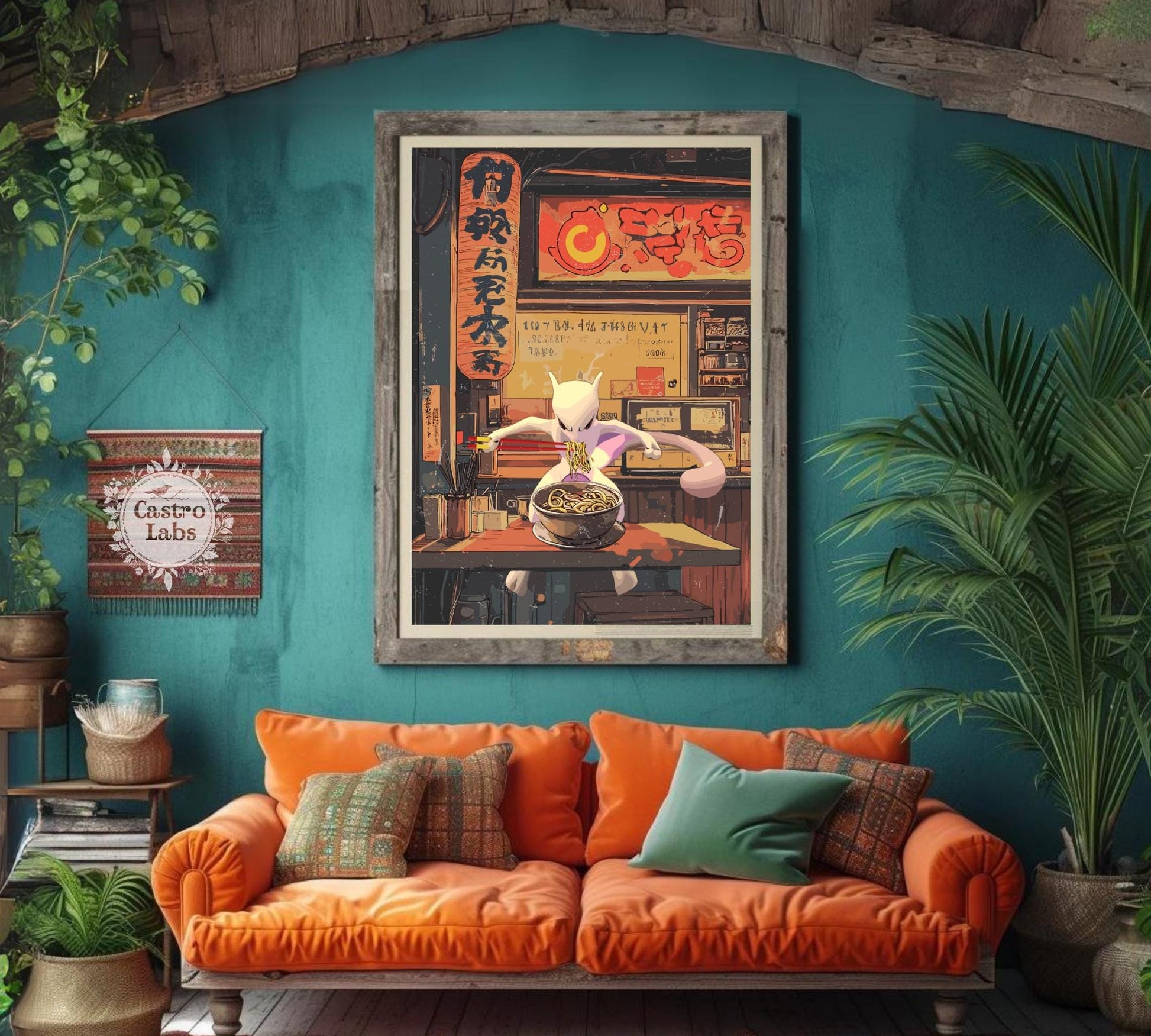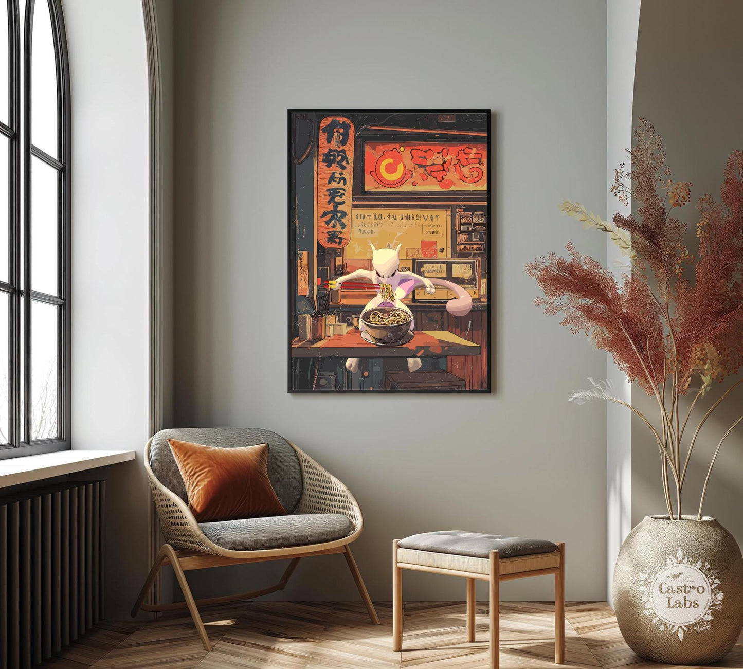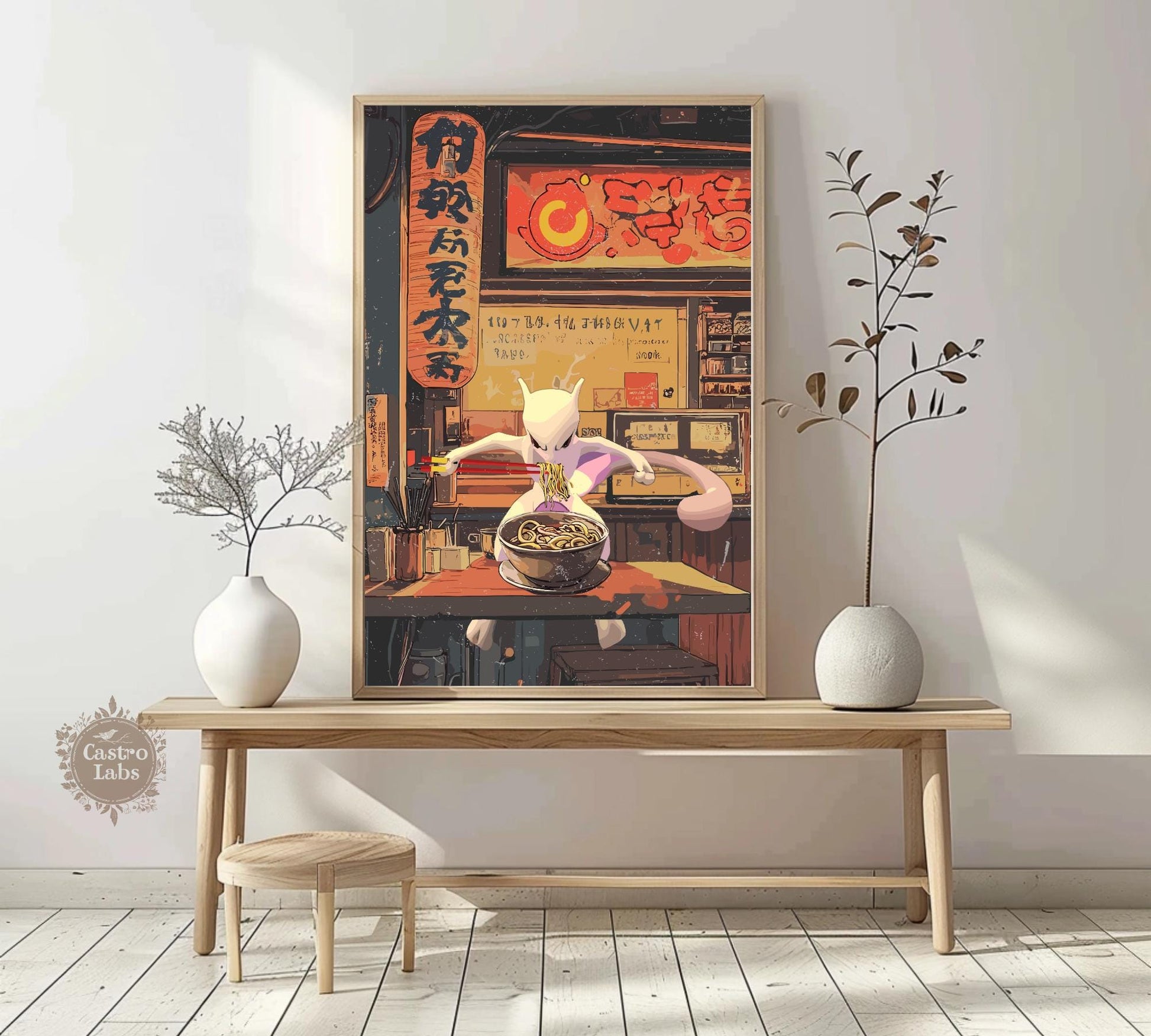 Affiche Mewtwo Ramen - Décoration murale Pokémon japonaise | Décoration Anime et Nouilles