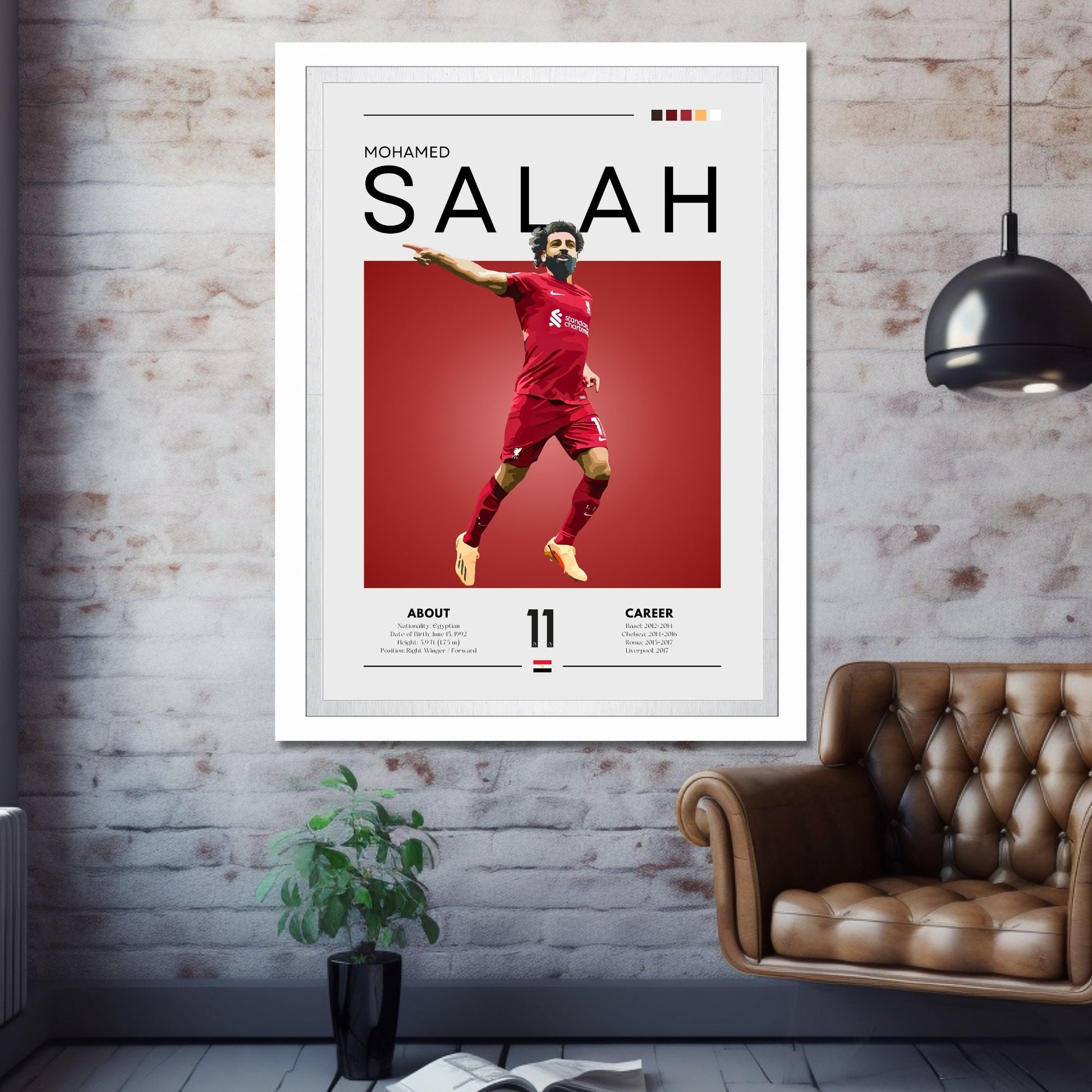 Imprimée sur un papier premium résistant à la décoloration, cette affiche saisissante apporte passion et fierté à n'importe quelle pièce, que ce soit votre bureau, votre salle de jeu ou votre mur de supporters. Un véritable hommage à l'héritage de Salah à Anfield et au-delà.
