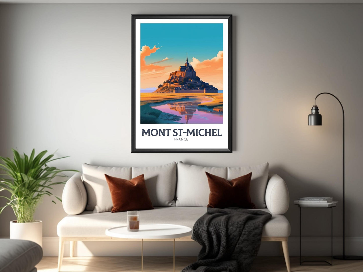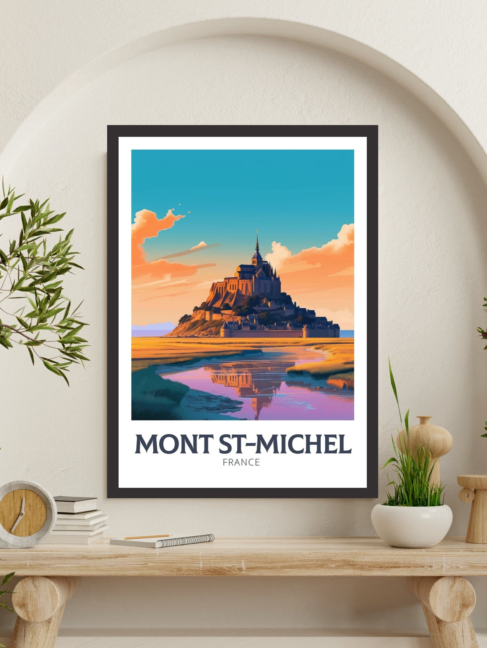 Imprimée sur du papier de qualité supérieure avec des encres résistantes à la décoloration, cette affiche de voyage du Mont-Saint-Michel est idéale pour les amoureux de l'histoire de France et des paysages époustouflants. Apportez une touche d'élégance intemporelle et de beauté côtière à votre décoration intérieure ou professionnelle avec cette œuvre d'art raffinée.