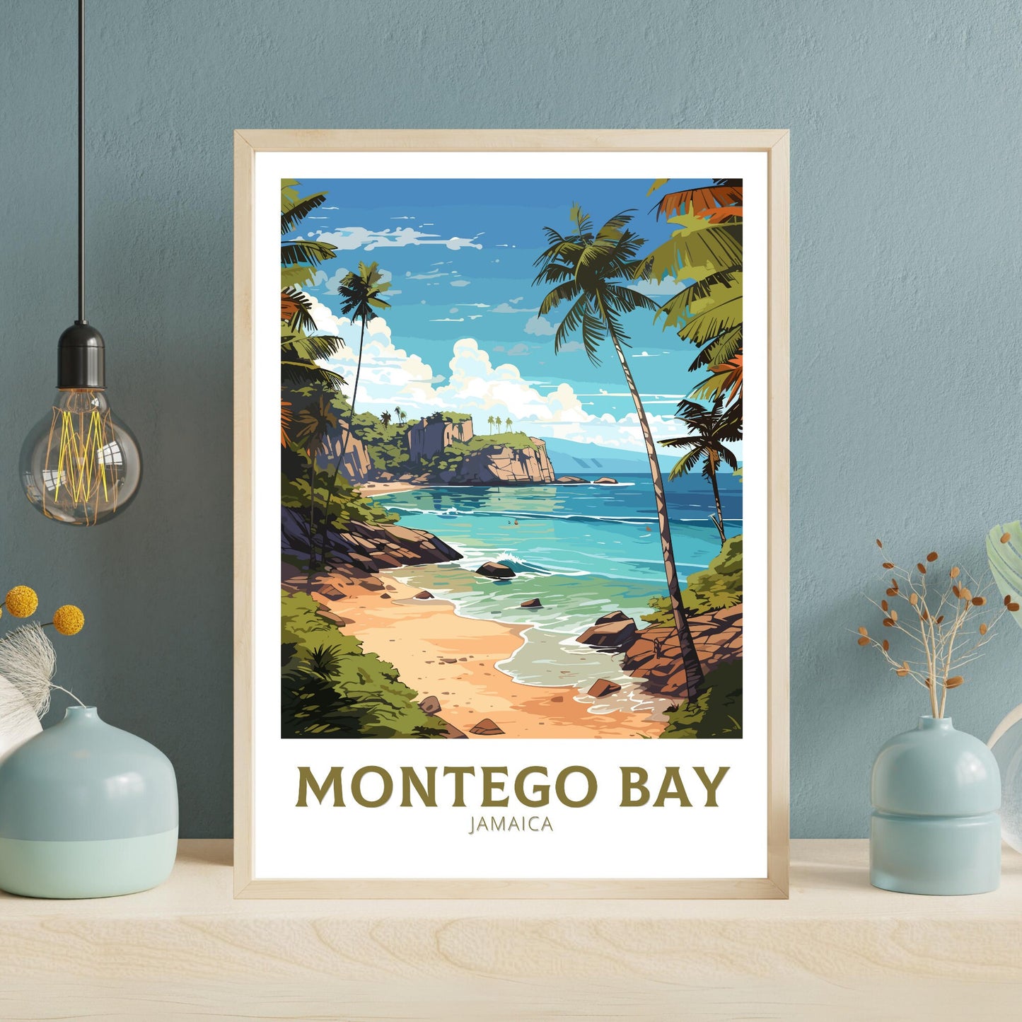 Issue de notre collection d'affiches de voyage des Caraïbes , cette œuvre s'associe parfaitement à d'autres affiches sur le thème des îles et des tropiques. Que vous souhaitiez créer une galerie murale de vos destinations préférées ou apporter une touche de couleur à votre intérieur, cette affiche de voyage de Montego Bay – Jamaïque est un hommage intemporel à l'une des destinations les plus emblématiques des Caraïbes.