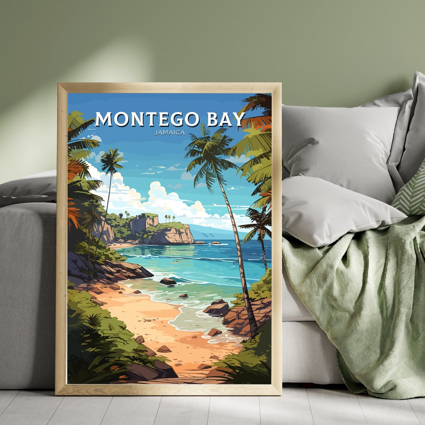 Disponible en téléchargement numérique et en tirage physique premium , cette affiche de voyage de Montego Bay est disponible en plusieurs formats, des formats de série A aux grands formats 76 x 102 cm. Imprimée sur un papier de haute qualité aux couleurs vives et aux détails nets, elle constitue une décoration murale attrayante ou un cadeau attentionné pour tous ceux qui s'inspirent du charme tropical de la Jamaïque.
