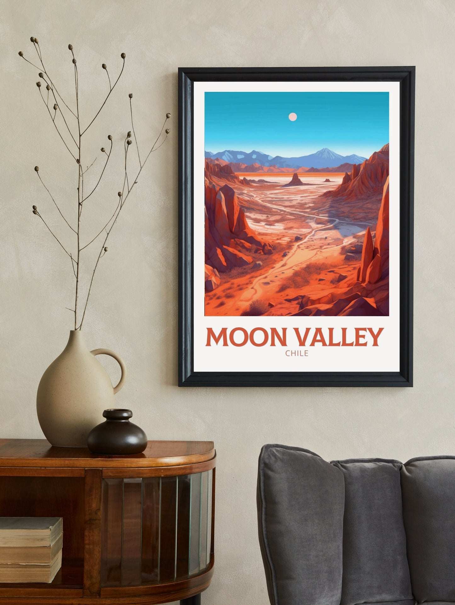 Notre affiche Moon Valley – Art rétro plonge votre espace dans le paysage surréaliste de la Vallée de la Lune au Chili grâce à son design nostalgique. Parfaite pour les passionnés de voyages et d'art rétro, elle capture les formations rocheuses escarpées et l'étendue du désert avec un style intemporel. Que vous ayez parcouru ses sables ou rêvé de son étrangeté, cette affiche rétro Moon Valley sera un ajout magnifique à votre décoration.