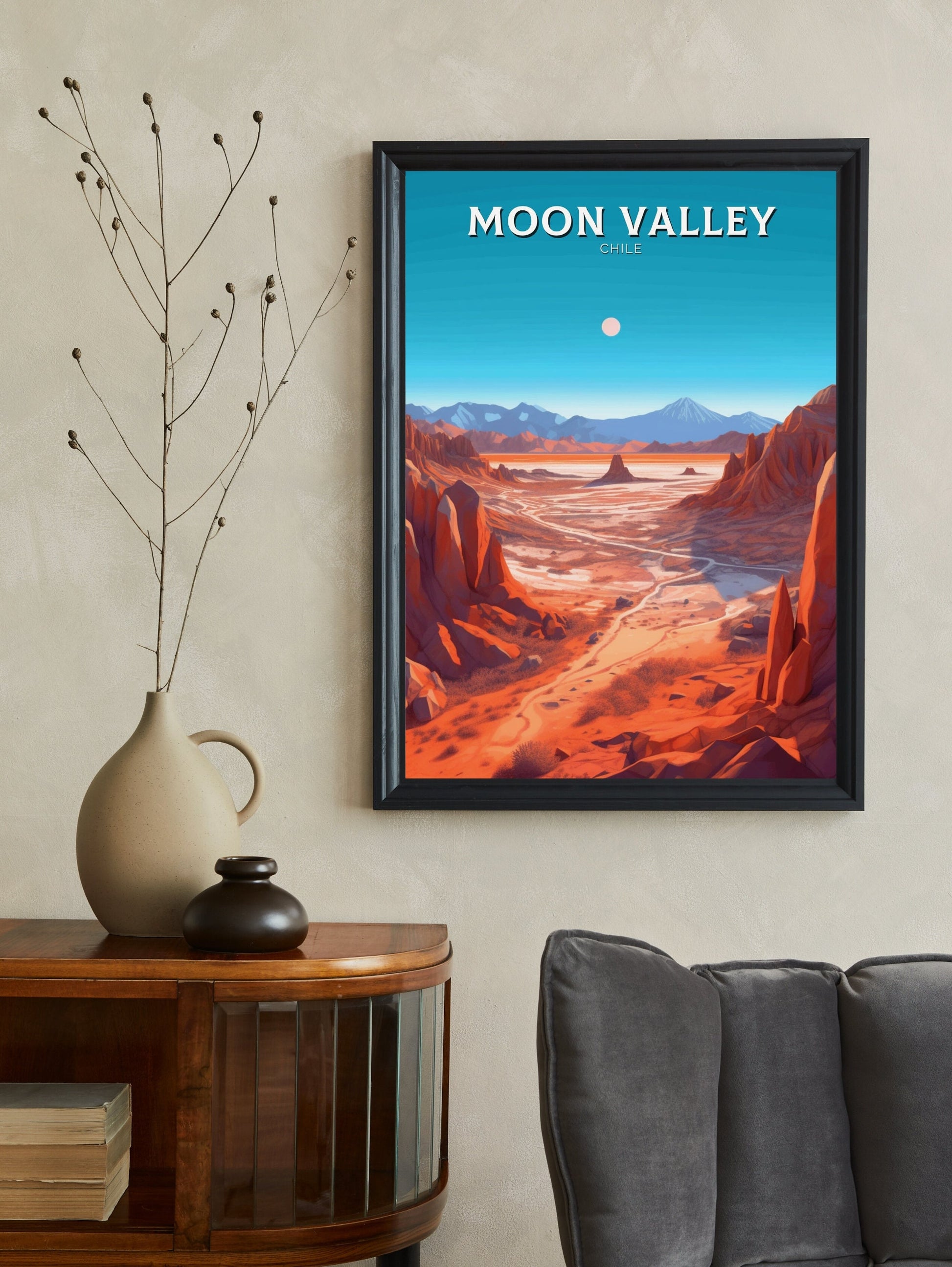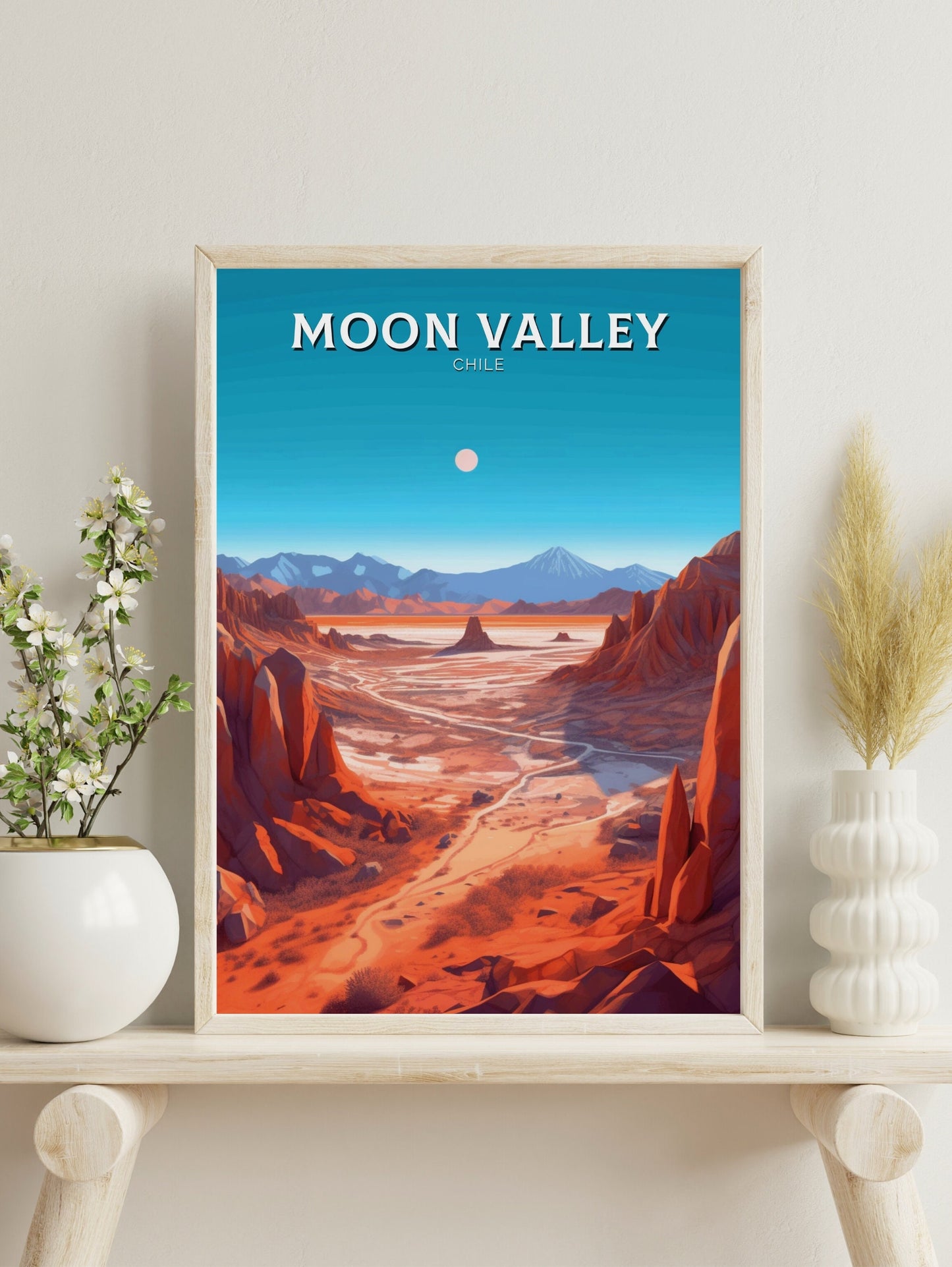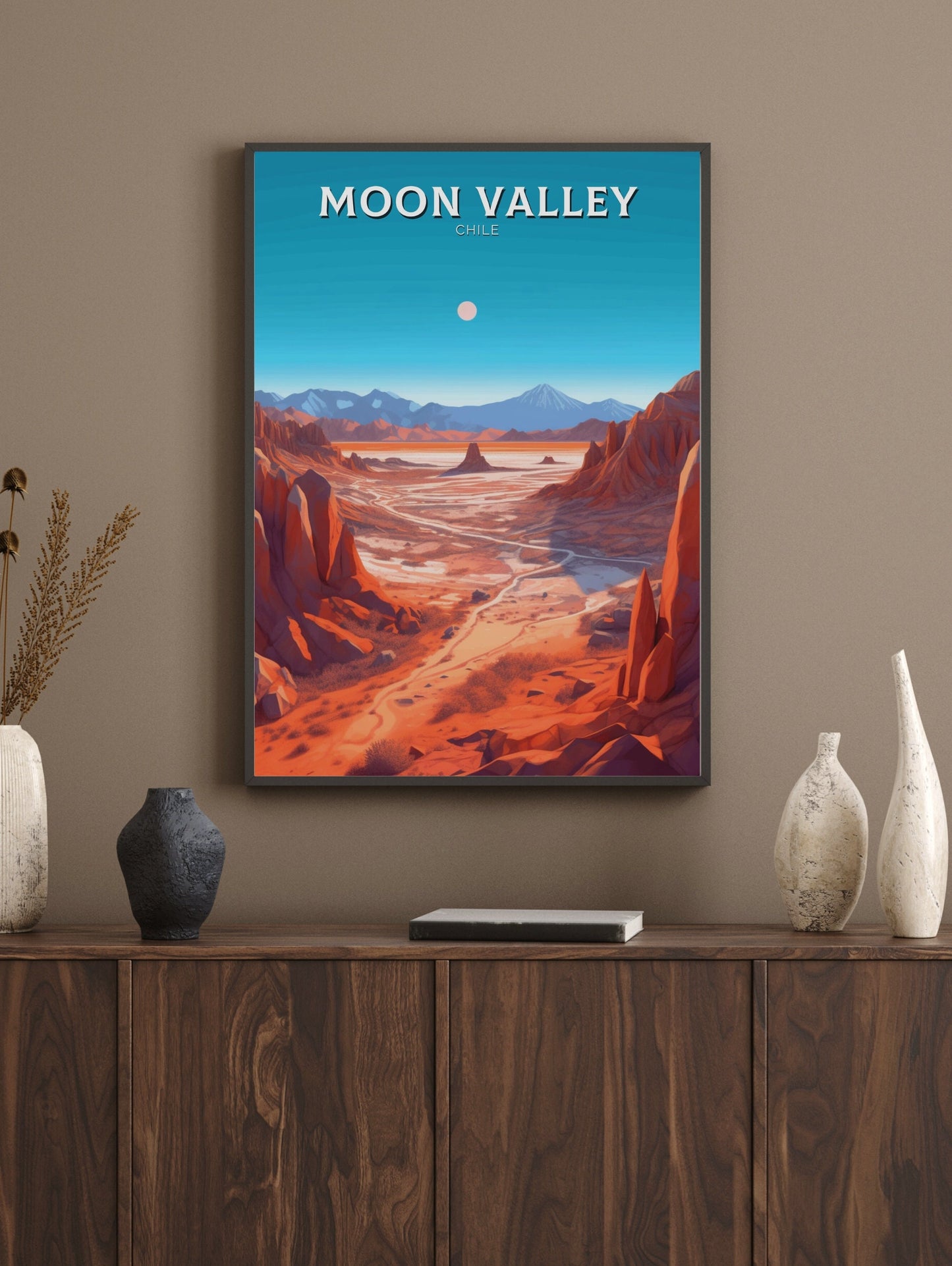 Affiche de voyage de Moon Valley - Art rétro du désert