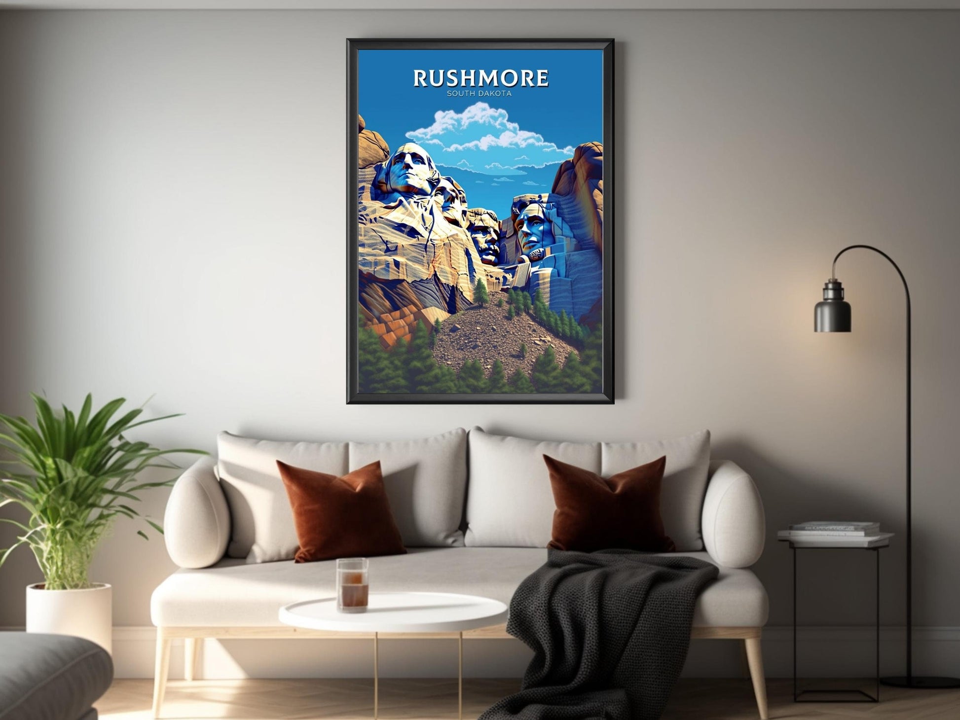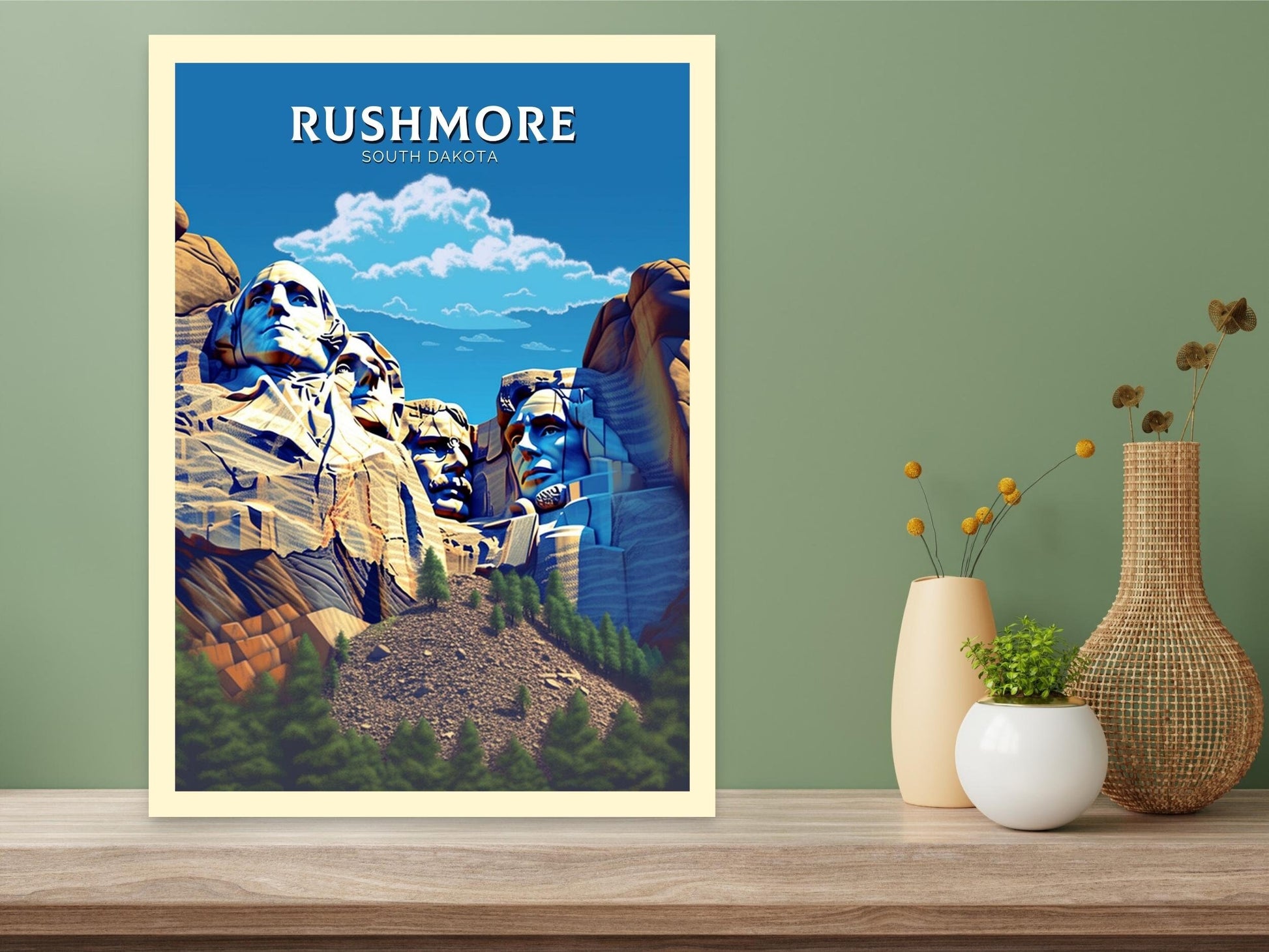 Disponible en téléchargement numérique et en tirage physique premium , cette affiche de voyage du mont Rushmore est disponible en plusieurs formats, du format standard de la série A au grand format 76 x 102 cm. Imprimée sur un papier de haute qualité aux couleurs vives et aux détails précis, elle constitue une décoration murale saisissante ou un cadeau attentionné pour tous ceux qui s'inspirent des monuments américains.