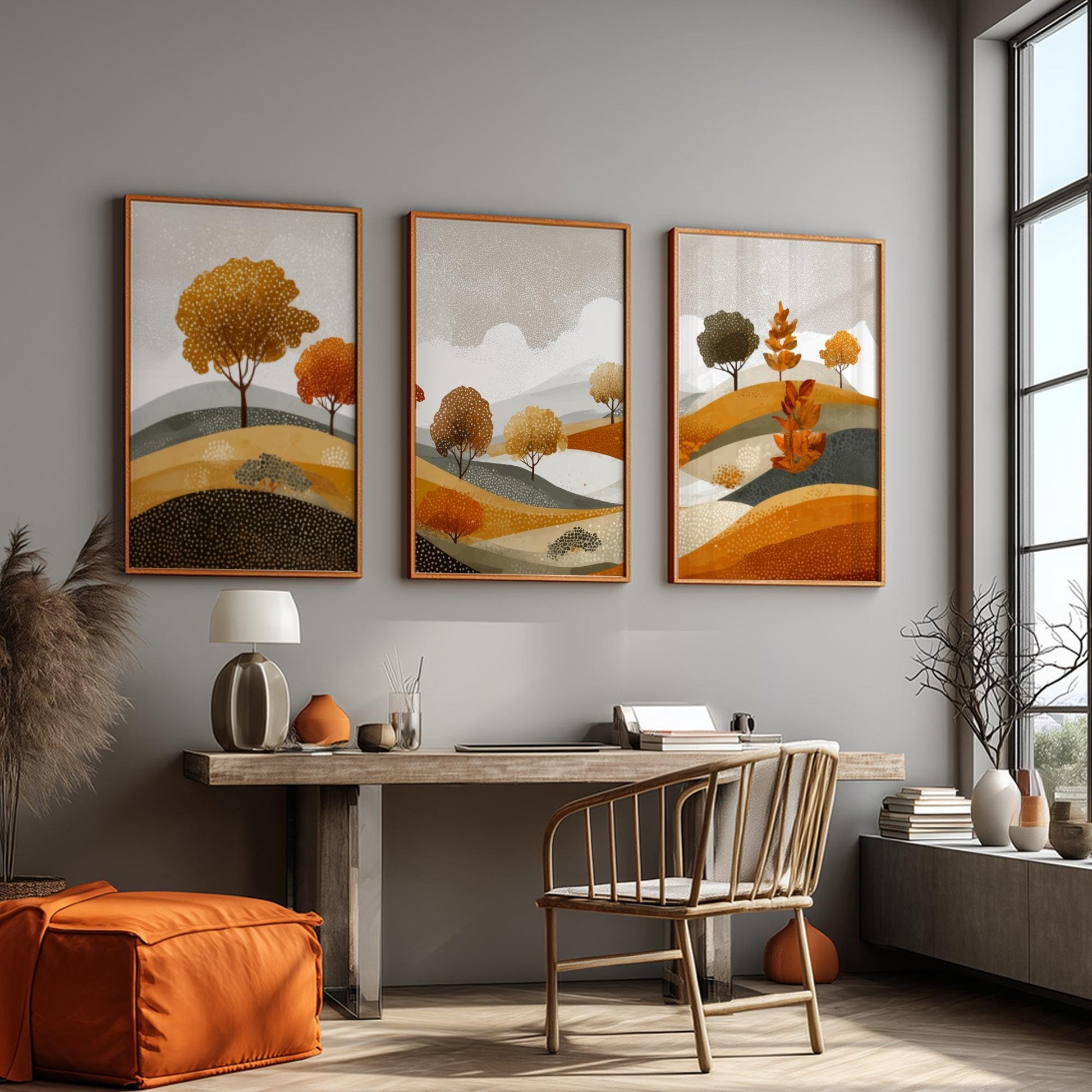 Lot de 3 affiches de paysage de montagne – Art mural rustique moderne aux tons terreux