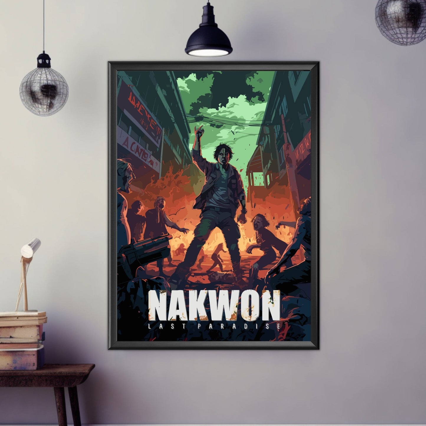 Plongez dans l'univers post-apocalyptique de Nakwon : Last Paradise avec cette affiche Nakwon : Last Paradise , parfaite pour les fans de jeux de survie zombie , de RPG post-apocalyptiques urbains et d'art mural de jeux vidéo . Avec ses rues animées, ses hordes de morts-vivants et ses moments de survie épiques tirés du célèbre jeu Nakwon : Last Paradise , cette affiche capture le gameplay palpitant, les combats intenses et l'atmosphère immersive de ce jeu d'horreur de survie urbain, ce qui en fait un incontournable pour les joueurs , les passionnés d'horreur et les collectionneurs d'art de jeux vidéo .