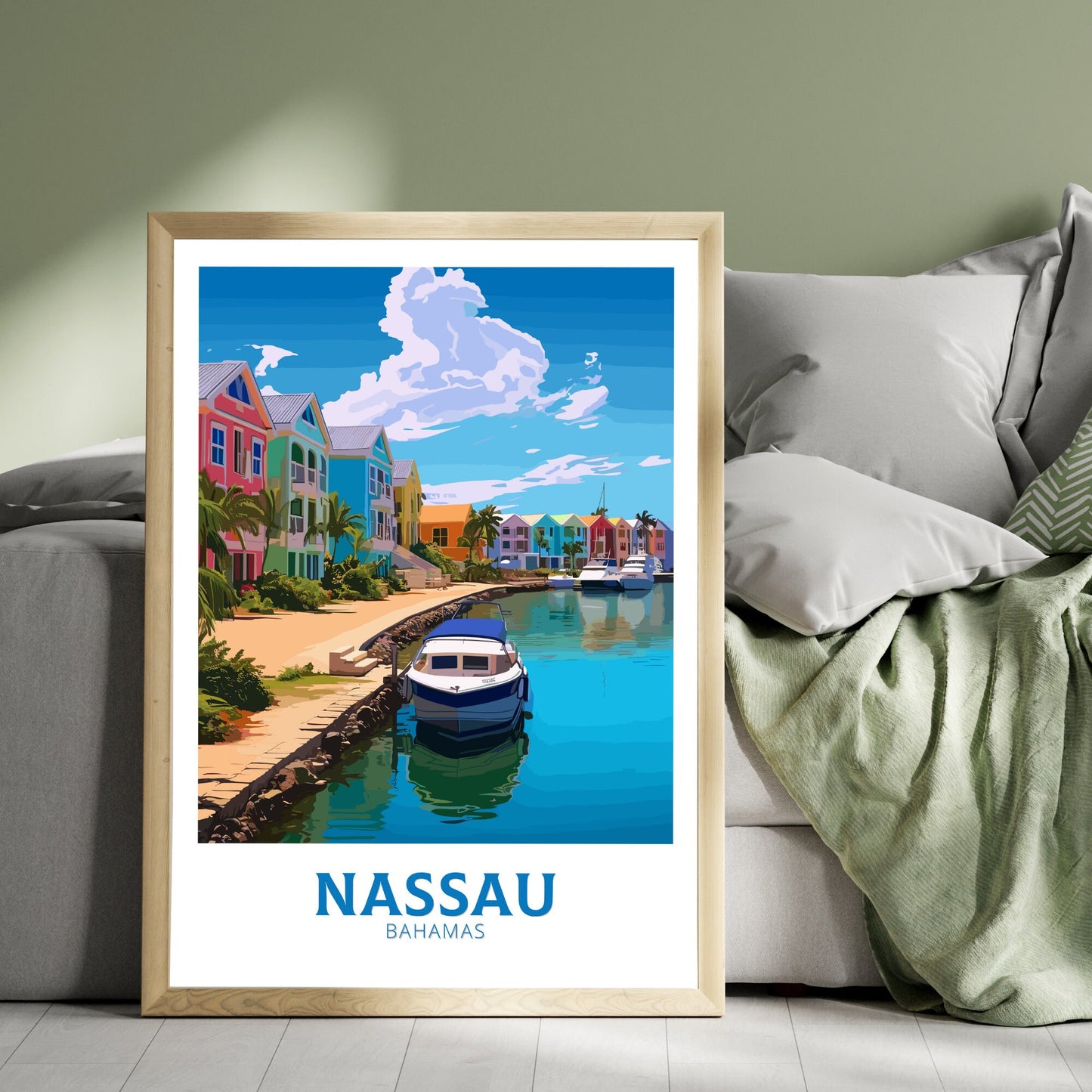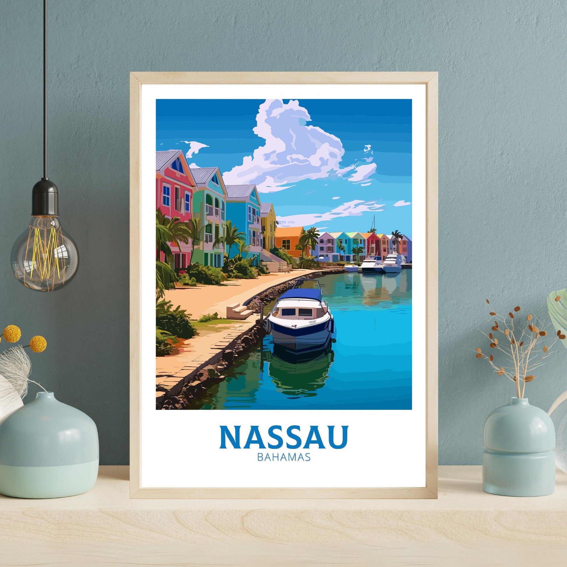 Disponible en téléchargement numérique et en tirage physique premium , cette affiche de voyage de Nassau est disponible dans une large gamme de formats, des formats de série A aux grands formats 76 x 102 cm. Imprimée sur un papier de haute qualité aux couleurs vives et aux détails précis, elle constitue une décoration murale attrayante ou un cadeau attentionné pour tous ceux qui sont inspirés par la beauté des Bahamas.