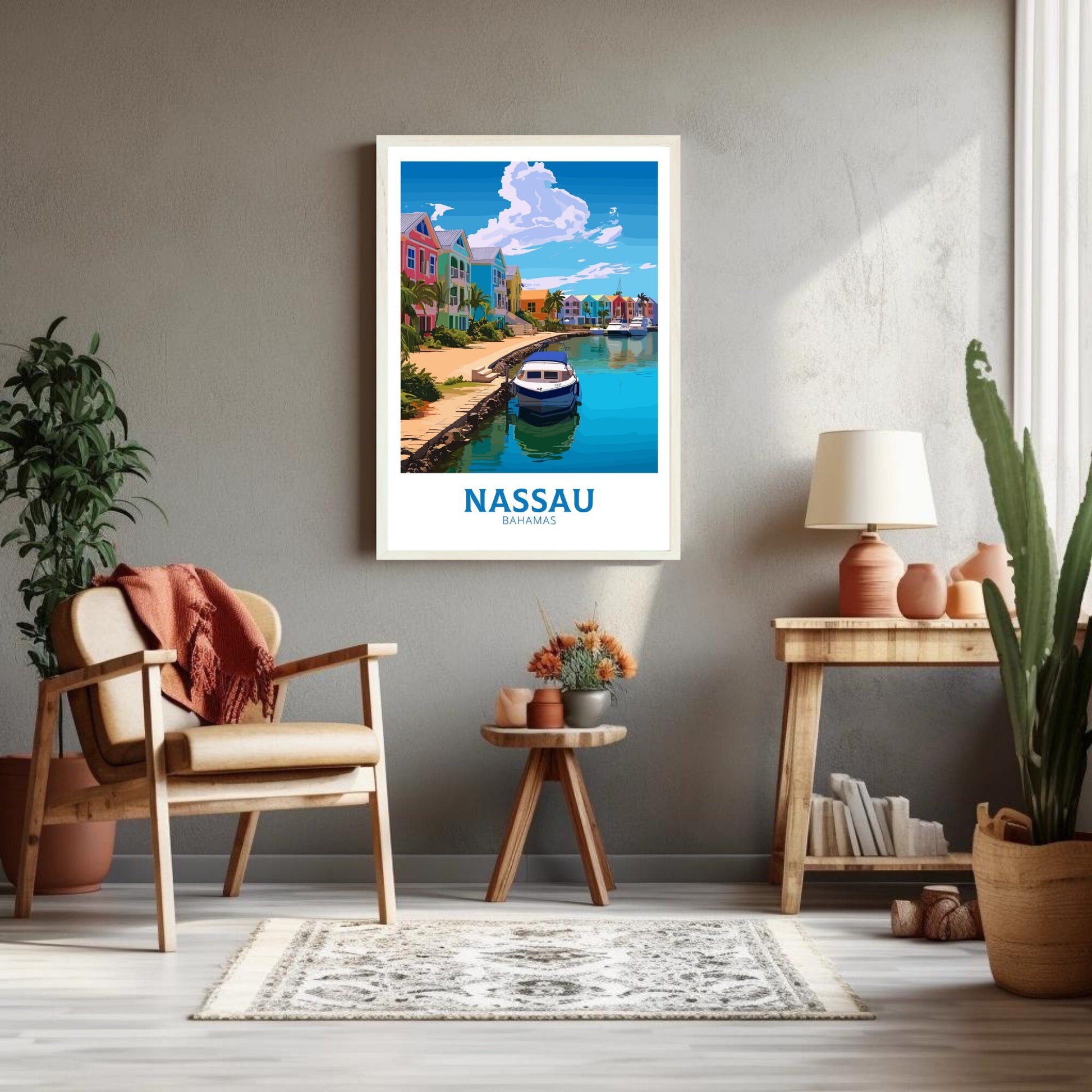 Inspirez le charme tropical des Caraïbes avec notre affiche de voyage de Nassau . Cette œuvre d'art des Bahamas capture l'architecture colorée, les eaux turquoise et la culture vibrante de Nassau. Elle est idéale pour les passionnés de voyages, les amoureux de plage et les amateurs de décorations murales inspirées des îles. Apportez une touche côtière et vivante à votre pièce ou à votre bureau.