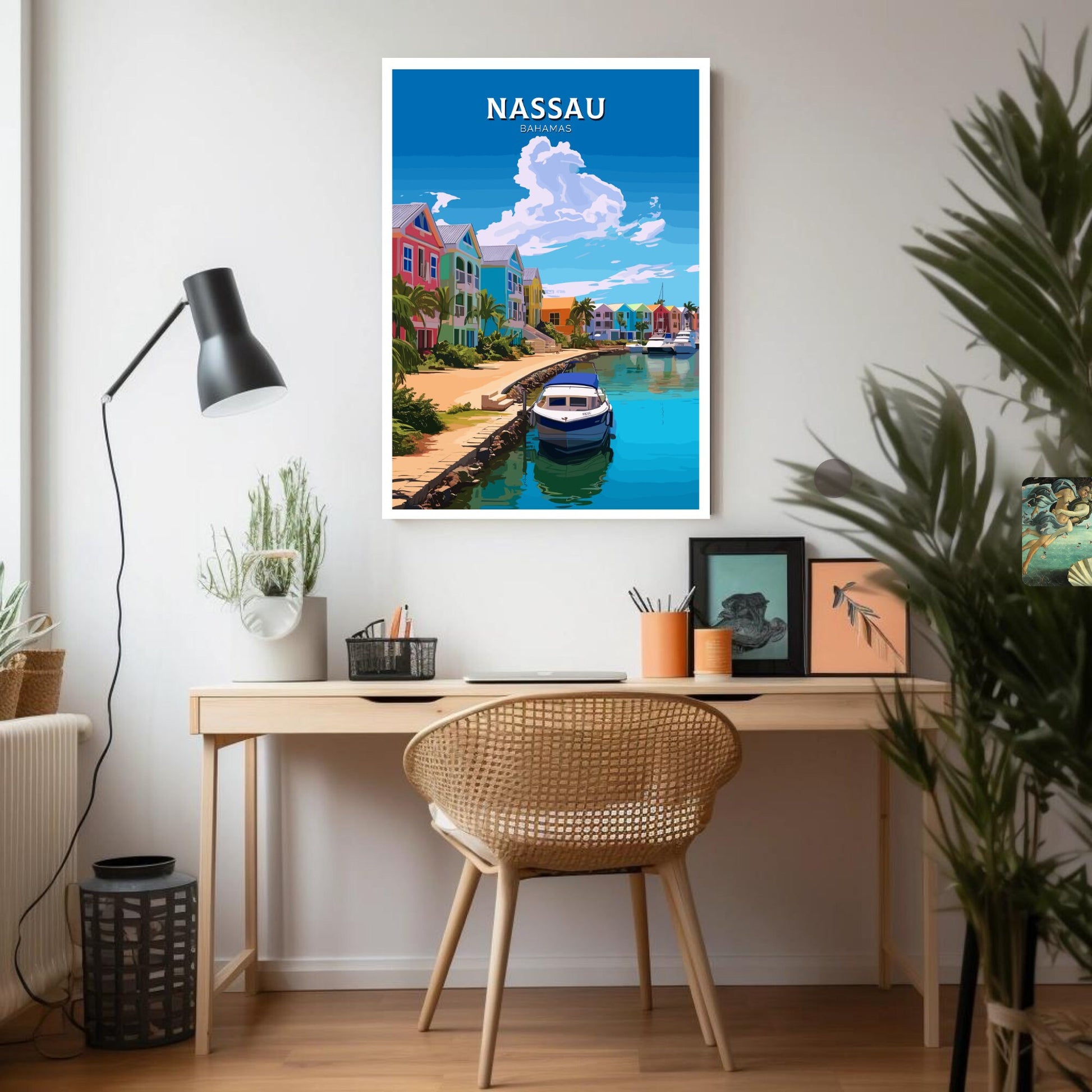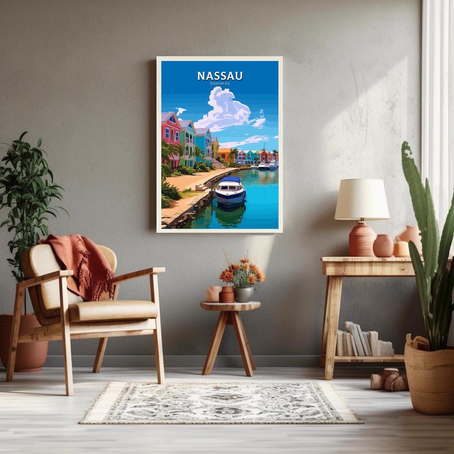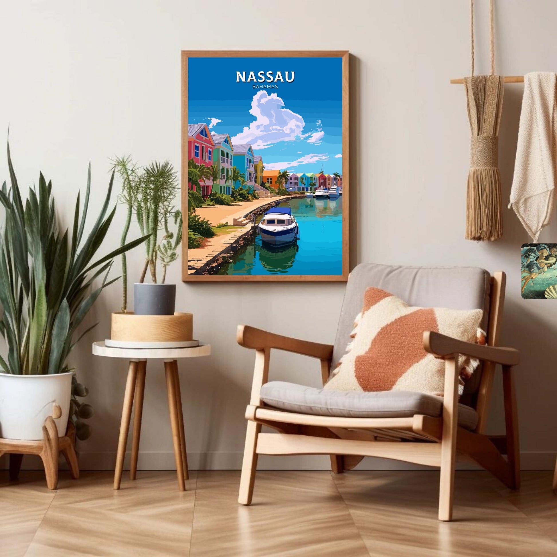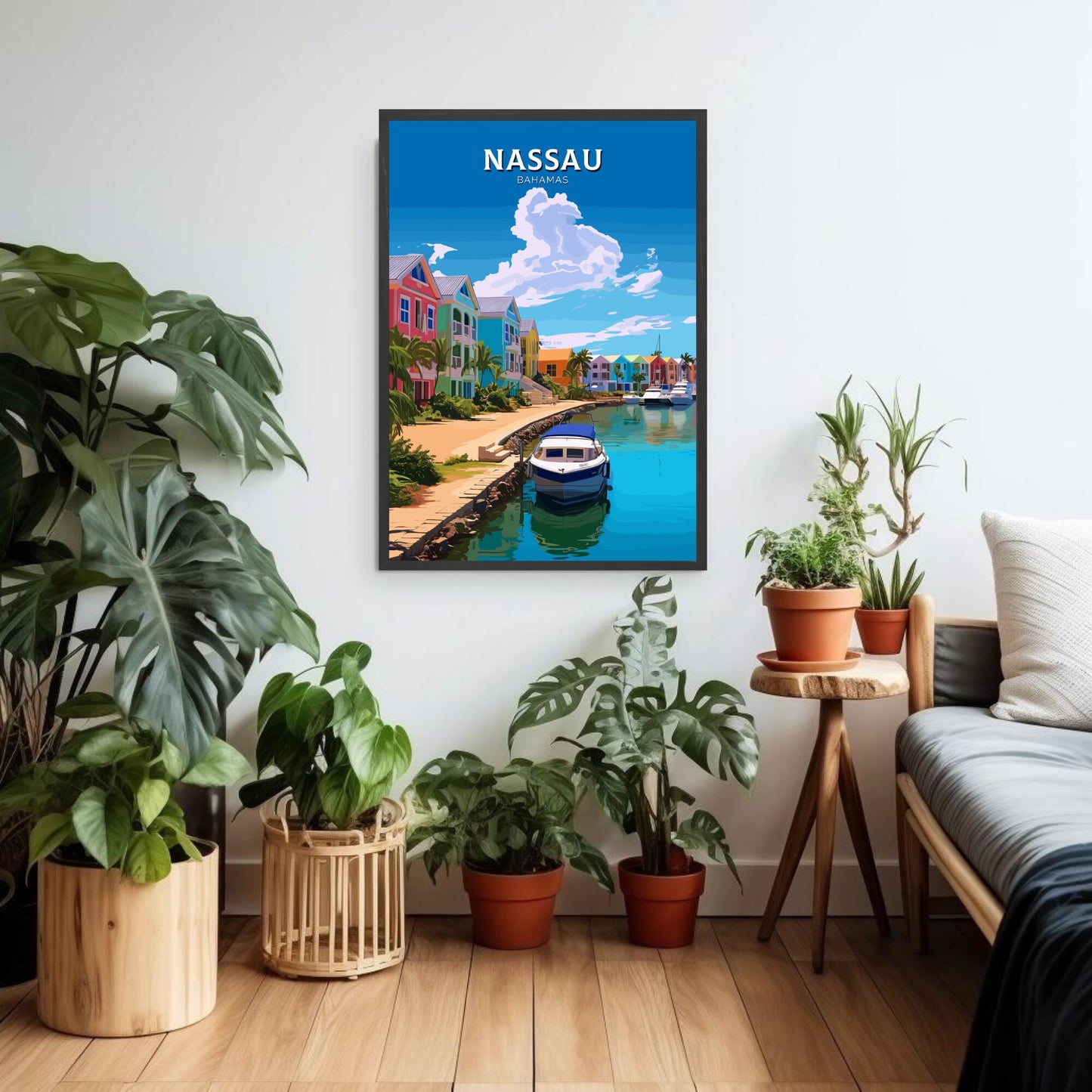 Disponible en téléchargement numérique et en tirage physique premium , cette affiche de voyage de Nassau est disponible dans une large gamme de formats, des formats standard de la série A aux grands formats 76 x 102 cm. Imprimée sur un papier de haute qualité aux couleurs vives et aux détails précis, elle constitue une décoration murale saisissante ou un cadeau attentionné pour tous ceux qui sont inspirés par la beauté des Bahamas.