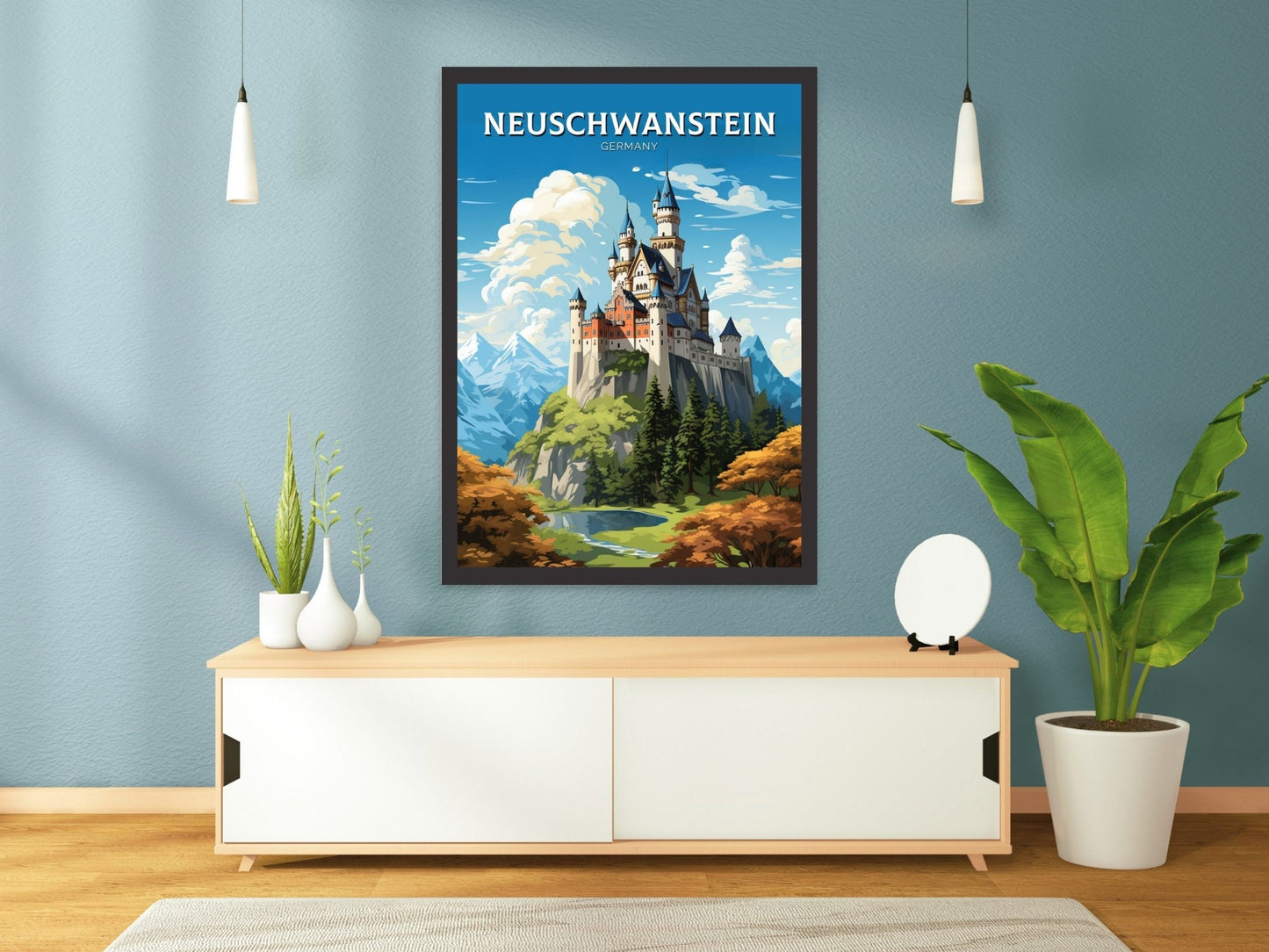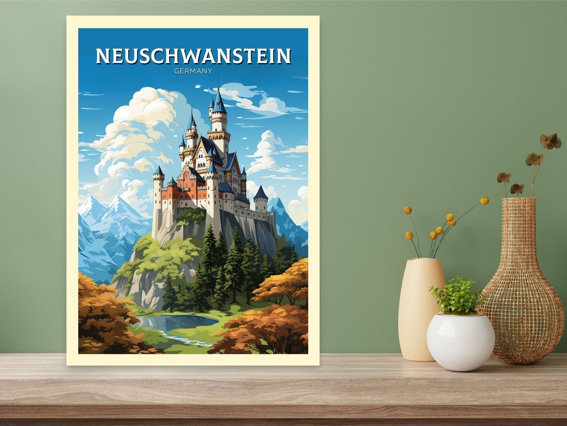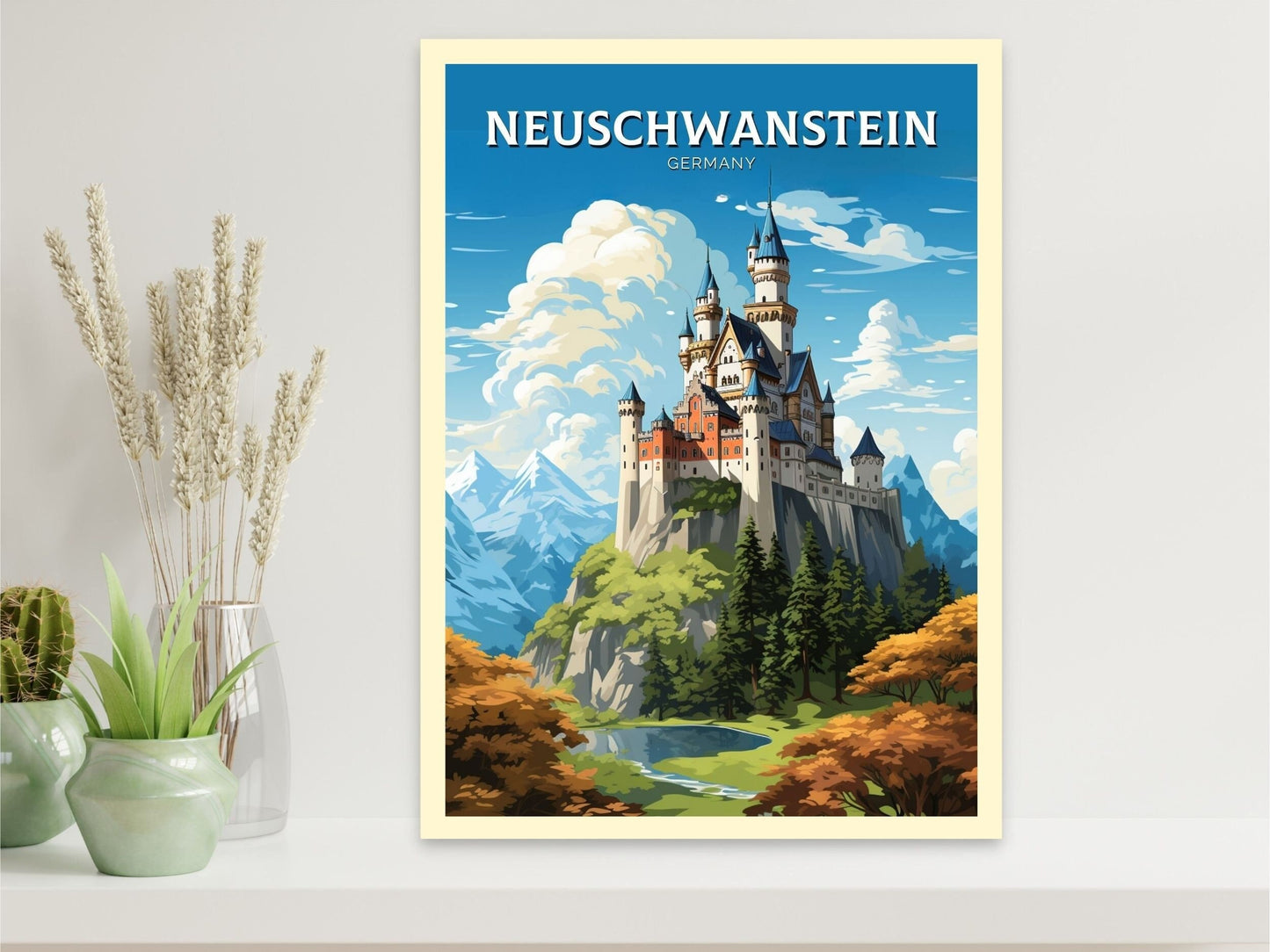 Imprimée sur du papier de haute qualité avec des encres vibrantes et résistantes à la décoloration, l' affiche de voyage de Neuschwanstein est idéale pour tout espace en quête d'une touche de romantisme et d'héritage allemand. Célébrez le charme intemporel du château de Neuschwanstein avec cette captivante affiche de voyage.