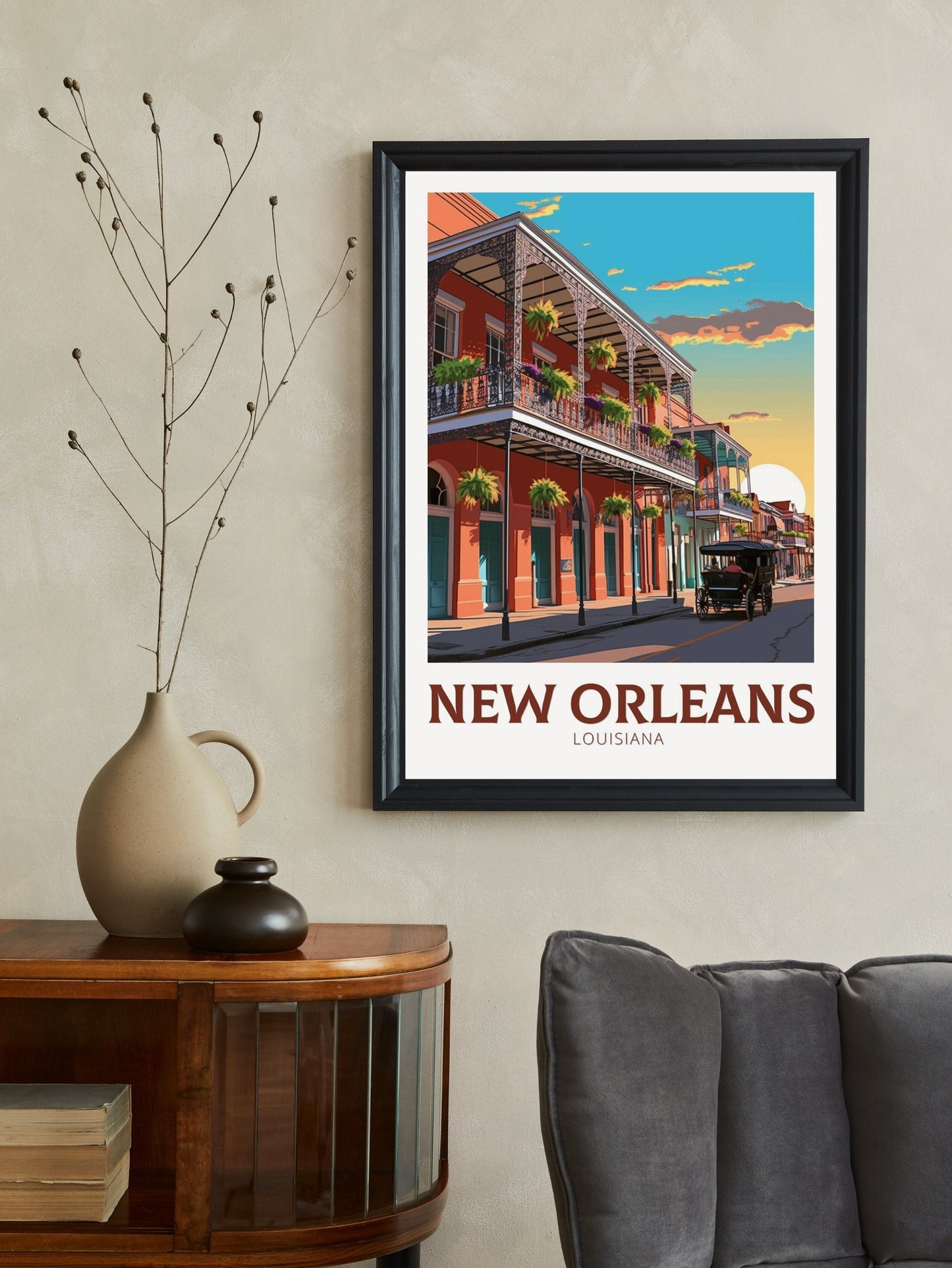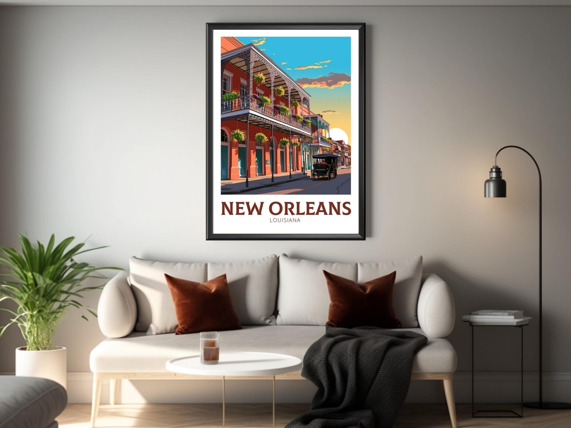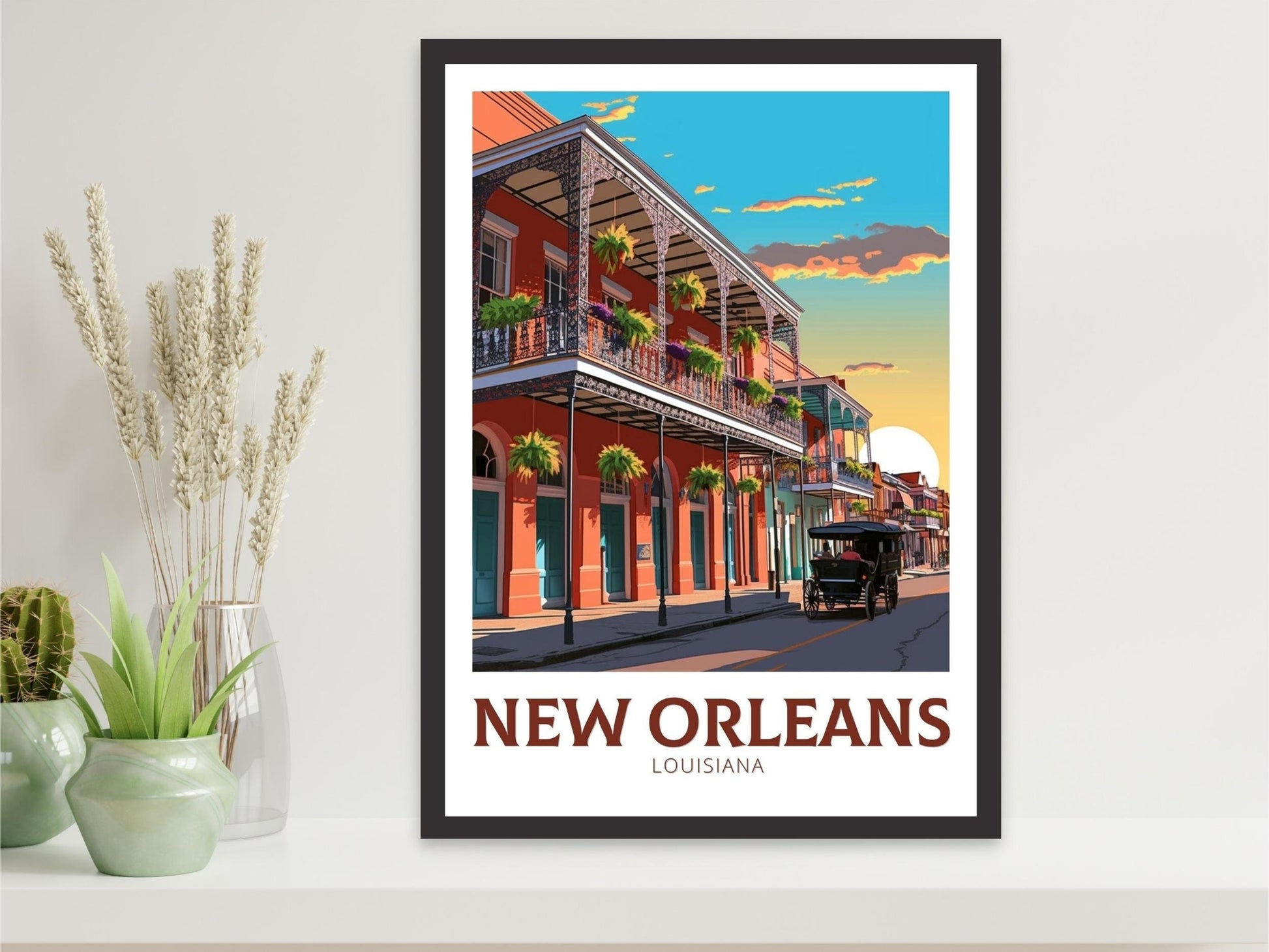 Faisant partie de notre collection d'affiches de voyage aux États-Unis , cette œuvre s'harmonise parfaitement avec d'autres affiches de villes et de parcs nationaux. Que ce soit pour créer une galerie murale de vos destinations préférées ou pour ajouter une touche culturelle à votre décoration, cette affiche de voyage de La Nouvelle-Orléans – Louisiane est un hommage intemporel à l'une des villes les plus appréciées des États-Unis.