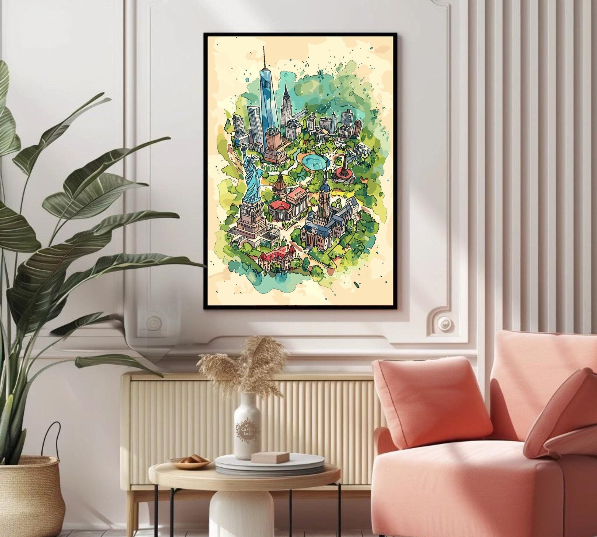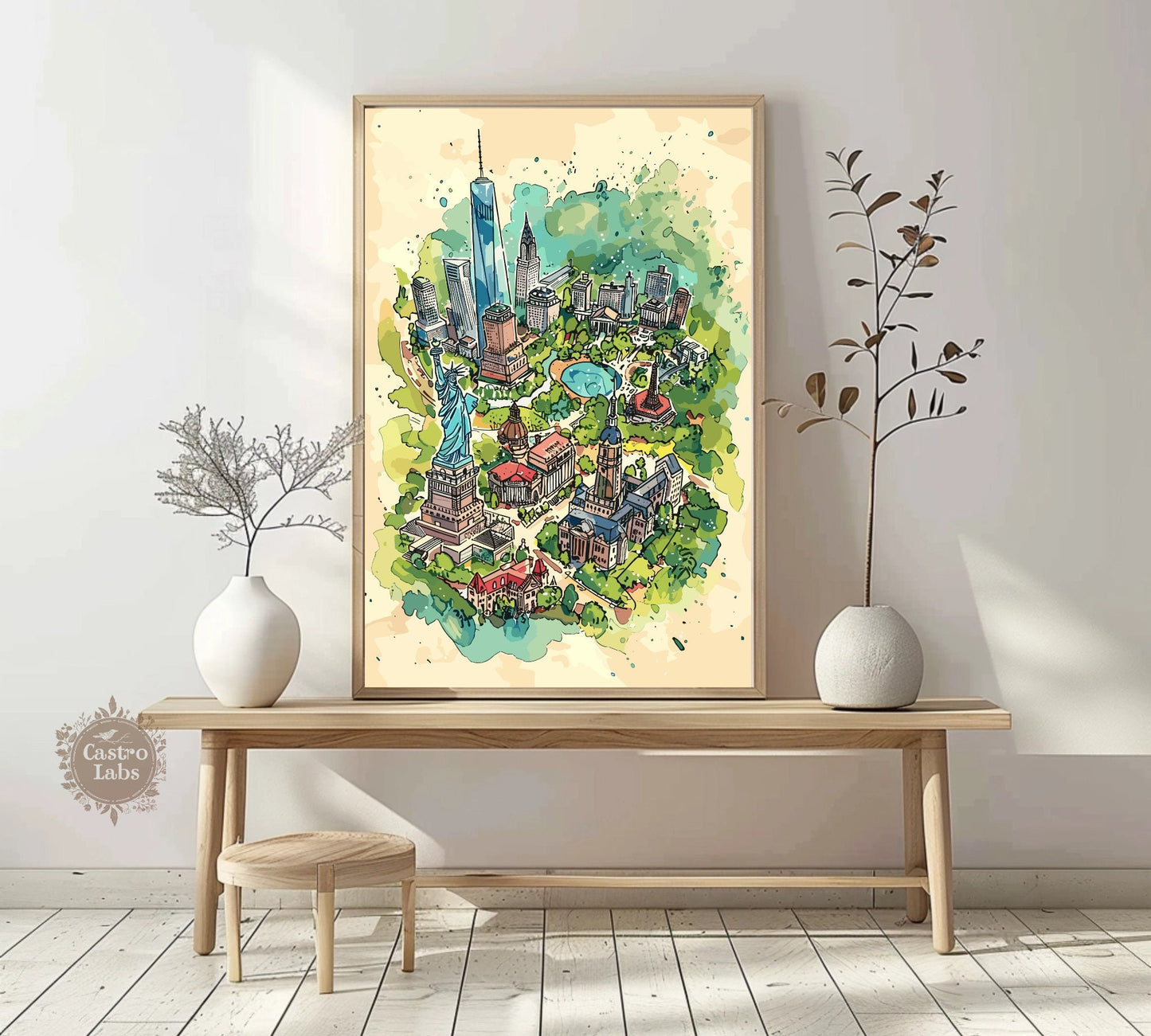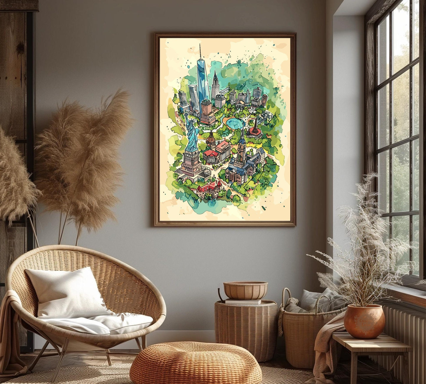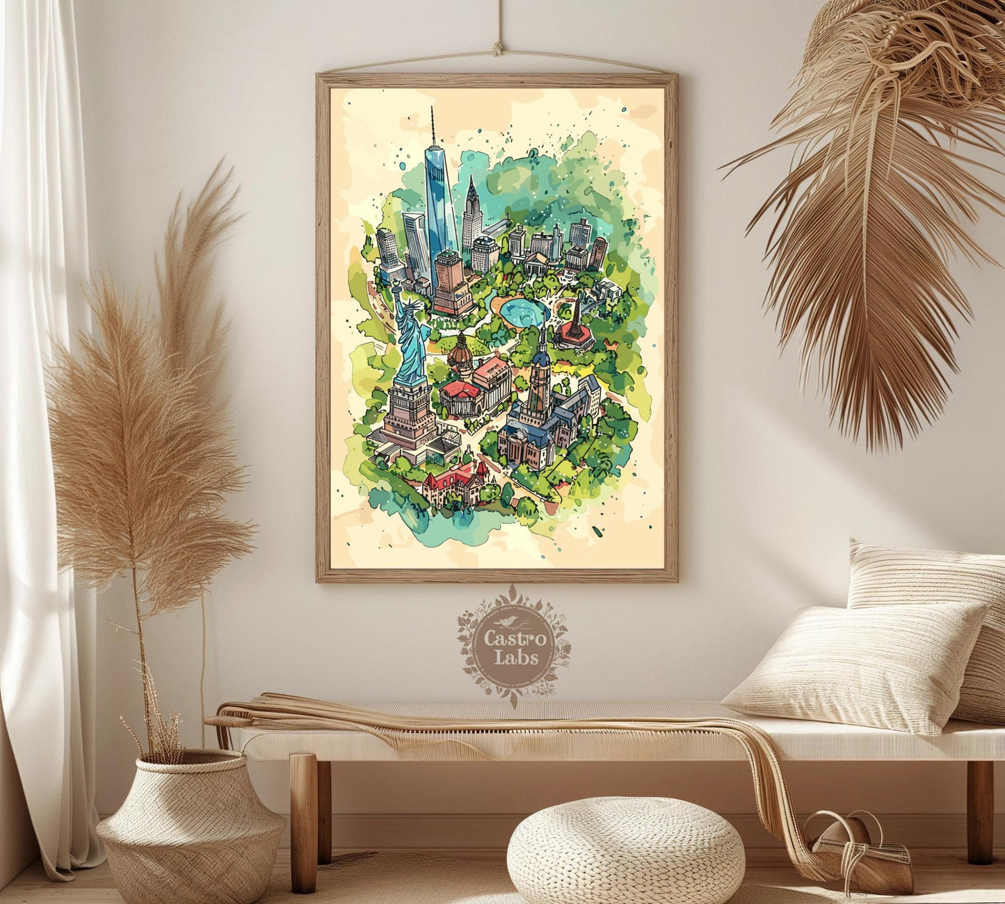 Découvrez la Grosse Pomme avec style grâce à notre carte des attractions de New York . Cette affiche de voyage met en valeur les monuments les plus emblématiques de la ville, de la Statue de la Liberté à l'Empire State Building, en passant par Central Park et Times Square. C'est l'œuvre idéale pour les voyageurs, les amoureux de la ville et tous ceux qui s'inspirent de l'énergie new-yorkaise. Une façon originale de mettre en valeur le charme et l'effervescence de l'une des villes les plus célèbres au monde.