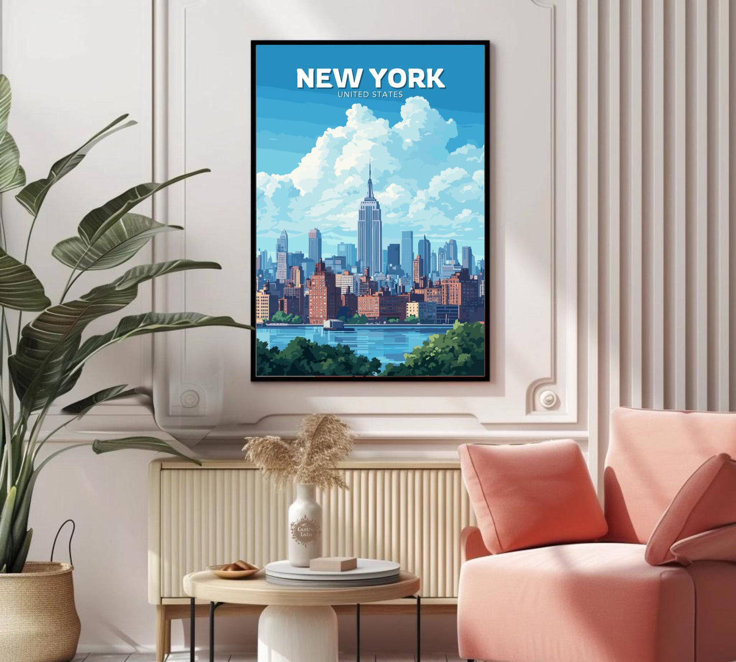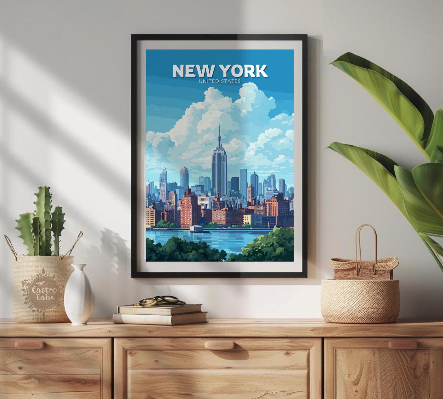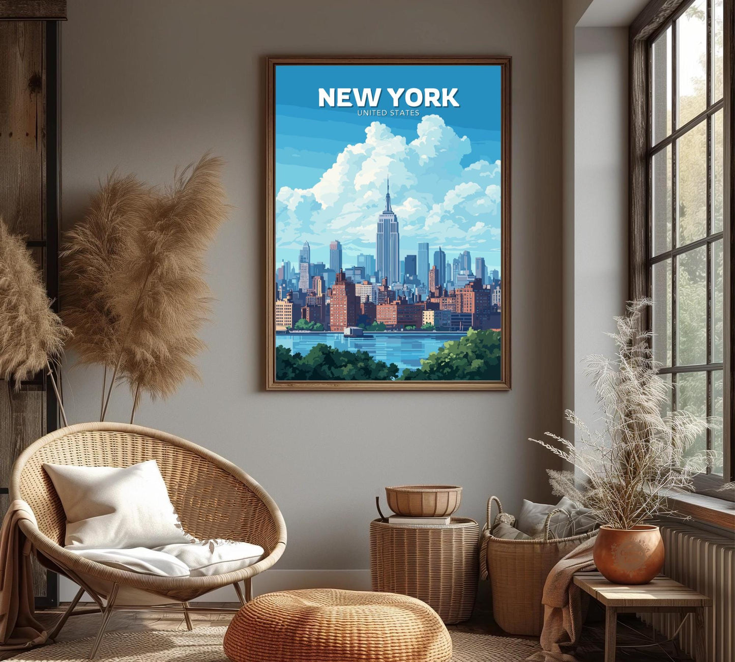 Notre affiche New York Skyline vous plonge au cœur de l'effervescence de la Grosse Pomme grâce à son design emblématique. Idéale pour les amoureux de la ville, elle associe la silhouette imposante de la ville à l'immensité luxuriante de Central Park, véritable oasis de verdure au cœur de la ville d'acier. Que vous ayez arpenté ses sentiers ou que vous aimiez l'énergie de New York, cette affiche New York Central Park apportera une touche d'audace à votre décoration.