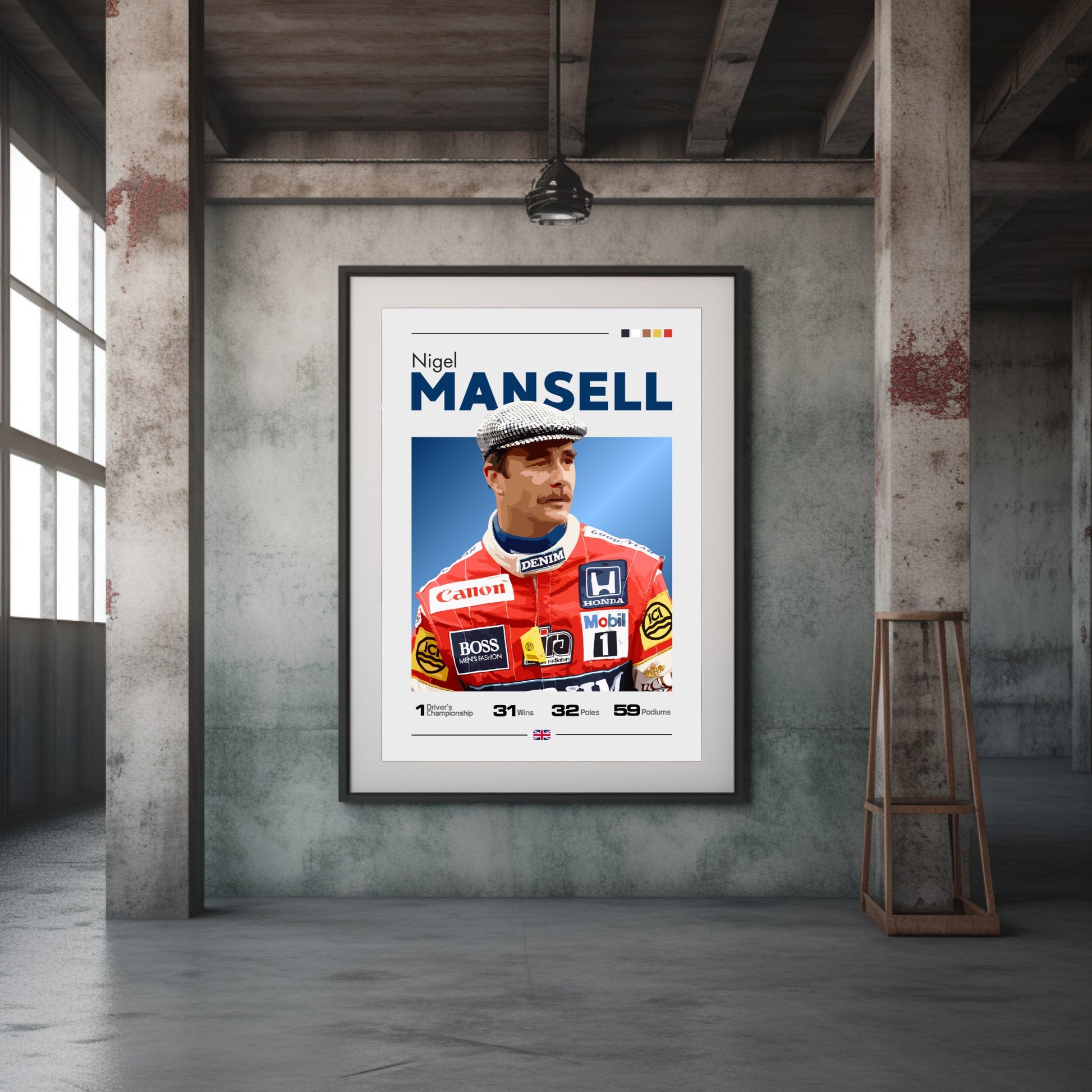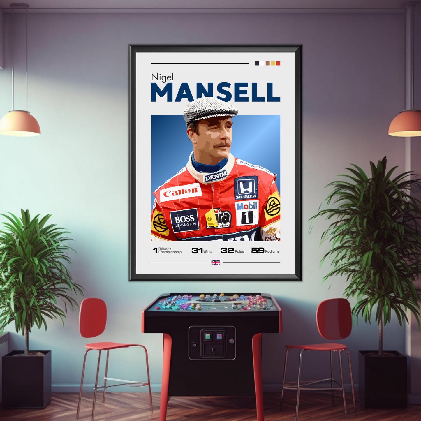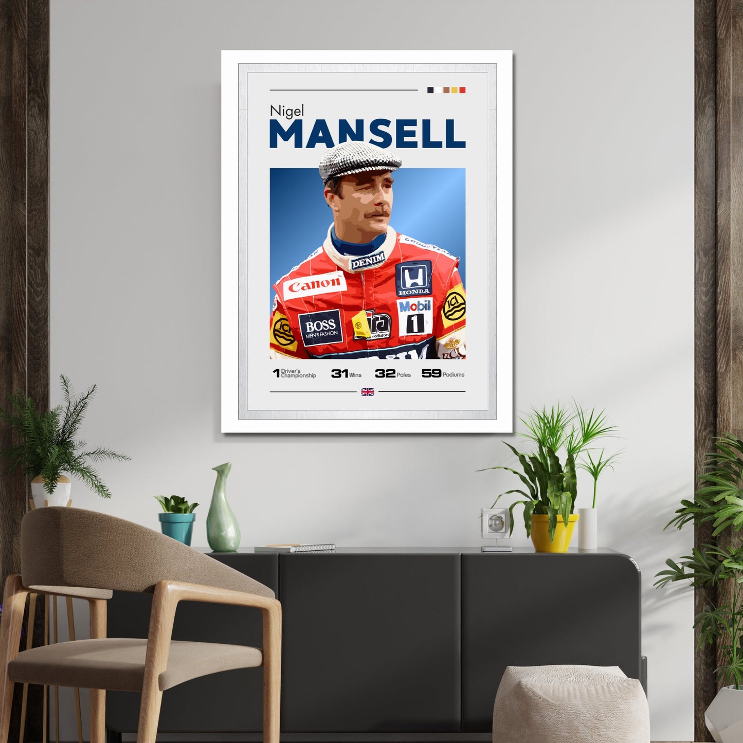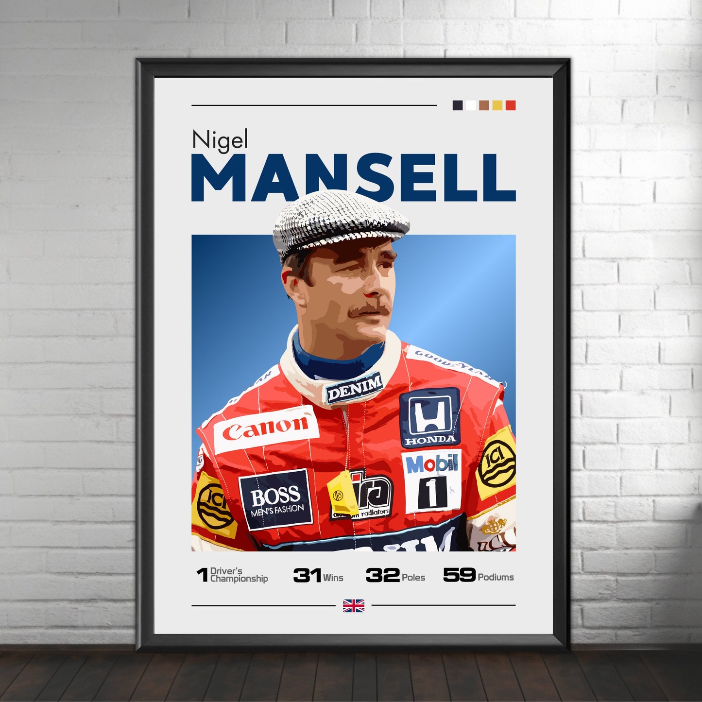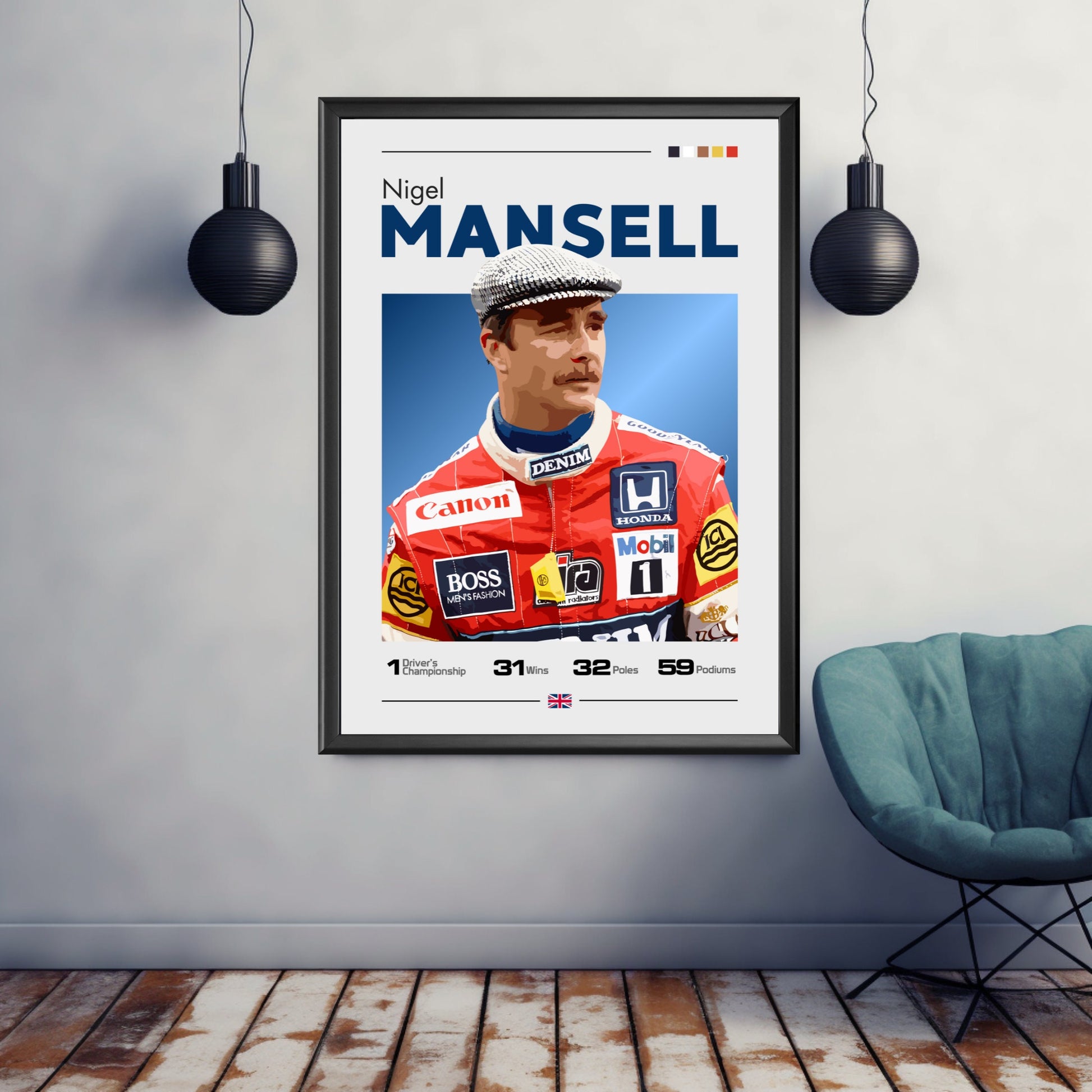 Affiche de Nigel Mansell – Champion du monde de F1 1992, légende britannique du sport automobile