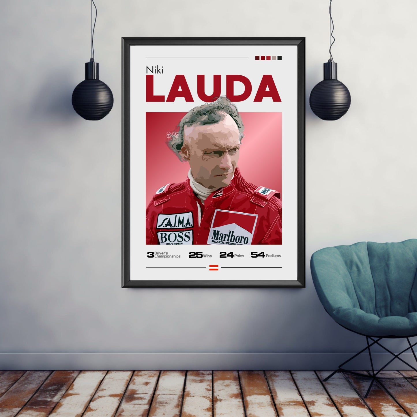 Imprimée sur des matériaux haut de gamme, cette œuvre d'art F1 de Niki Lauda offre des couleurs éclatantes, des détails précis et une durabilité exceptionnelle. Idéale pour les collectionneurs, elle met en lumière les exploits remarquables de Lauda, notamment ses trois titres de champion du monde, ses moments emblématiques en piste et son héritage durable en tant que l'un des plus grands pilotes de Formule 1. Exposez-la encadrée ou intégrée à une galerie murale dédiée au sport automobile pour honorer une véritable légende de la F1.