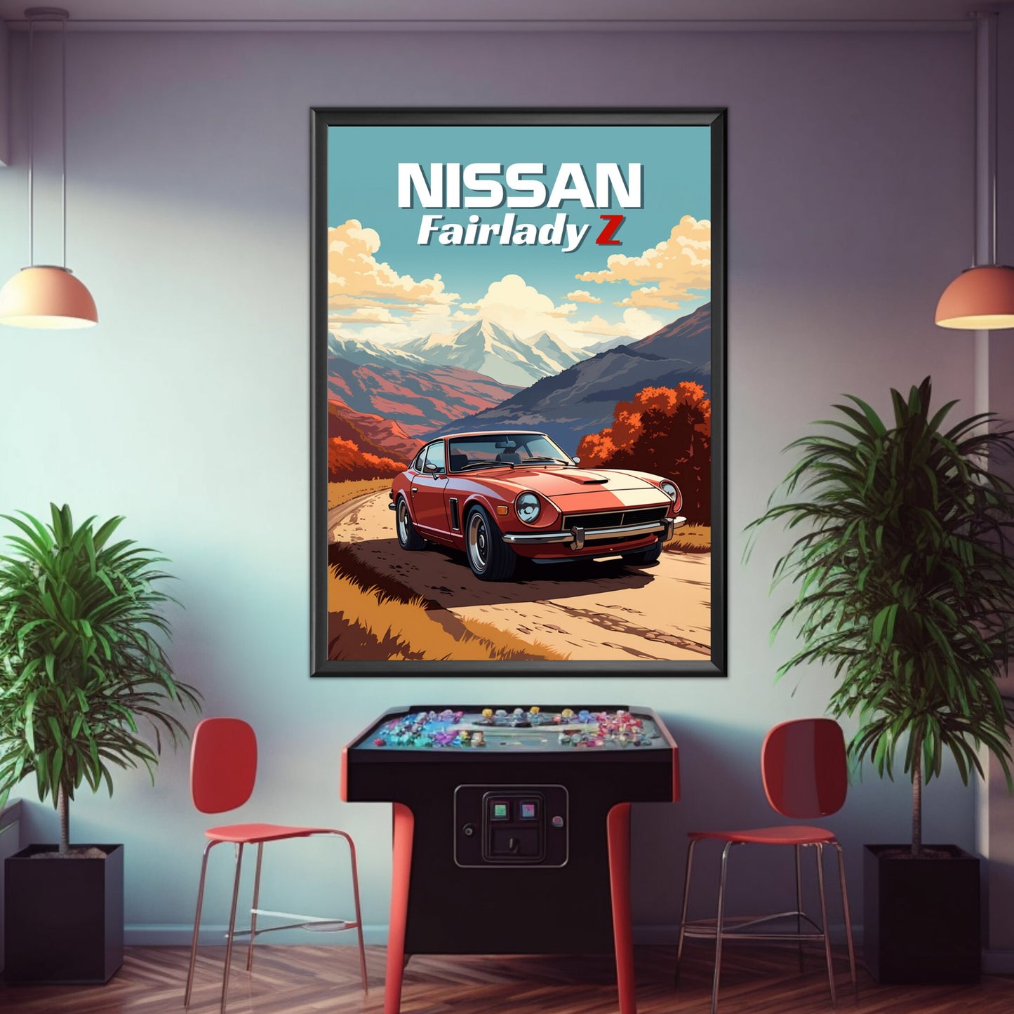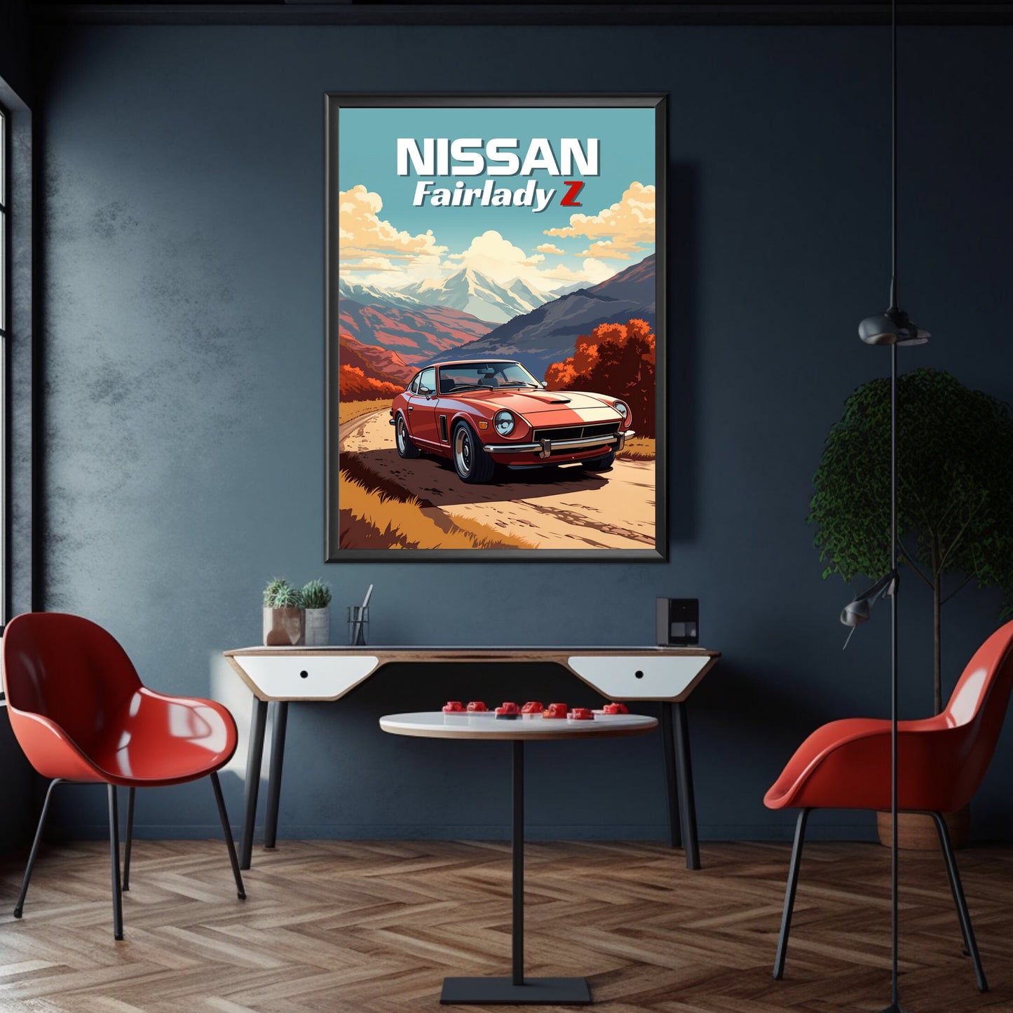 Impression Nissan Fairlady Z – Décoration murale représentant une voiture de sport japonaise classique des années 1970