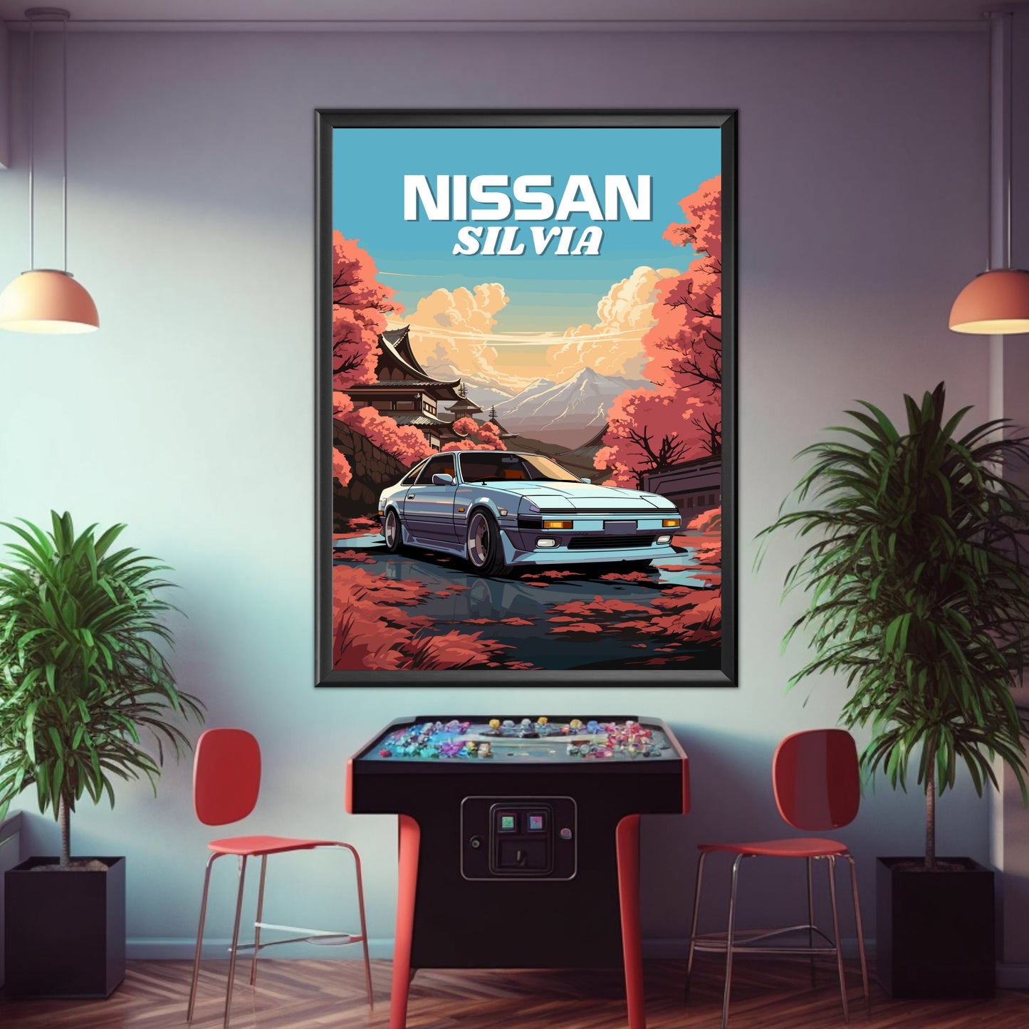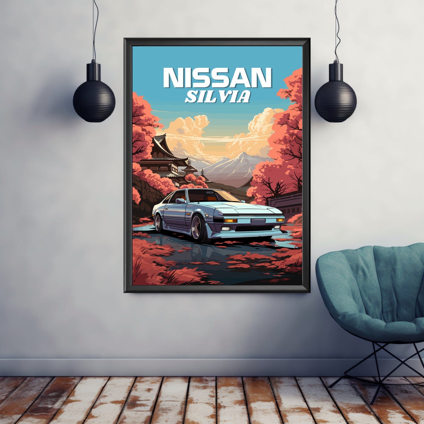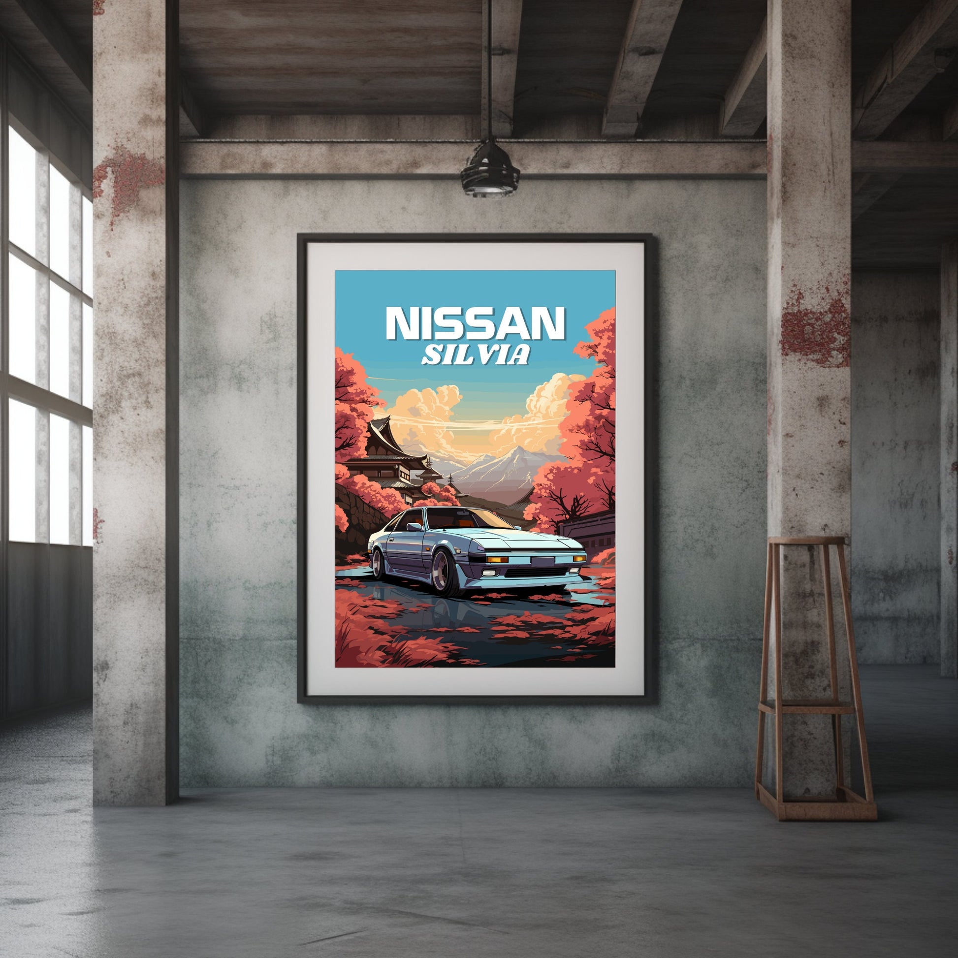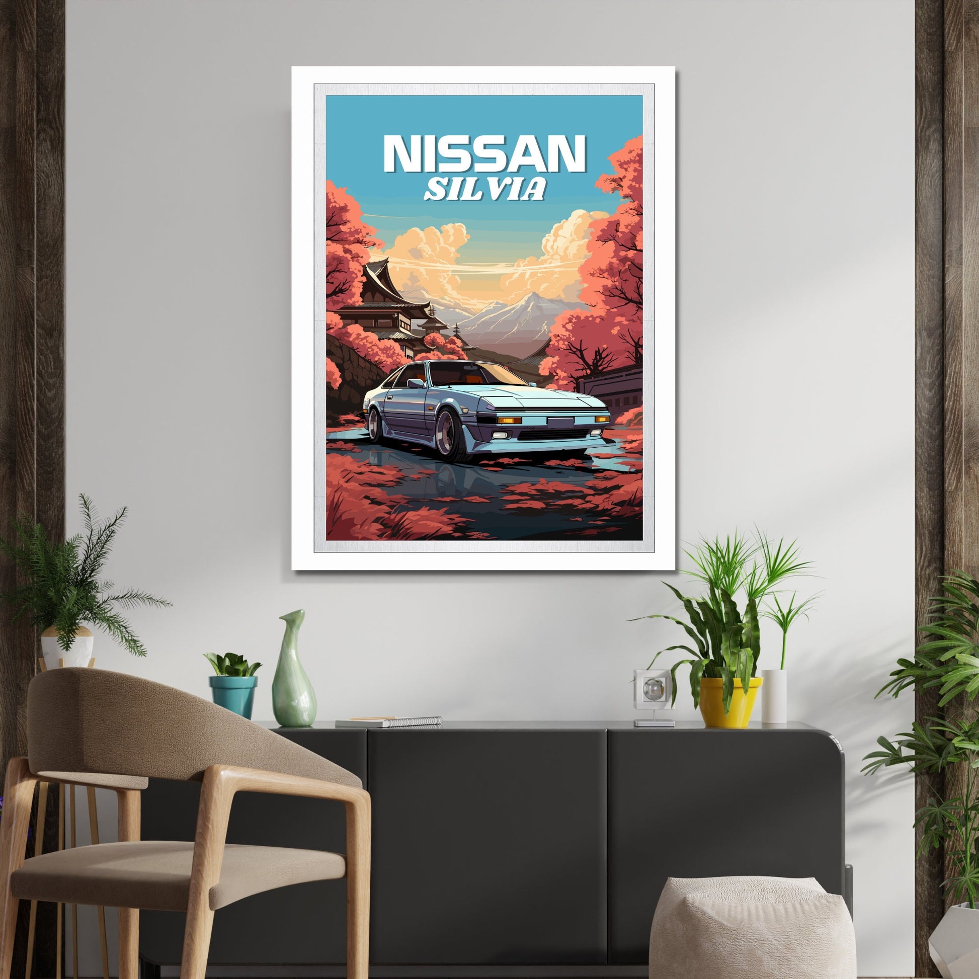 Affiche Nissan Silvia S12 – Décoration murale de voiture de sport JDM classique des années 1980