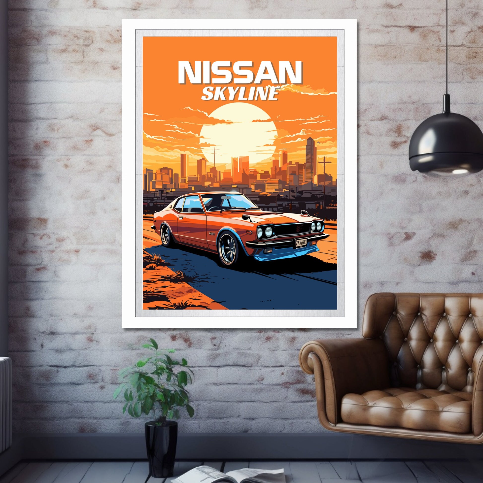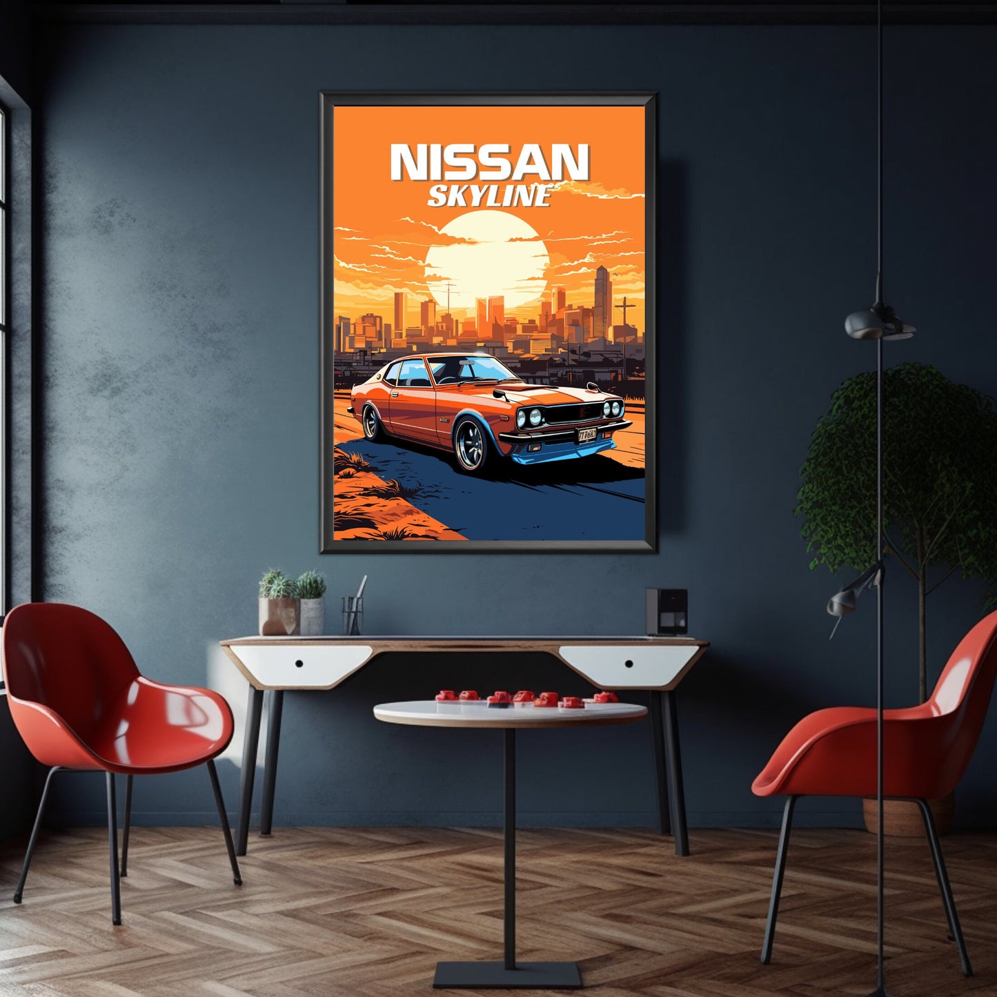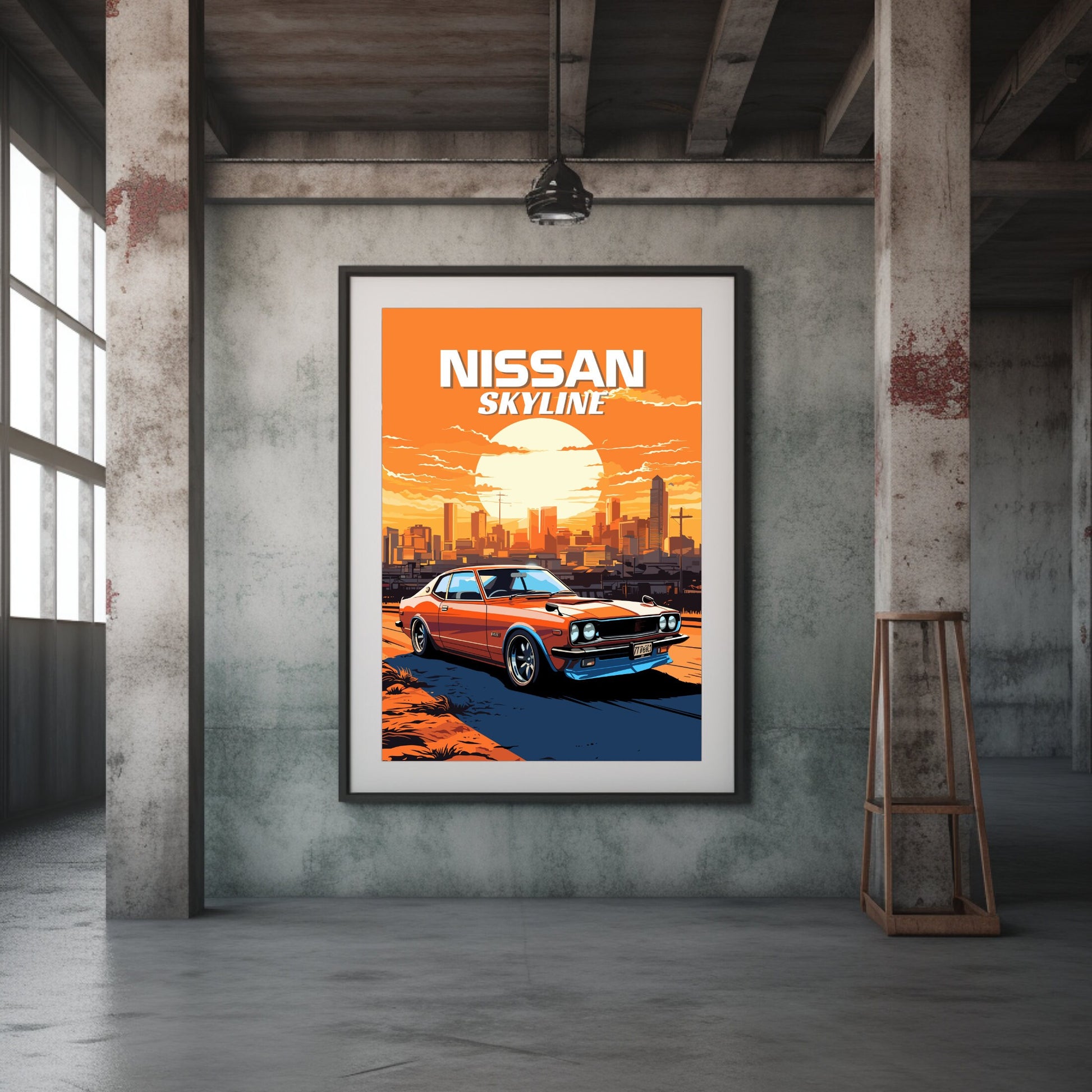 Impression Nissan Skyline 2e génération – Décoration murale de voiture classique japonaise des années 1970