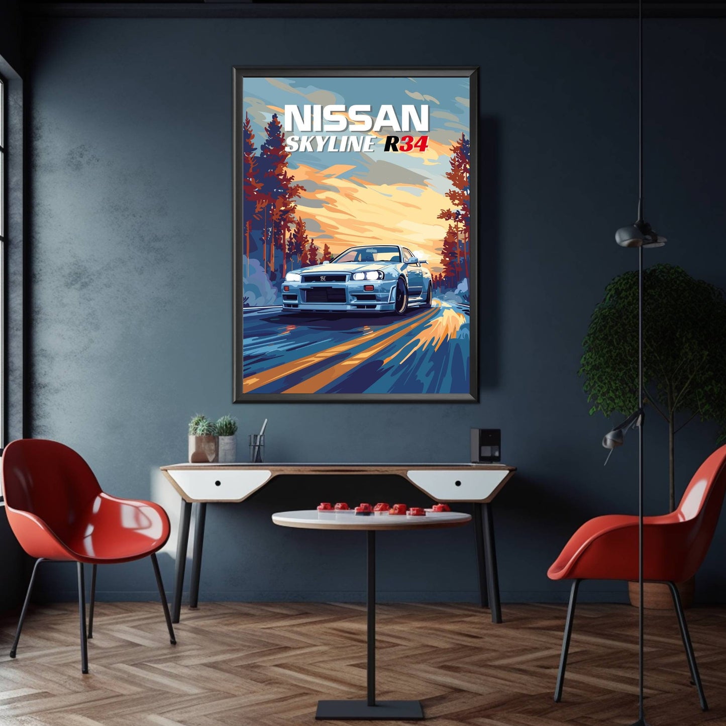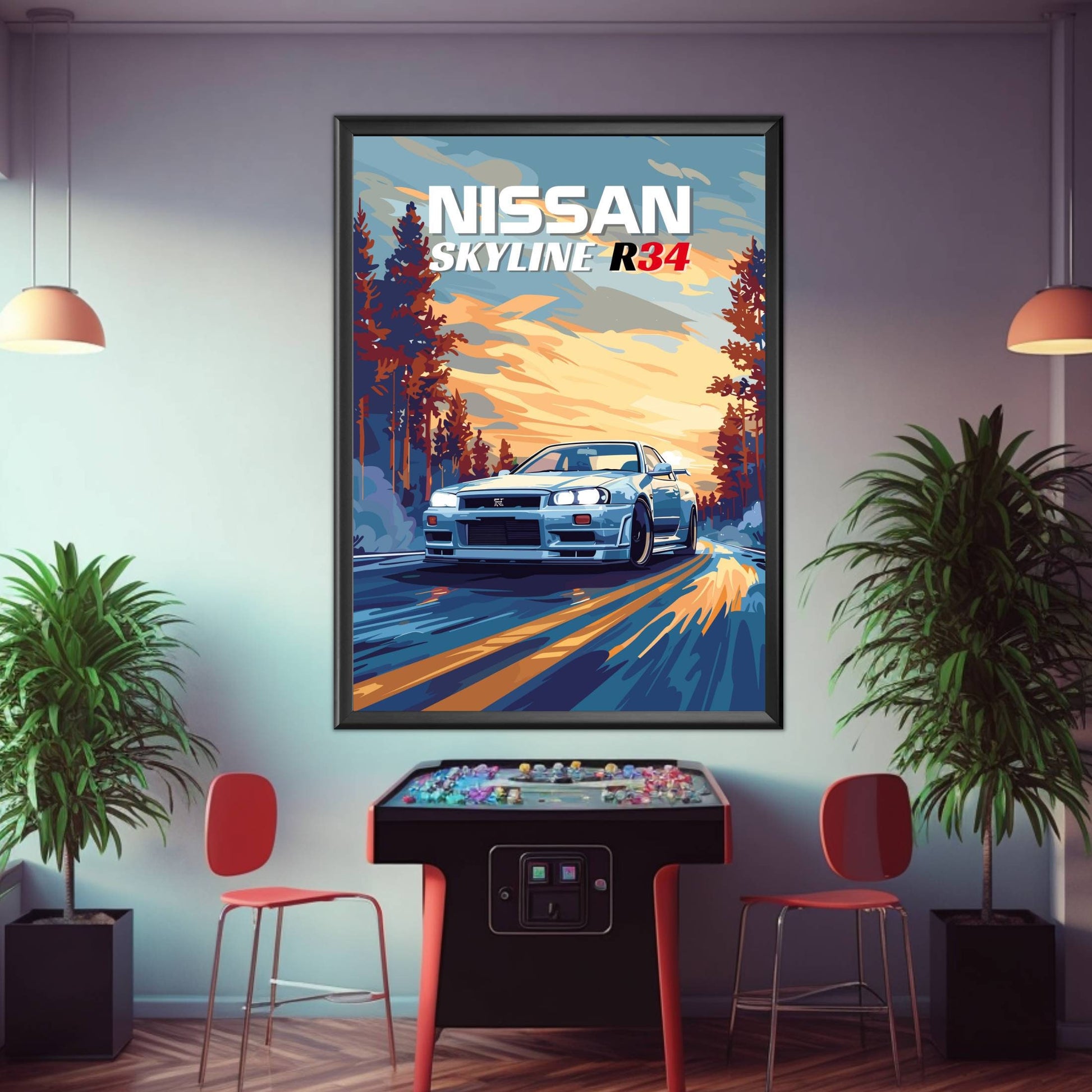 Nissan Skyline R34 Art – Art mural GT-R JDM des années 1990