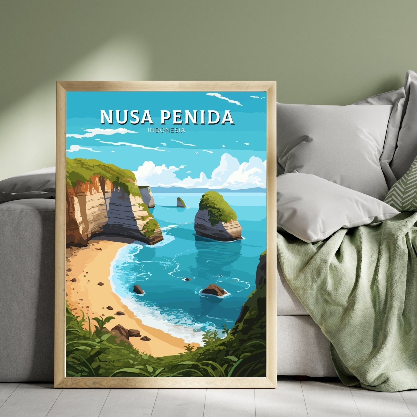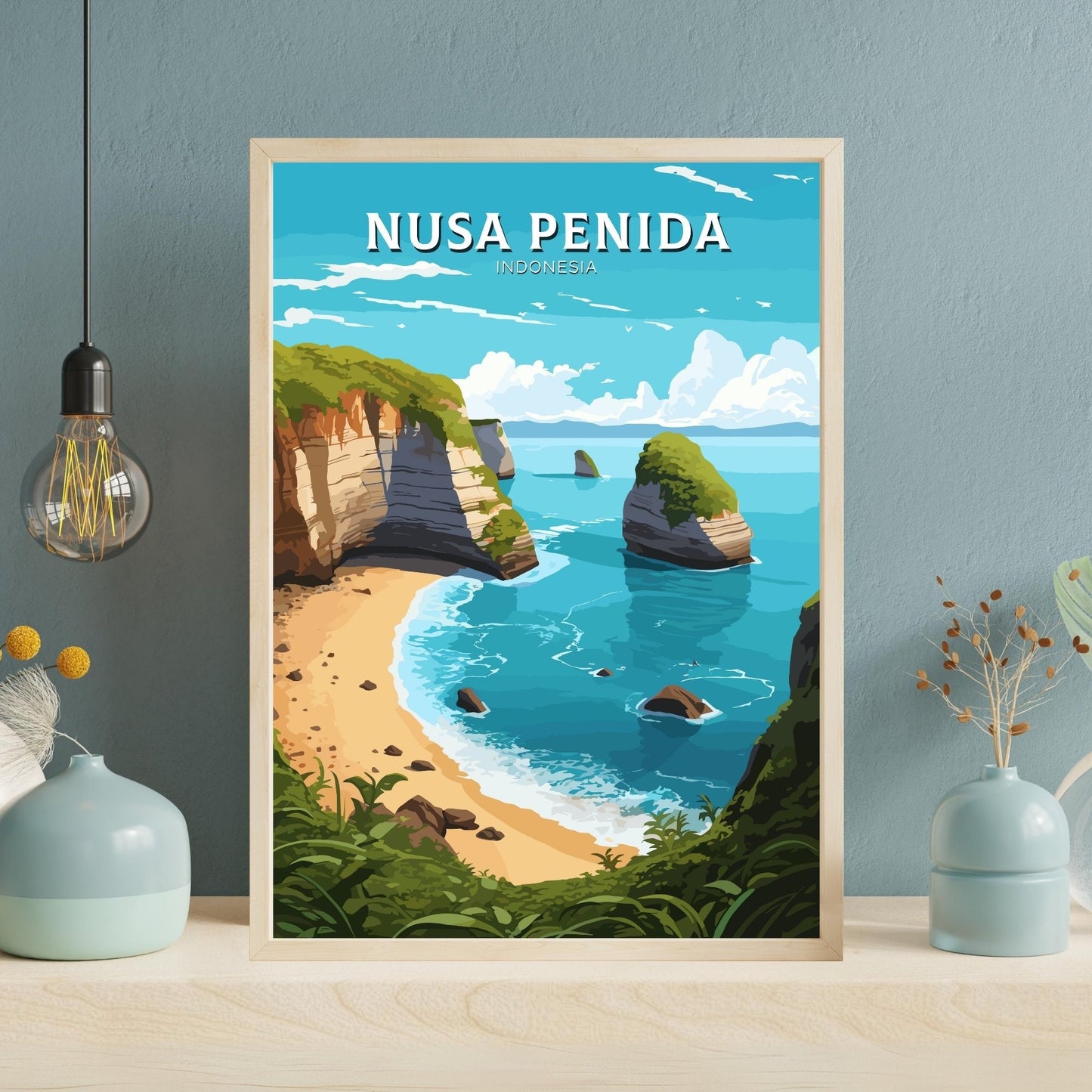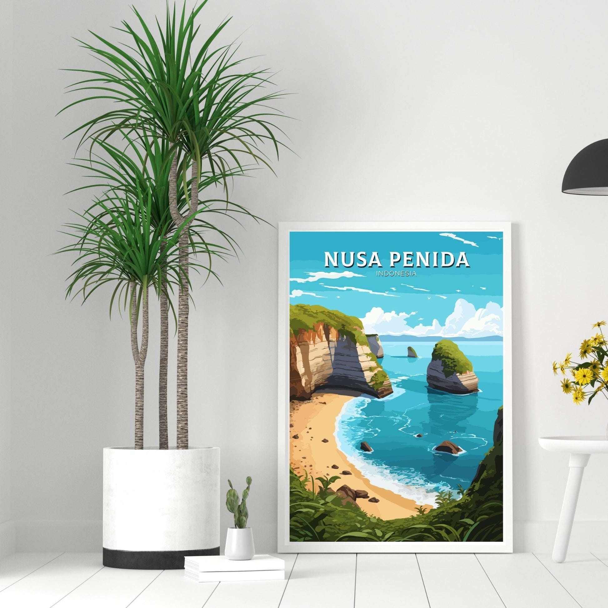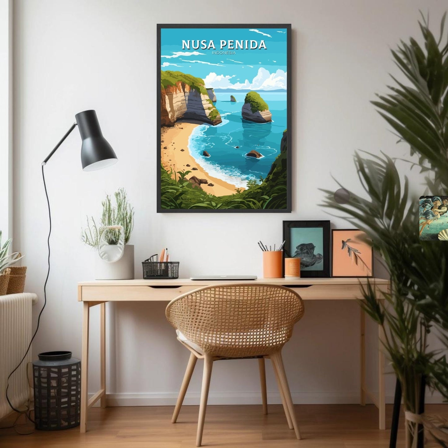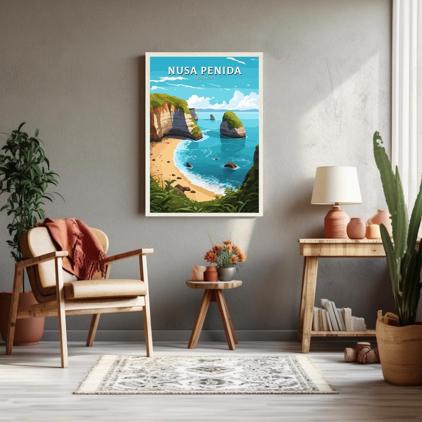 Notre affiche Nusa Penida - Bali Print plonge votre intérieur dans le paradis sauvage de Nusa Penida grâce à son design vibrant. Idéale pour les passionnés de voyages et les amateurs d'art, elle capture les falaises spectaculaires, les baies turquoise et la plage de Kelingking de l'île avec des détails saisissants. Que vous ayez exploré ses côtes ou rêvé de sa beauté, cette affiche Nusa Penida Bali sera un ajout magnifique à votre décoration.