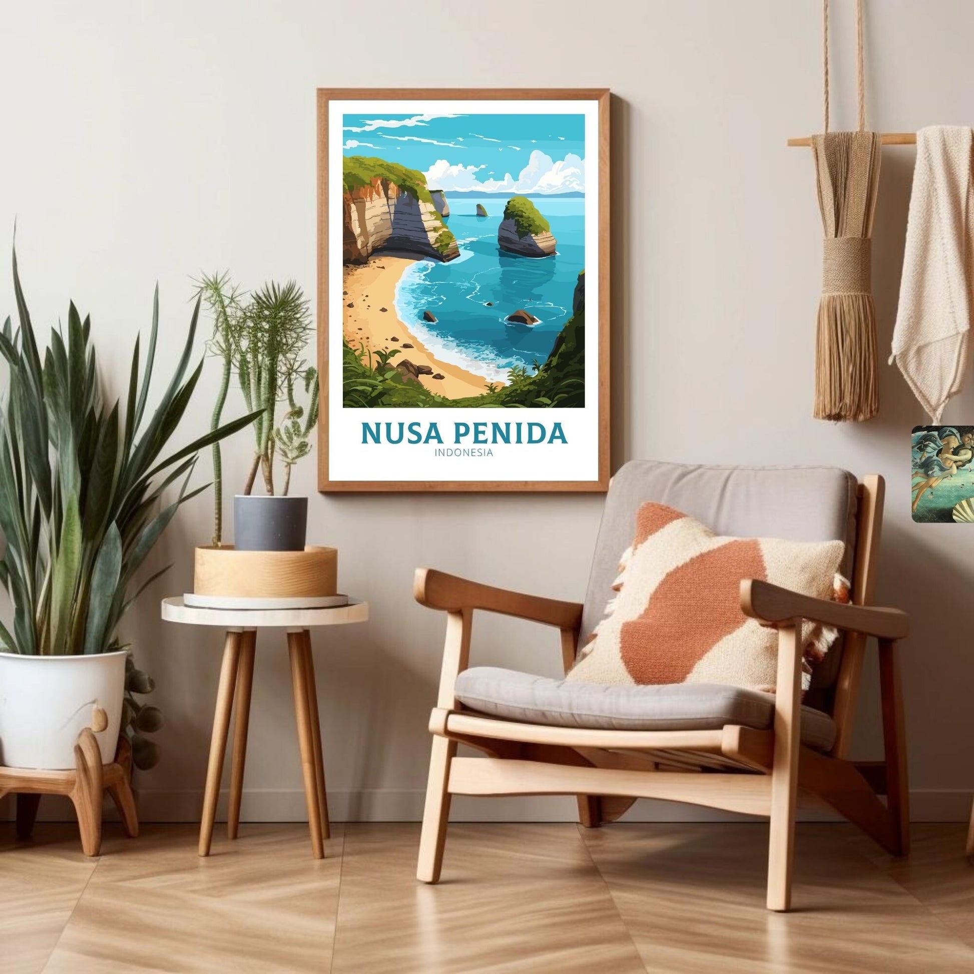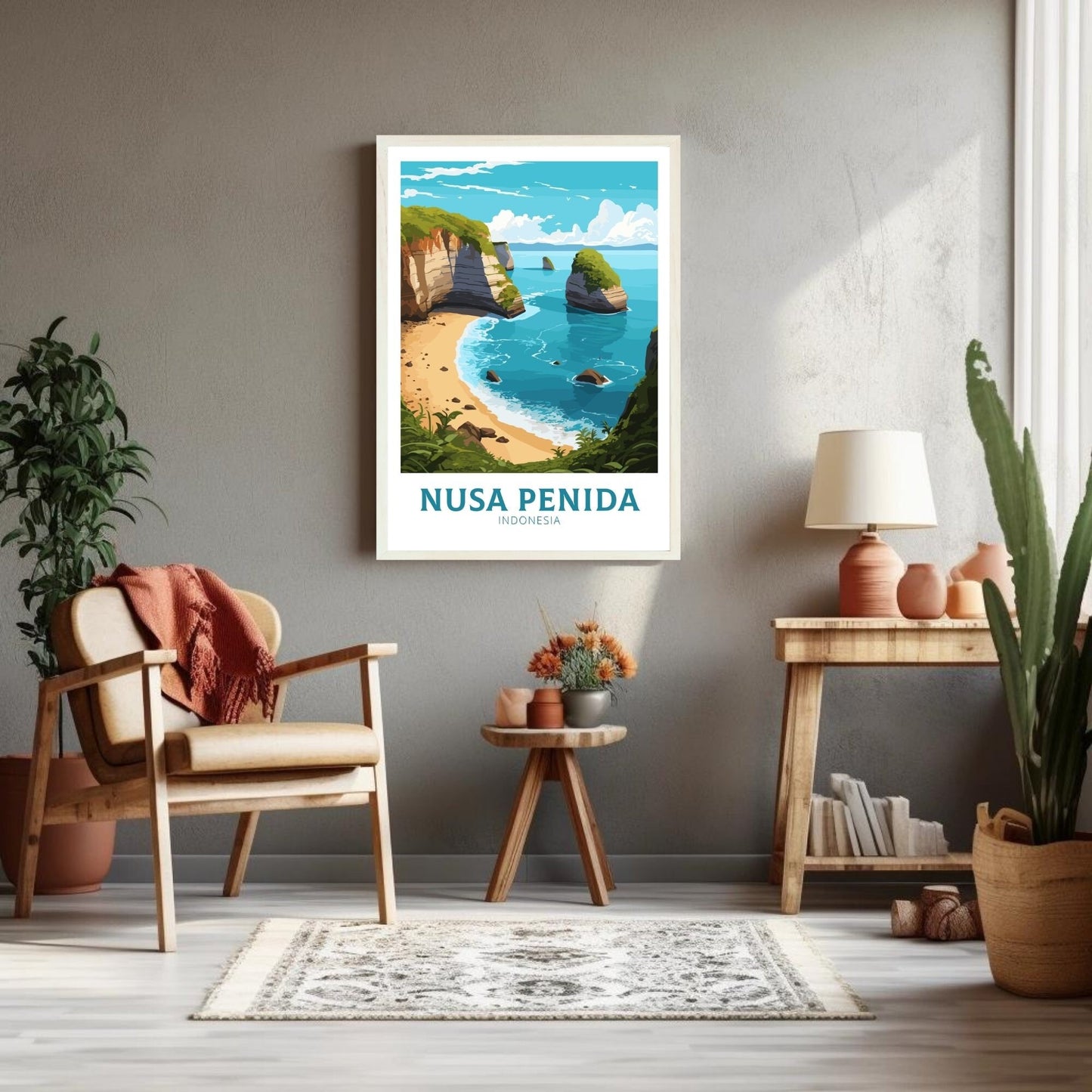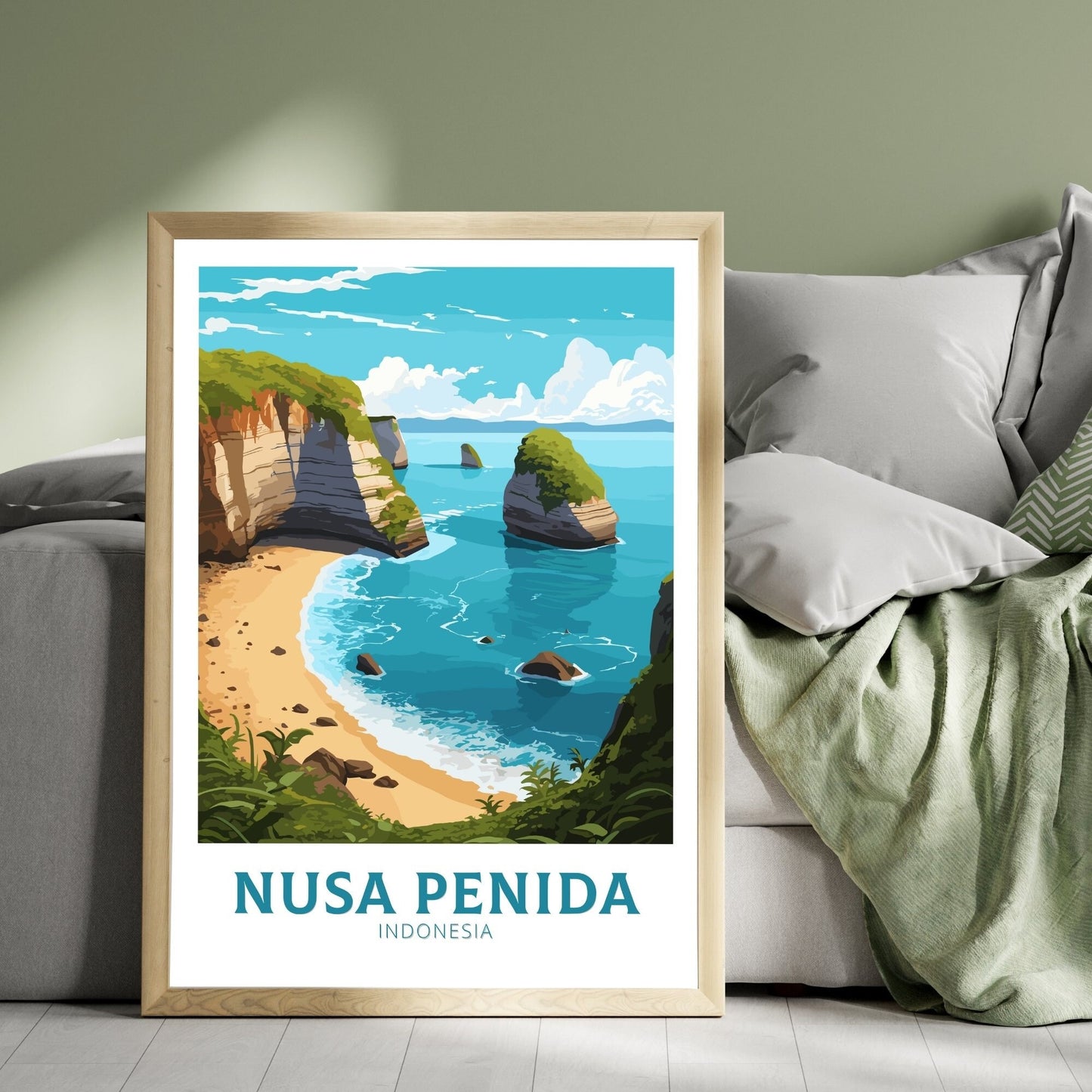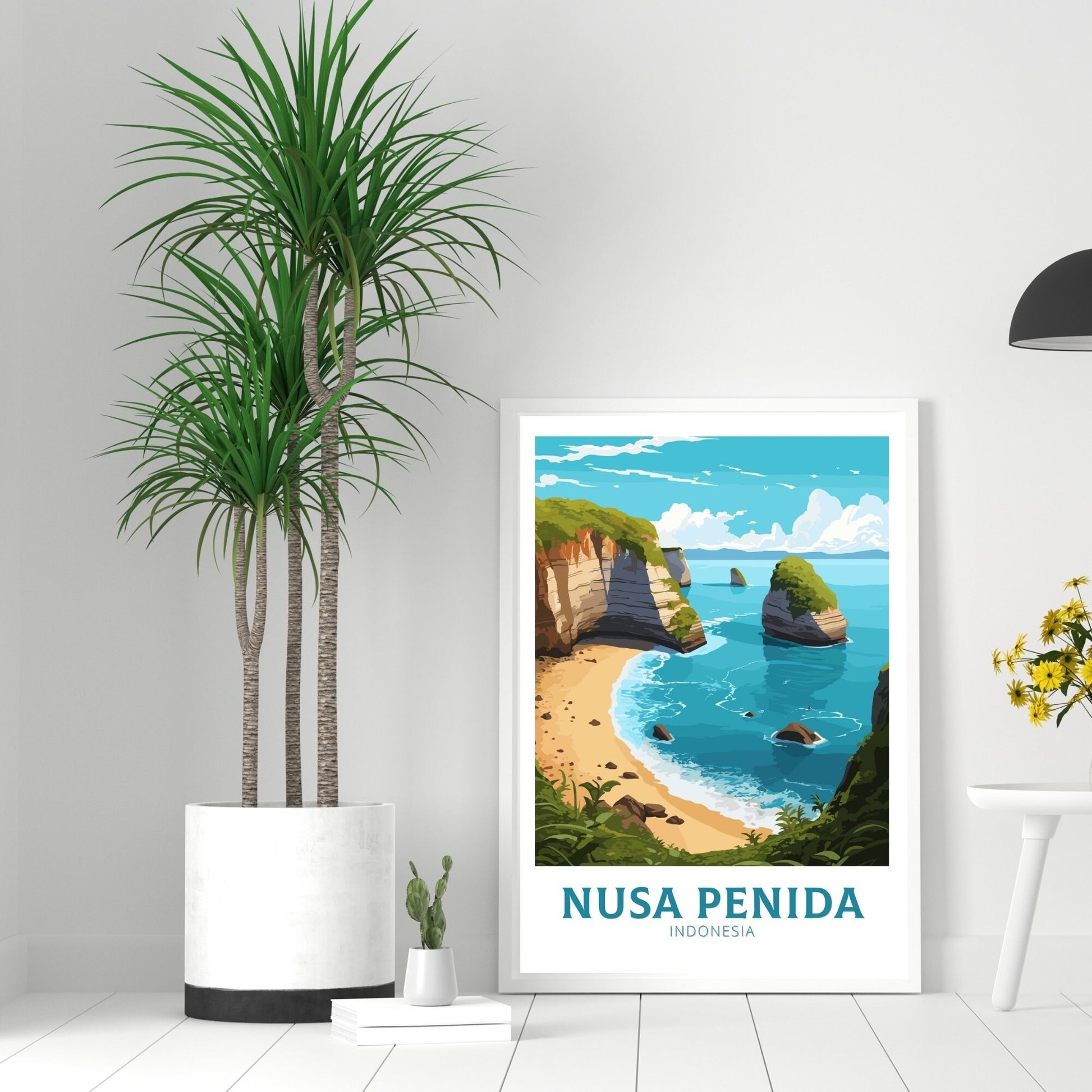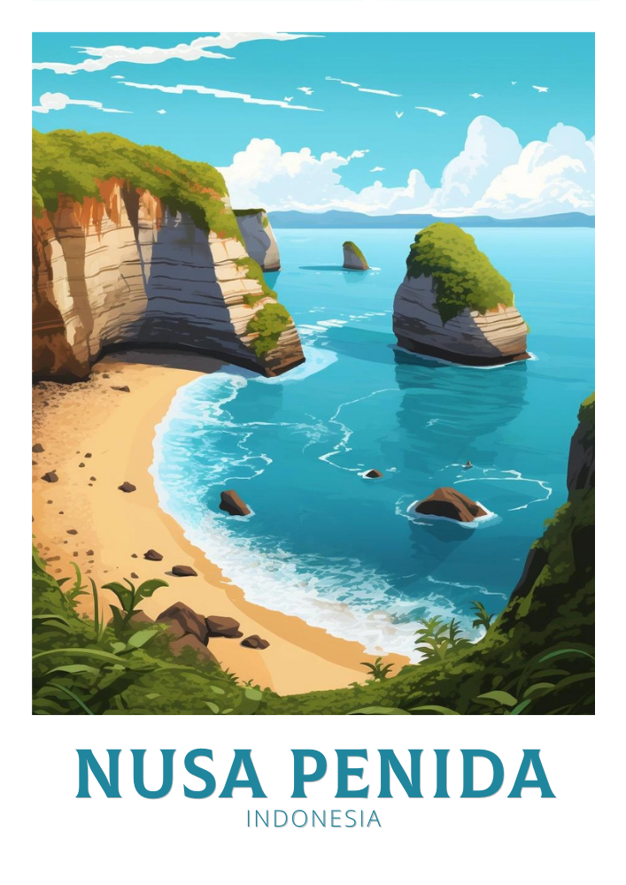 Notre affiche de voyage Nusa Penida – Art rétro de Bali plonge votre intérieur dans le paradis sauvage de Nusa Penida grâce à son design vibrant. Idéale pour les passionnés de voyages et les amateurs d'art, elle capture les falaises spectaculaires, les baies turquoise et la plage de Kelingking de l'île avec des détails saisissants. Que vous ayez exploré ses côtes ou rêvé de sa beauté, cette affiche rétro de Nusa Penida sera un ajout remarquable à votre décoration.