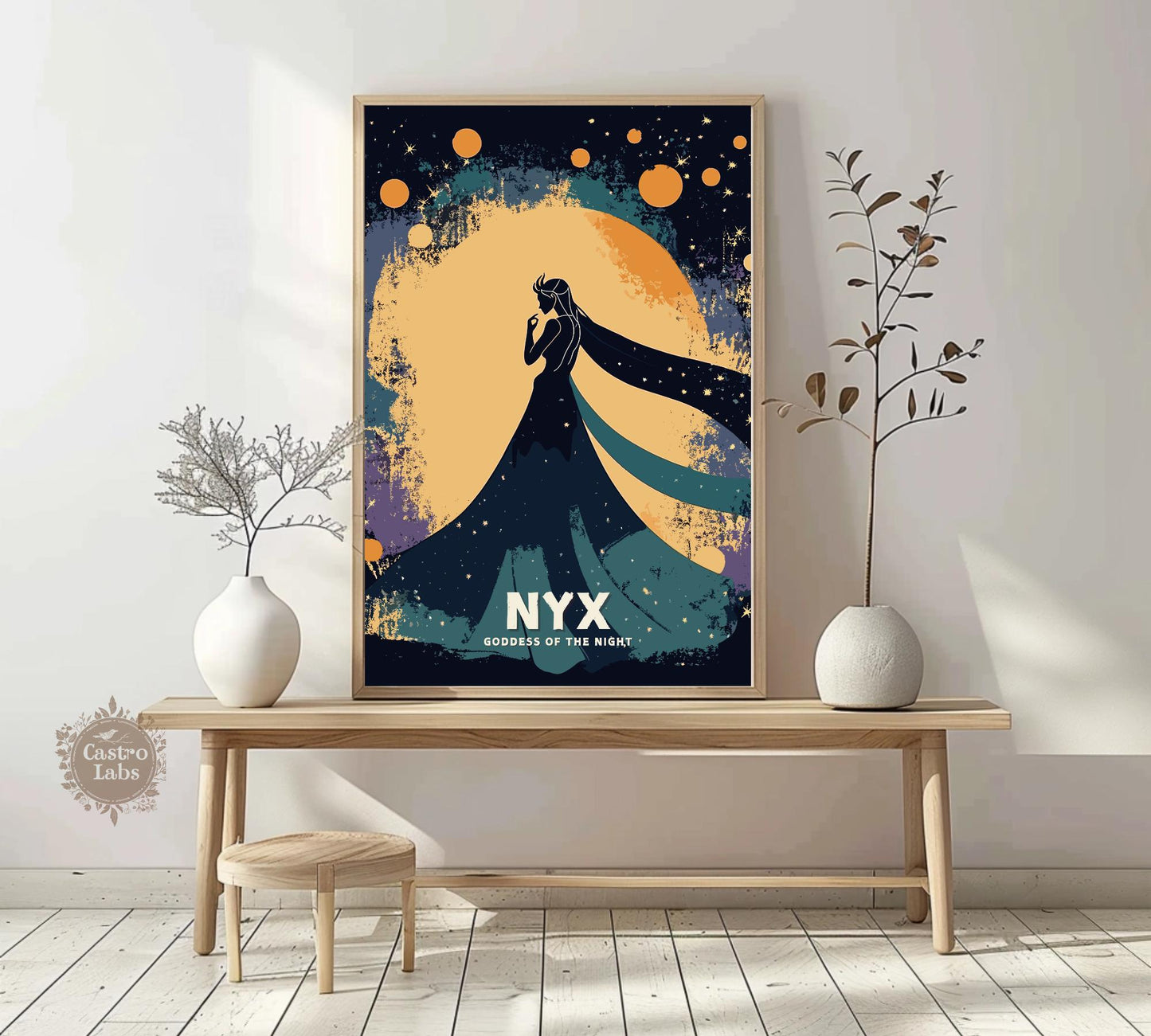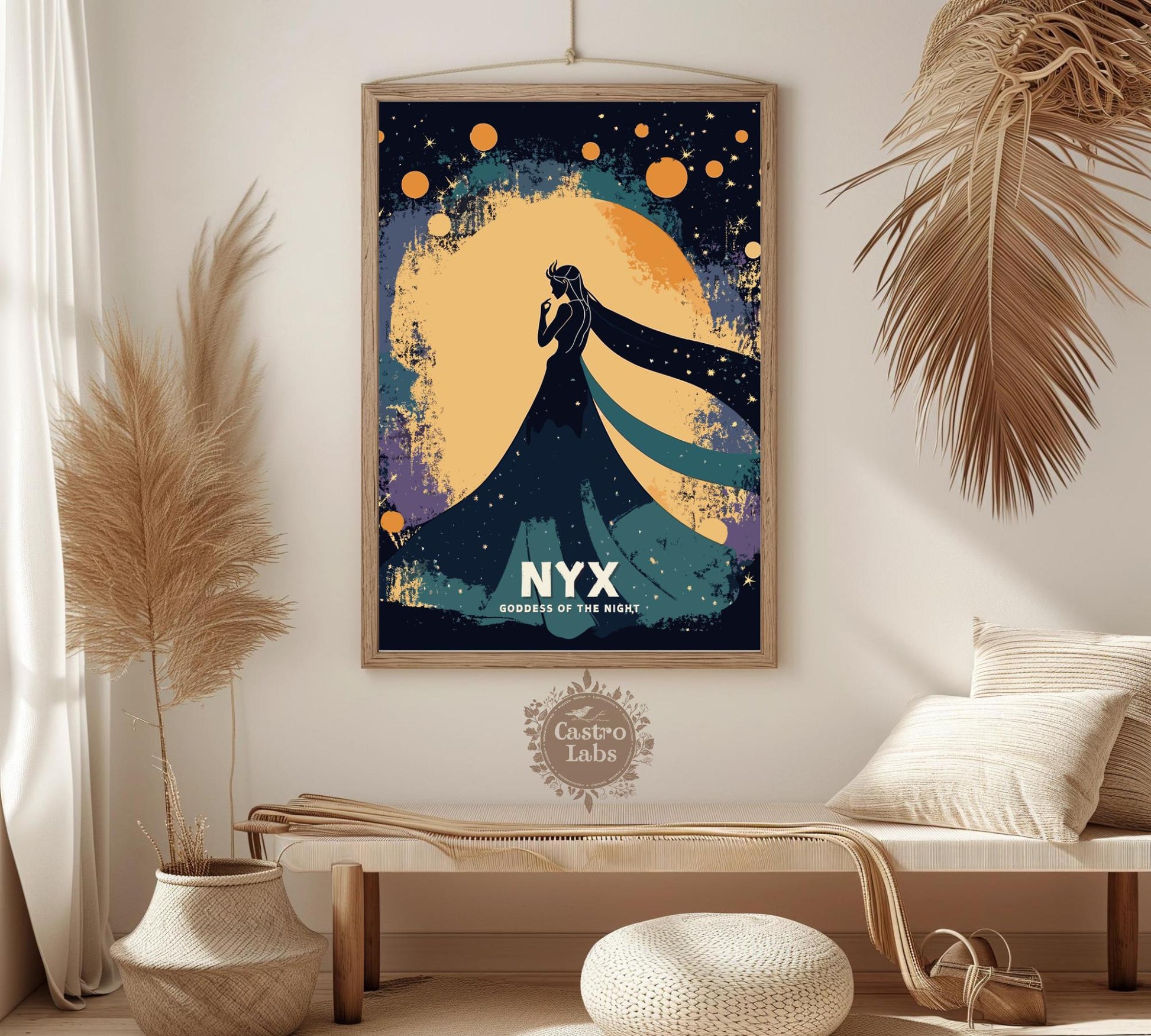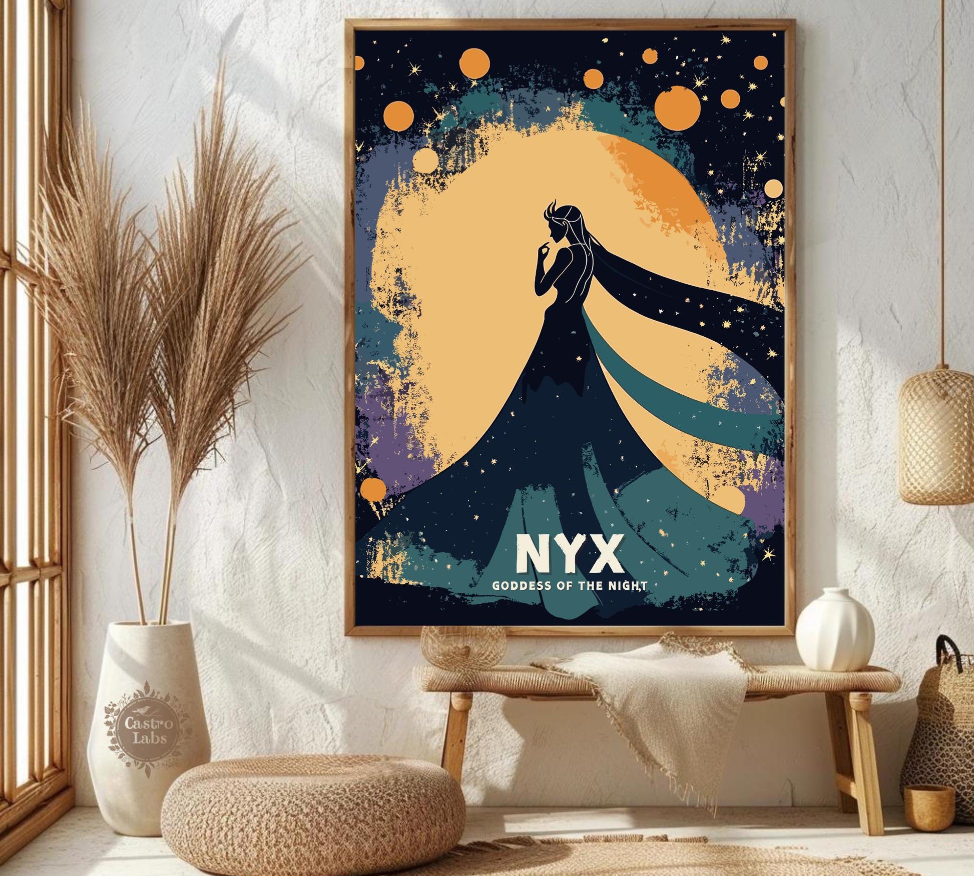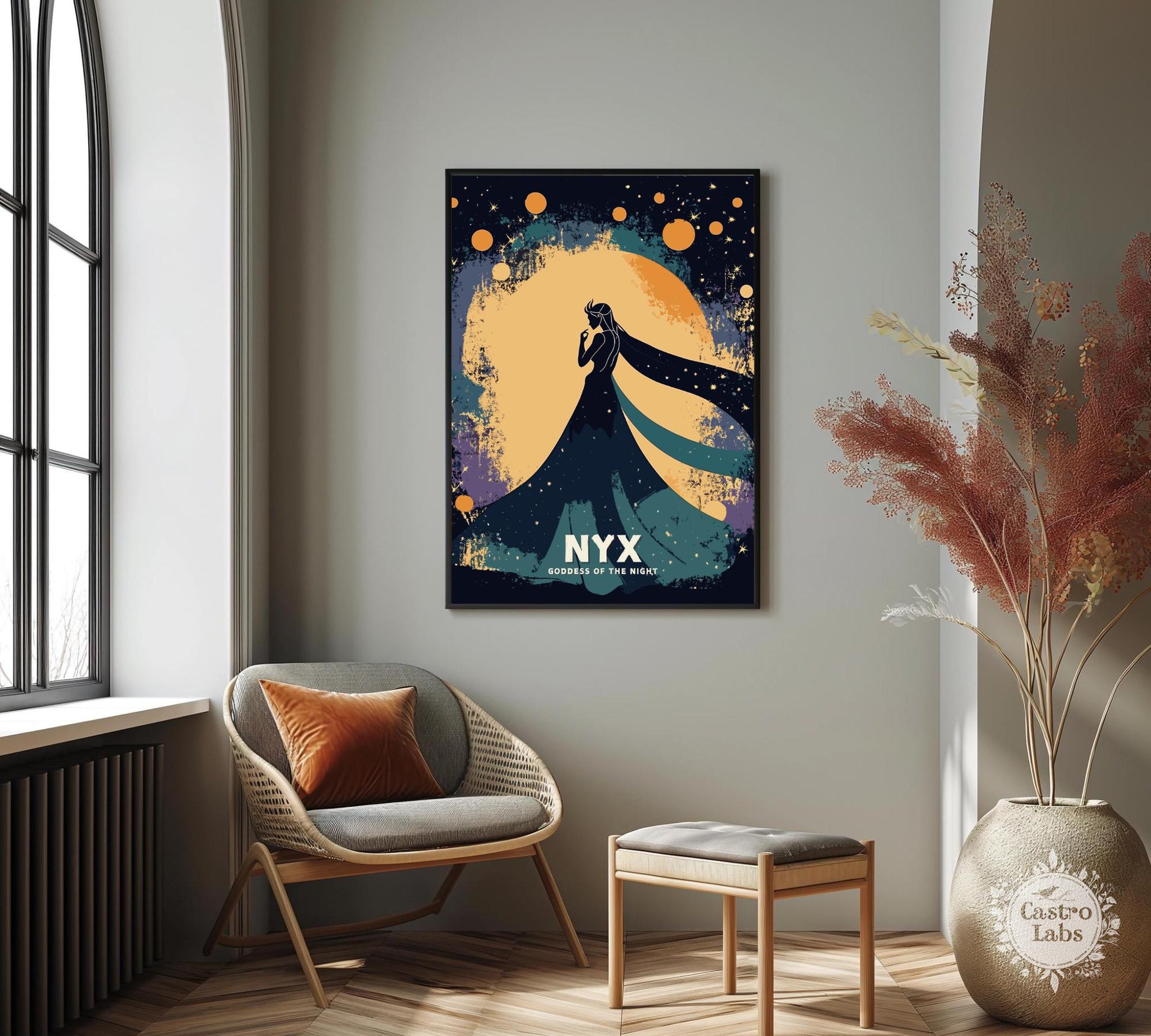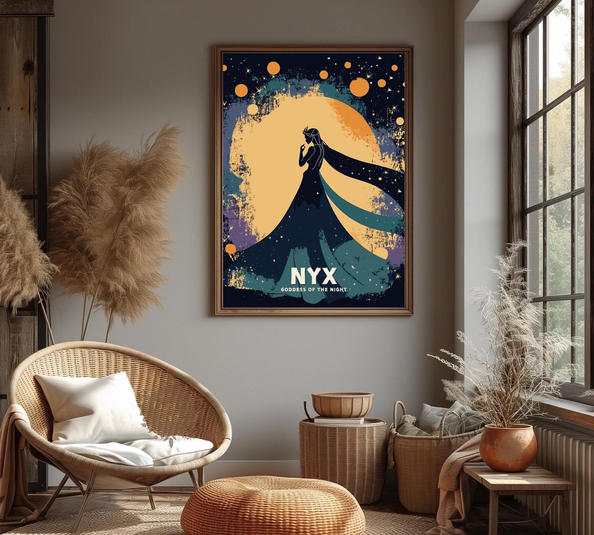 Notre affiche Nyx, déesse grecque de la nuit, enveloppe votre espace d'une mystique ténébreuse grâce à son design saisissant. Parfaite pour les passionnés de mythologie et de nuit, elle représente Nyx, la déesse grecque de la nuit, enveloppée d'étoiles et d'une splendeur obscure. Que vous soyez sensible à son énigme ou amateur d'art audacieux, cette affiche Nyx Nuit apportera une touche captivante à votre décoration.