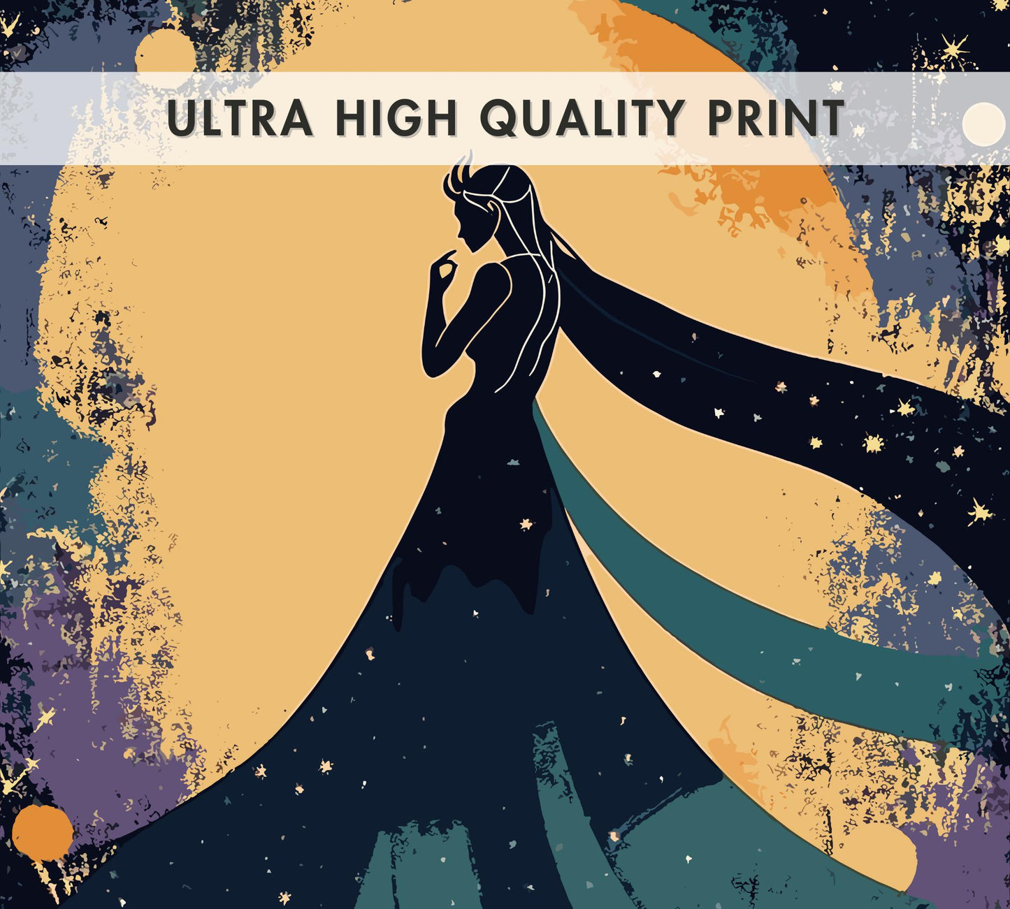 Cette œuvre mêle des noirs profonds et des tons argentés à l'essence primordiale de Nyx, capturant sa domination sur les ténèbres dans un style envoûtant. Imprimée sur un papier de qualité supérieure, elle offre un éclat durable et une finition lisse, ce qui en fait un cadeau idéal pour les astronomes amateurs ou les passionnés de mythologie. Ce poster Nyx apporte une touche d'élégance nocturne à tous vos murs.
