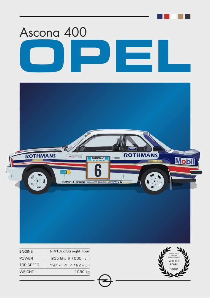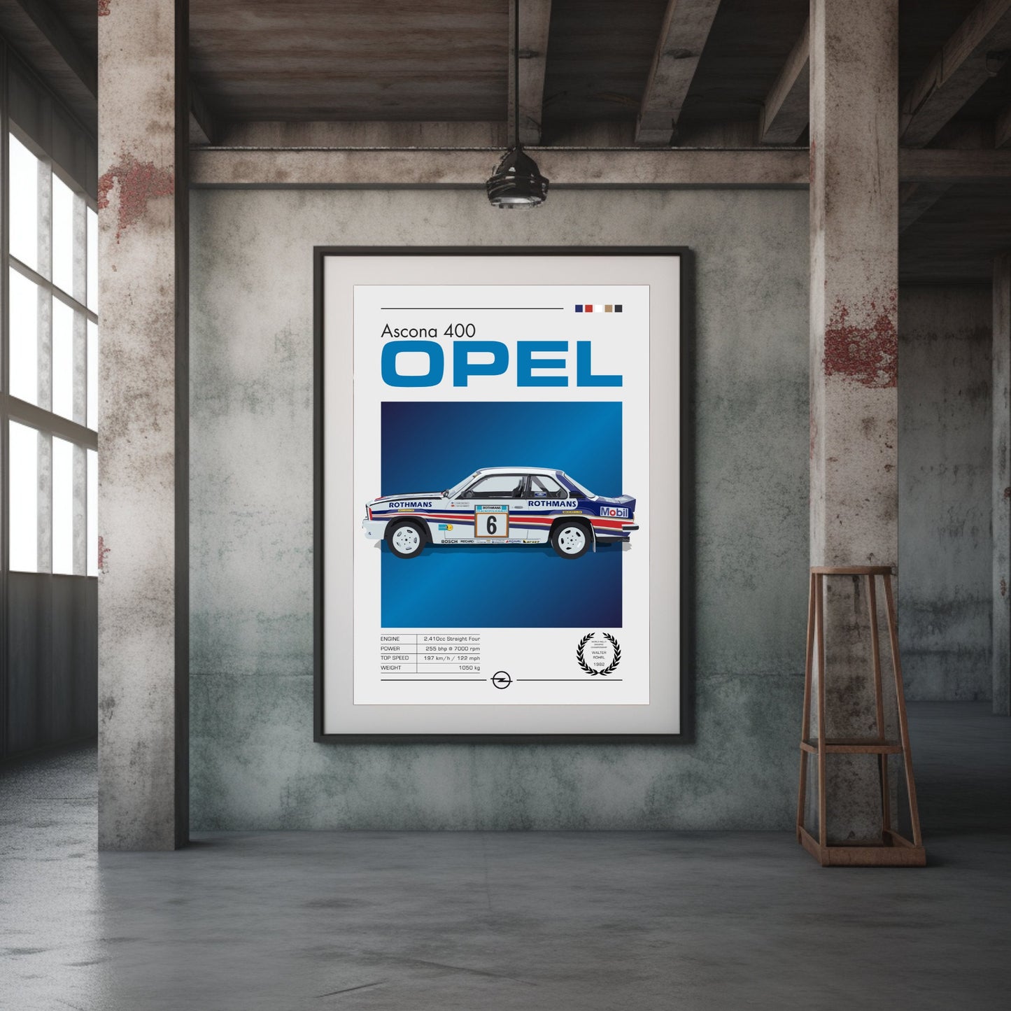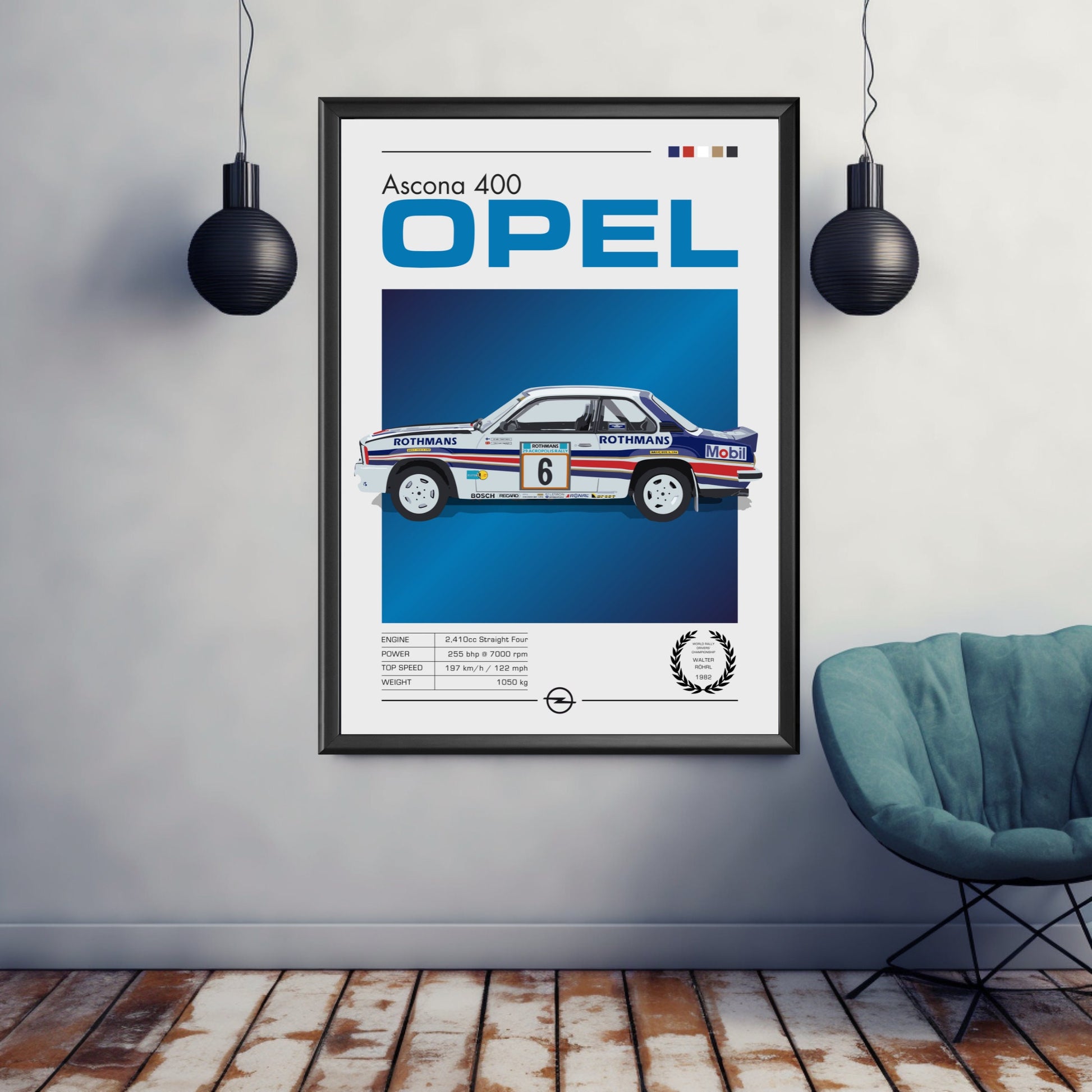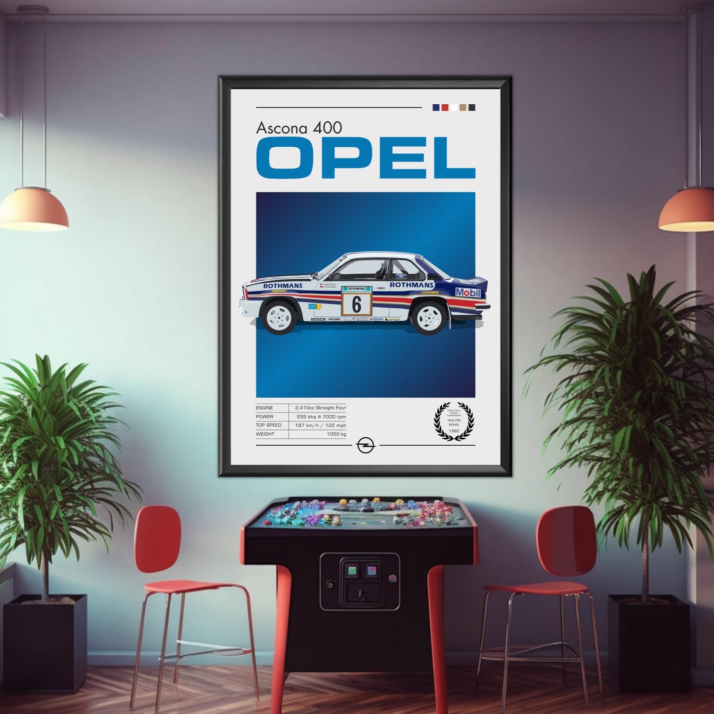 Affiche Opel Ascona 400 – Impression murale classique du rallye du Groupe B