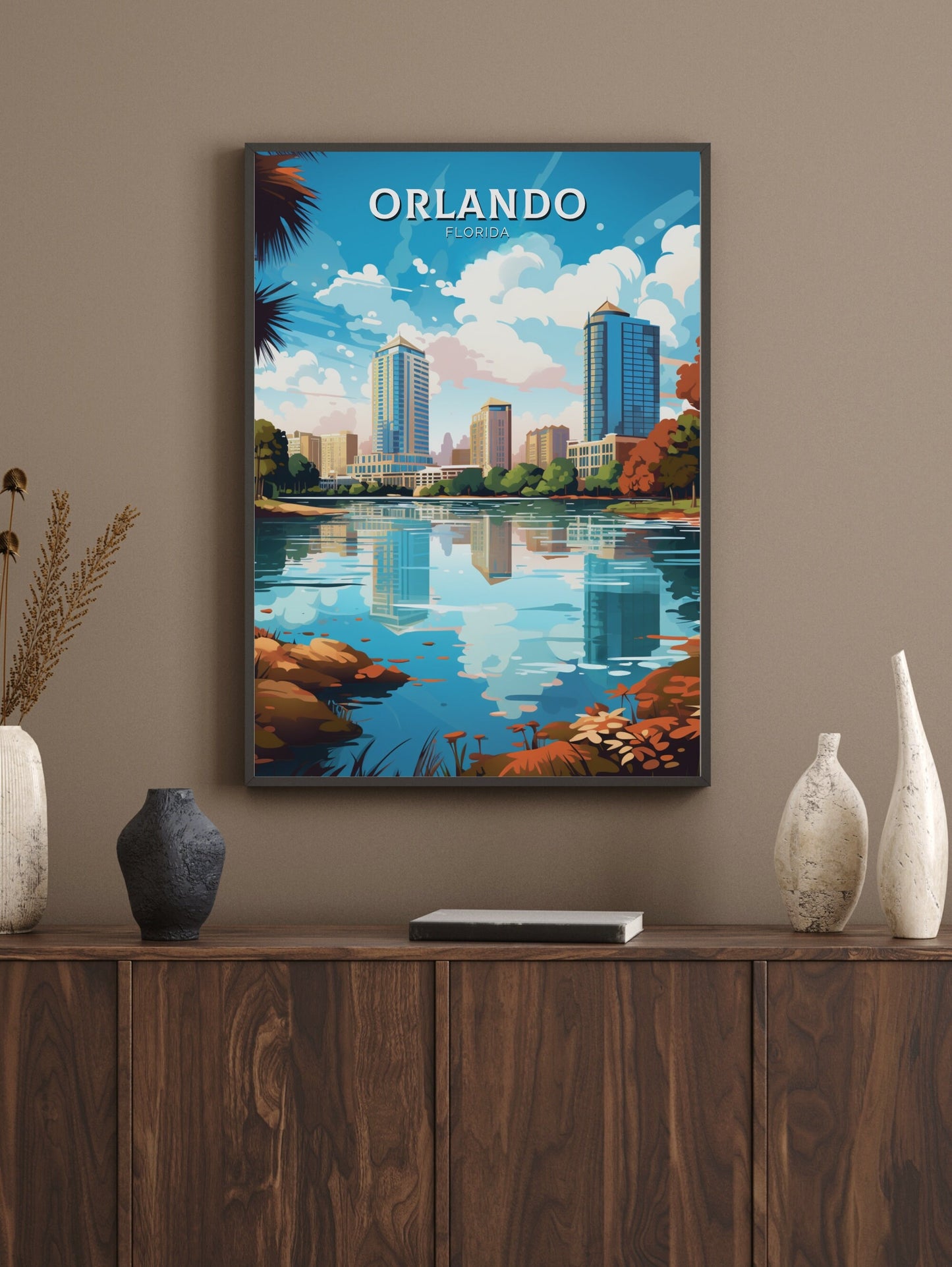 Inspirez-vous de l'esprit dynamique d'Orlando avec notre affiche de voyage . Cette œuvre d'art floridienne met en valeur les monuments emblématiques de la ville, ses rues animées et son charme ensoleillé. Parfaite pour les passionnés de voyages, les fans de Disney et les admirateurs du Sunshine State.