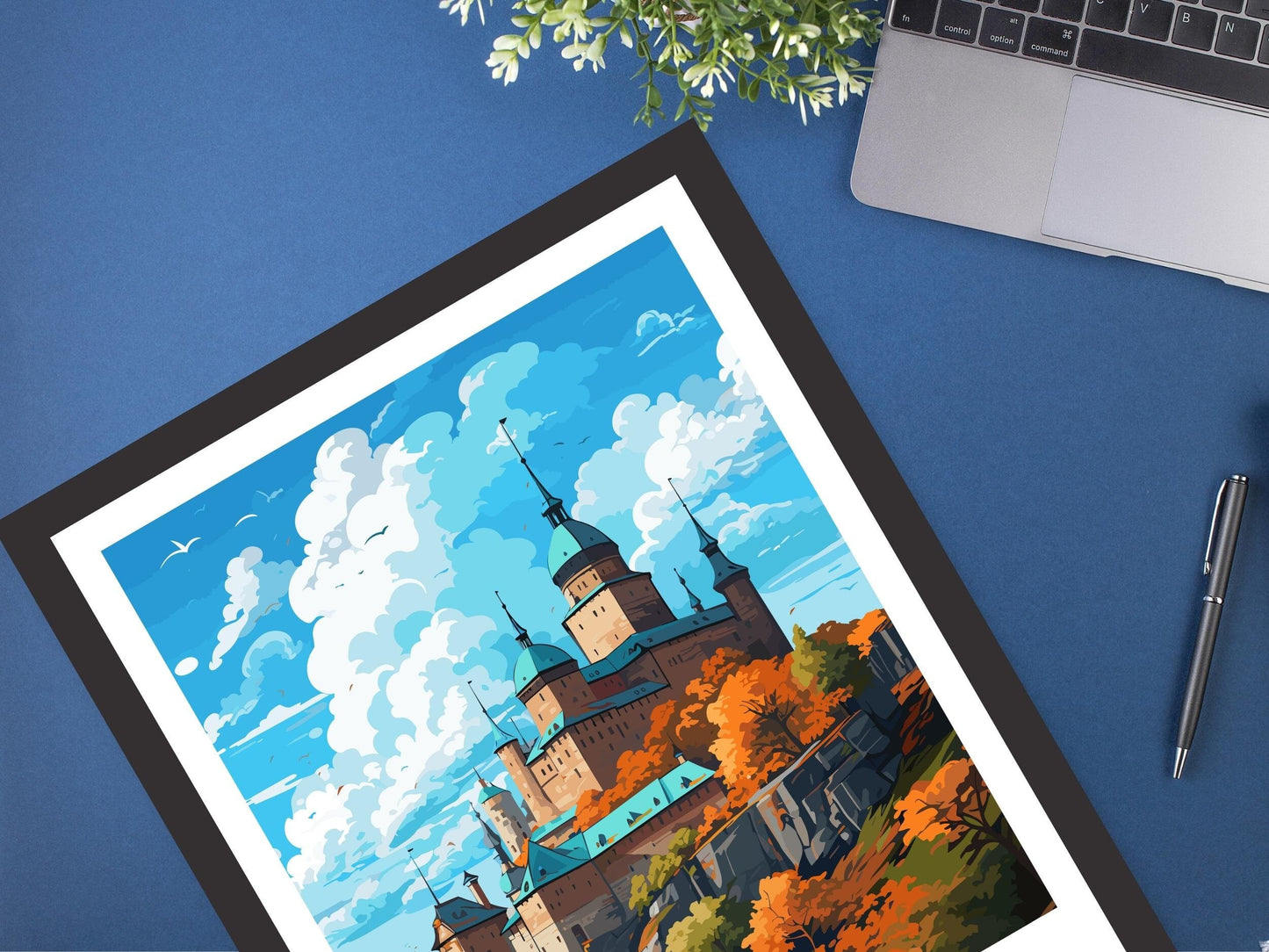 Plongez dans le charme vibrant de la capitale norvégienne avec cette affiche Oslo Travel Art – Norvège . Présentant une illustration élégante et moderne des monuments emblématiques d'Oslo, comme l'Opéra, la forteresse d'Akershus et le fjord en toile de fond, cette œuvre capture le mélange unique de vie urbaine et de beauté naturelle de la ville. Avec une palette inspirée du design nordique – bleus froids, blancs éclatants et tons terre chauds – cette affiche apporte une touche de fraîcheur et de sophistication à tout espace.