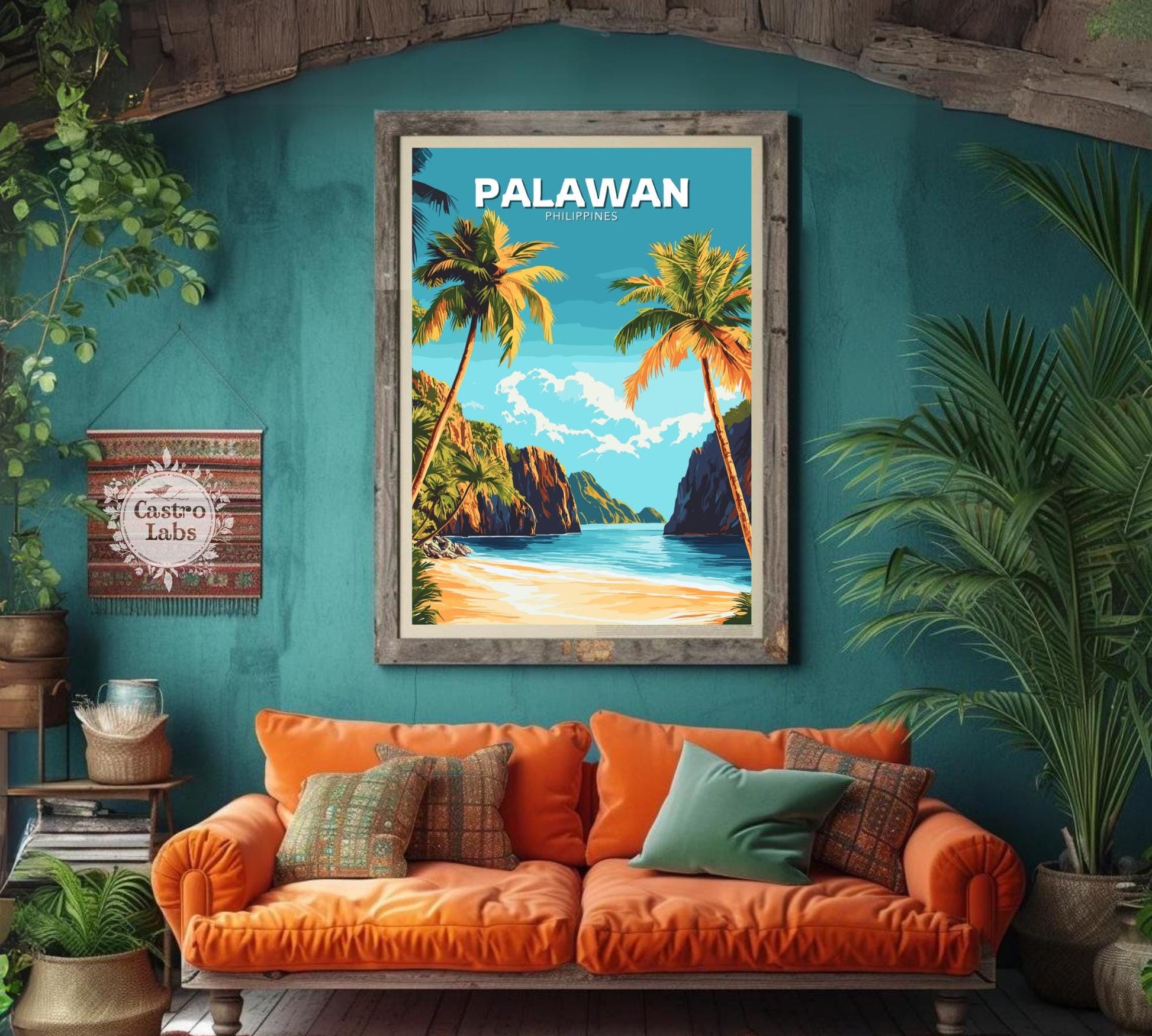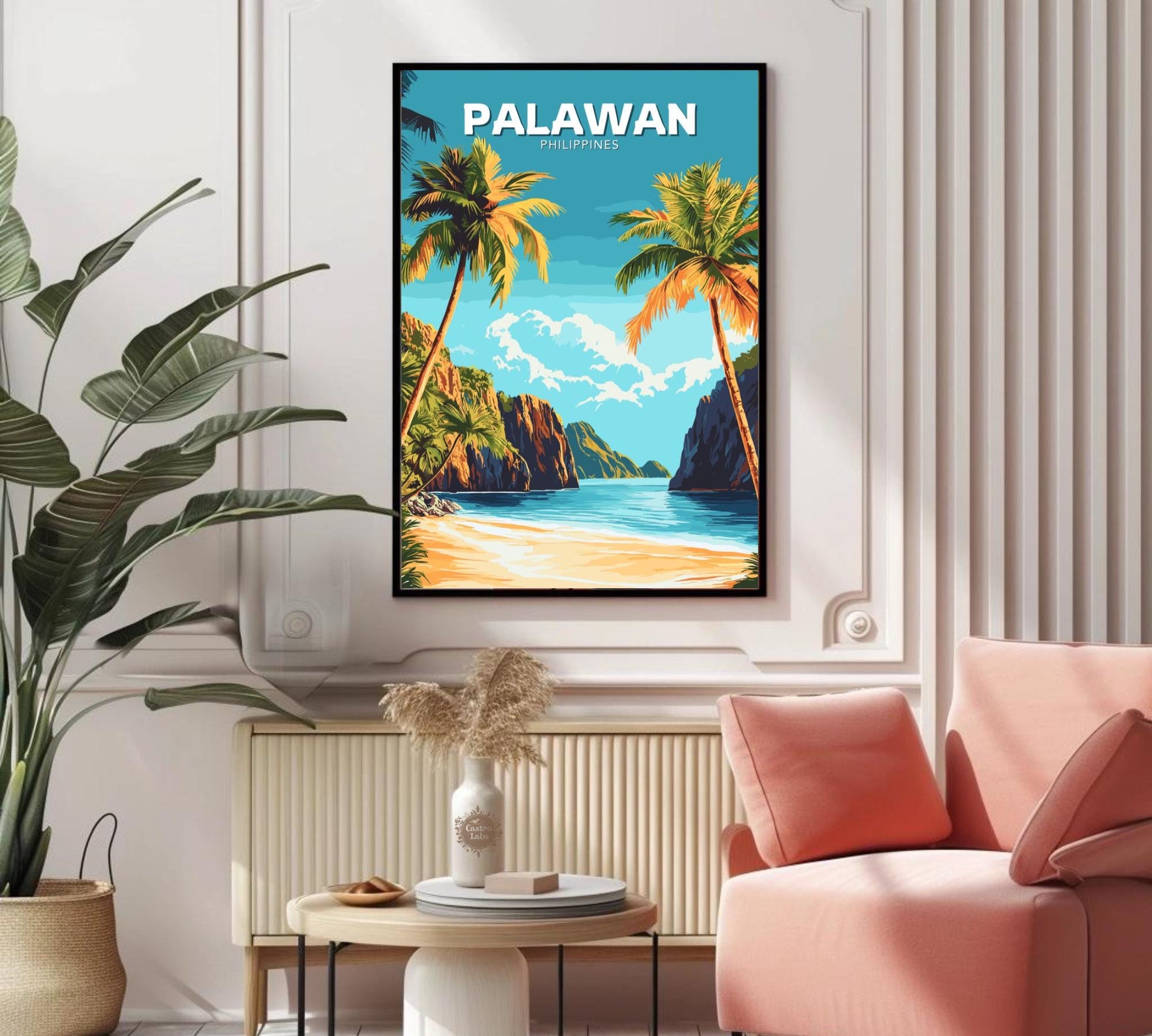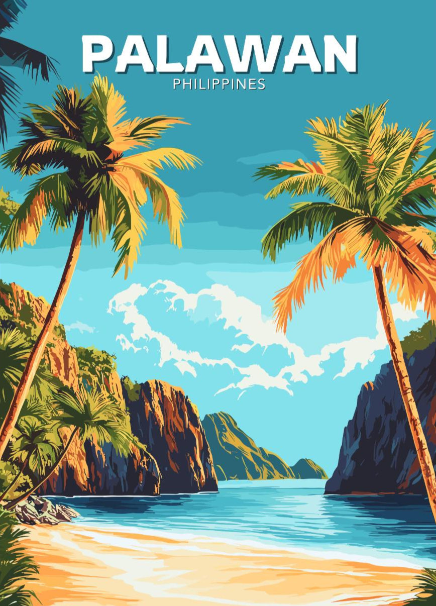 Notre affiche de Palawan vous transporte au cœur du paradis immaculé des Philippines grâce à son design époustouflant. Conçue pour les amoureux de la beauté tropicale, elle met en valeur les eaux cristallines, les falaises calcaires et la jungle luxuriante de Palawan. Que vous ayez exploré ses îles ou rêviez d'une escapade à la plage, cette affiche de Palawan aux Philippines est une façon vibrante de ramener le paradis chez vous.