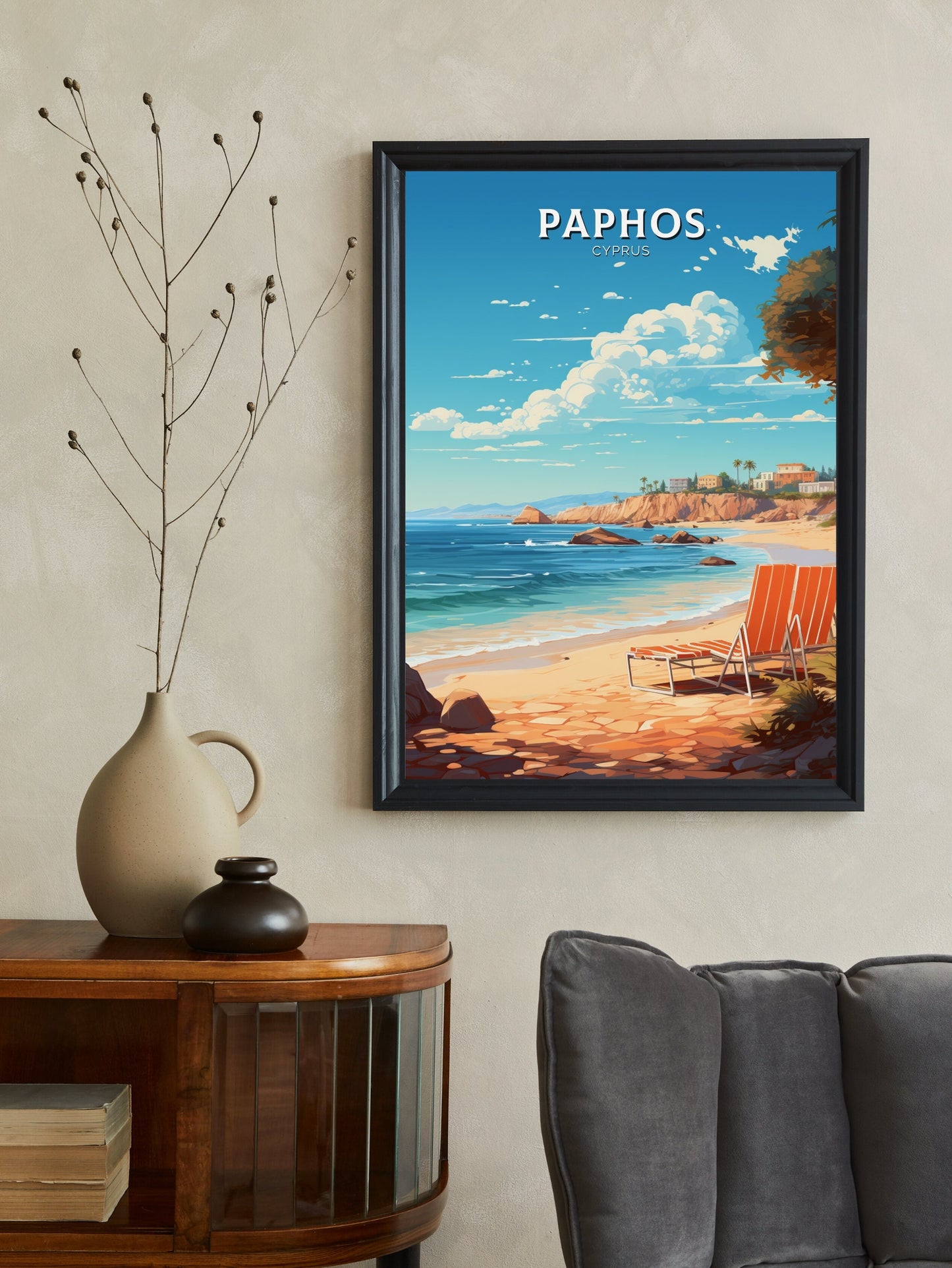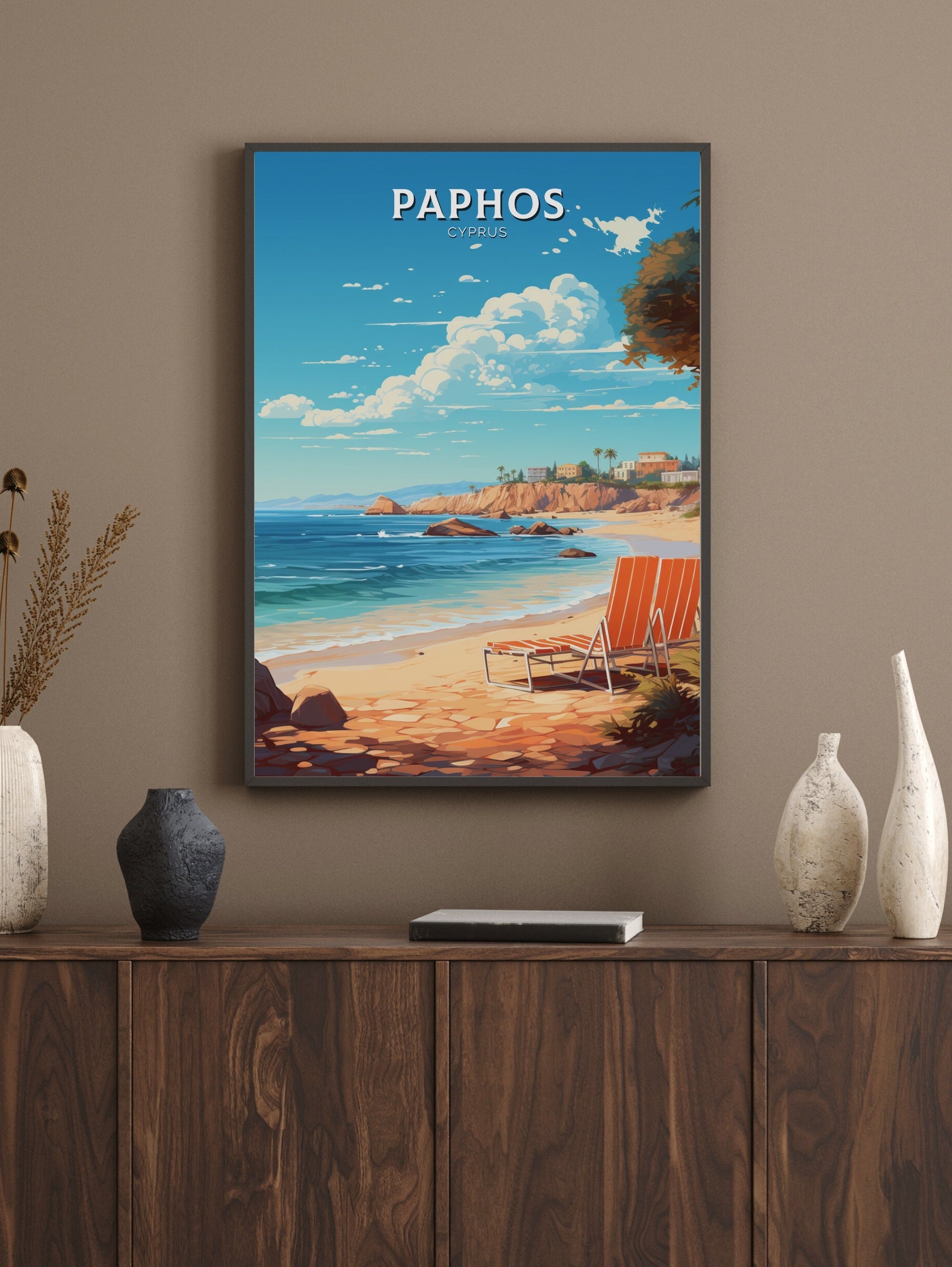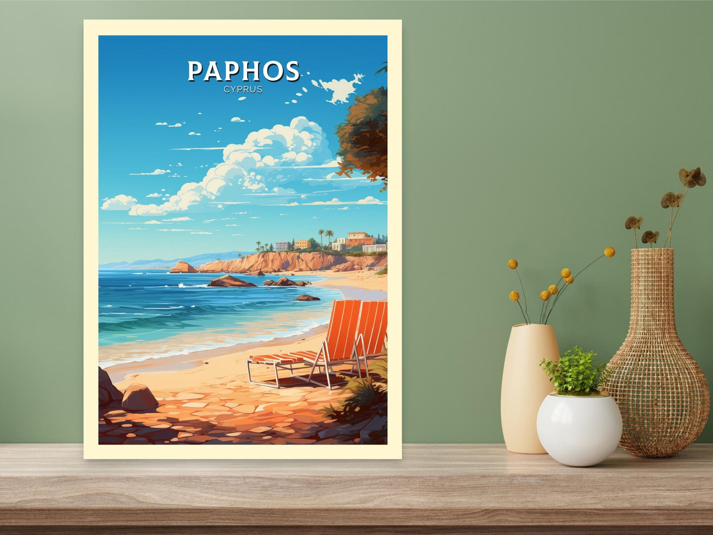 Célébrez la beauté enchanteresse de Chypre avec cette captivante affiche de voyage de Paphos – Cyprus Artwork . Mettant en valeur le charme côtier, les ruines antiques et les paysages ensoleillés de Paphos, cette affiche capture parfaitement l'esprit de l'une des destinations les plus prisées de Chypre. Des légendaires Tombeaux des Rois à l'étincelante mer Méditerranée, chaque détail reflète la richesse historique et la splendeur naturelle qui font de Paphos une destination incontournable.