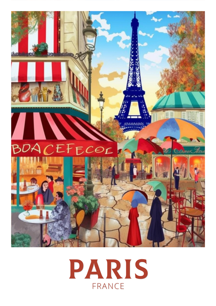 Réalisée avec des techniques d'impression de haute qualité sur du papier premium, l' affiche Café Parisien offre des couleurs riches et des détails précis, ce qui en fait une pièce remarquable pour votre collection d'art mural. Qu'elle soit exposée dans votre cuisine, votre salon ou votre café, cette œuvre vous invite à savourer chaque jour un moment de détente et une touche parisienne.