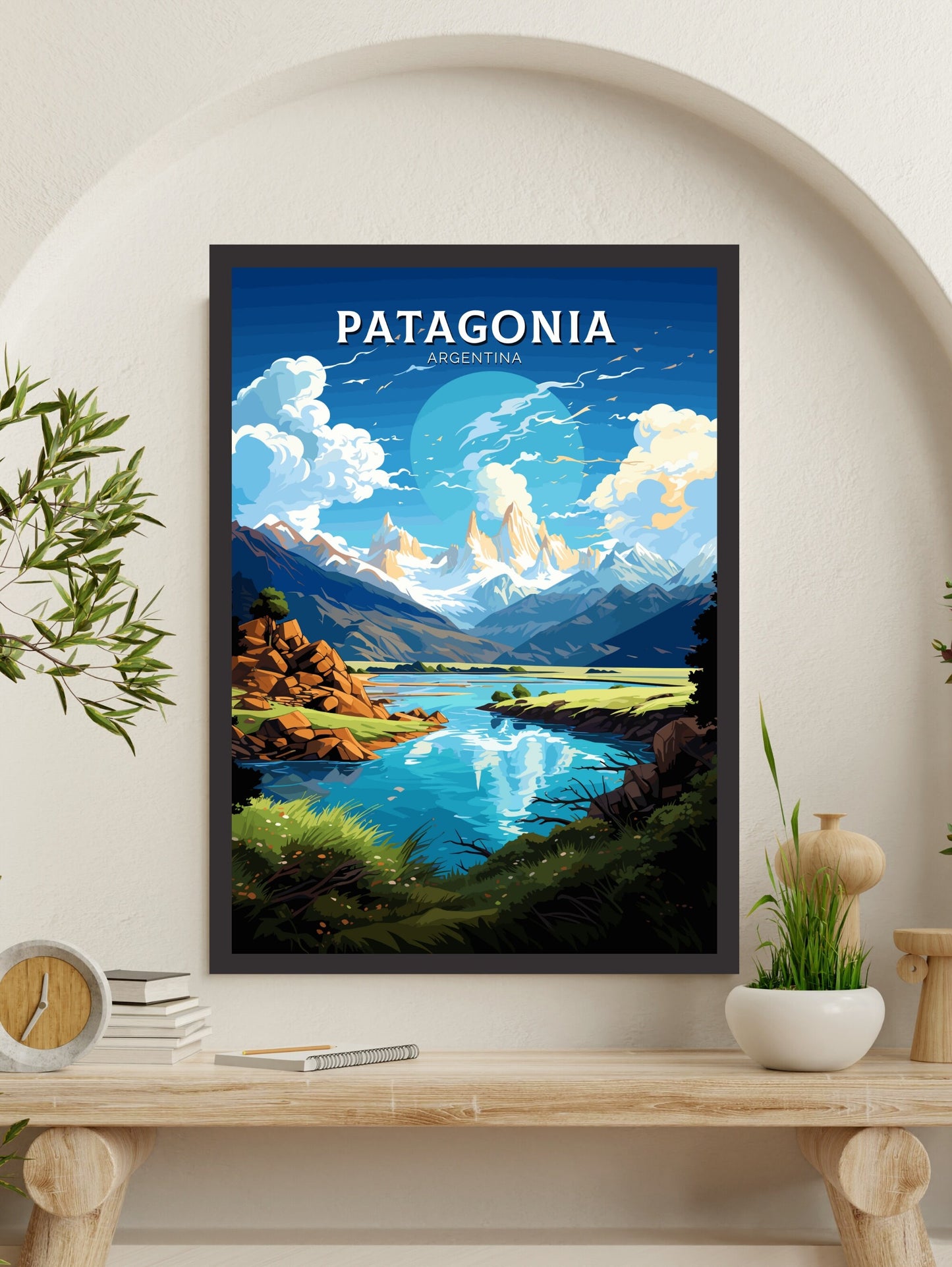Cette œuvre mêle des bleus froids et des gris terreux à l'essence sauvage de la Patagonie, évoquant le charme d'un voyage vintage avec une touche de modernité. Imprimée sur un papier de qualité supérieure, elle offre un éclat durable et une finition lisse, ce qui en fait un cadeau idéal pour les aventuriers ou les collectionneurs d'art. Cette affiche Patagonie apporte une touche de nostalgie du Sud à tous vos murs.