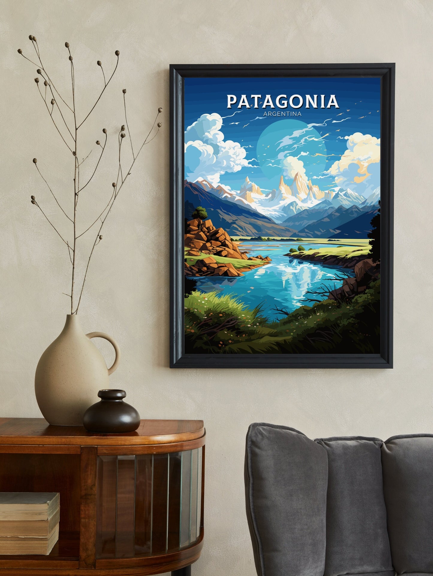 Notre affiche rétro Patagonia plonge votre intérieur dans la splendeur sauvage de la Patagonie grâce à son design nostalgique. Parfaite pour les passionnés de voyages et les amateurs d'art rétro, elle capture les sommets imposants et les glaciers glacés dans un style intemporel. Que vous ayez parcouru ses sentiers ou rêvé de sa nature sauvage, cette affiche rétro Patagonia sera un ajout magnifique à votre décoration.