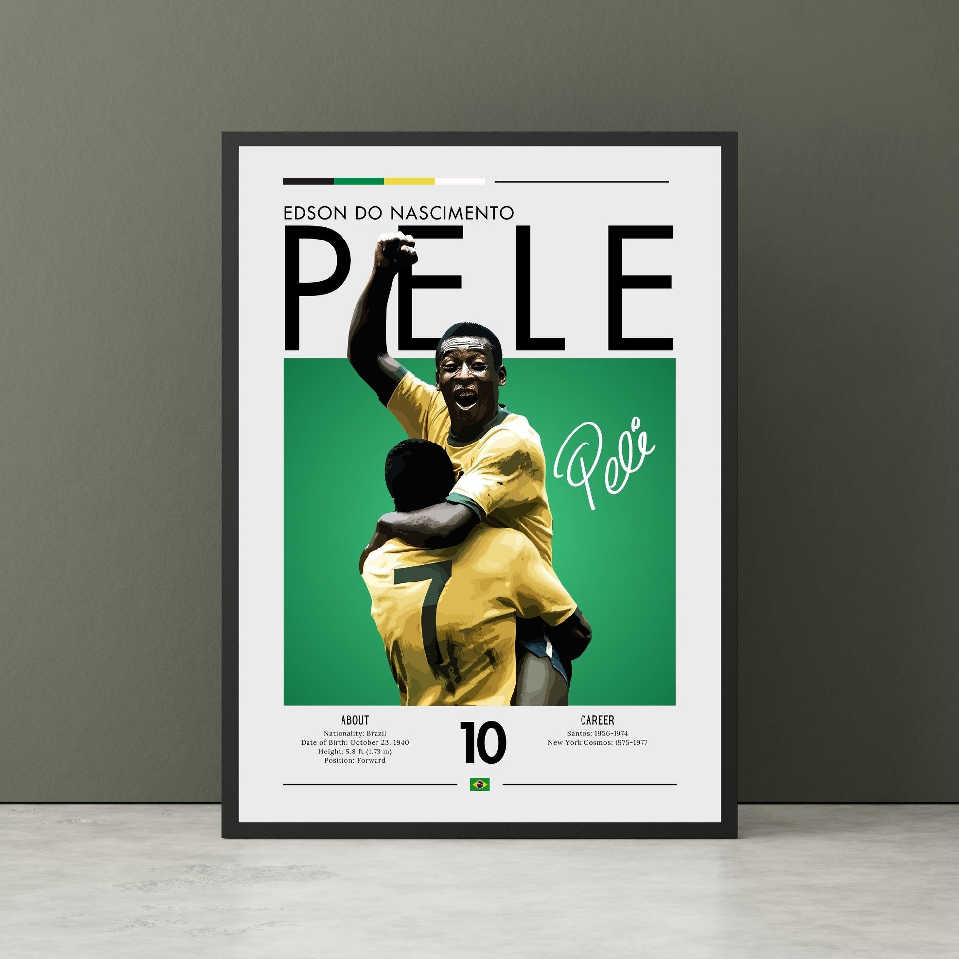 Imprimée sur un papier premium résistant à la décoloration, cette affiche est idéale pour les vrais fans de football, les collectionneurs de légendes vintage ou toute personne inspirée par l'impact mondial de Pelé. Que vous décoriez une salle de jeu, un bureau ou un mur de supporters, cette œuvre hommage fait revivre l'histoire et la passion.