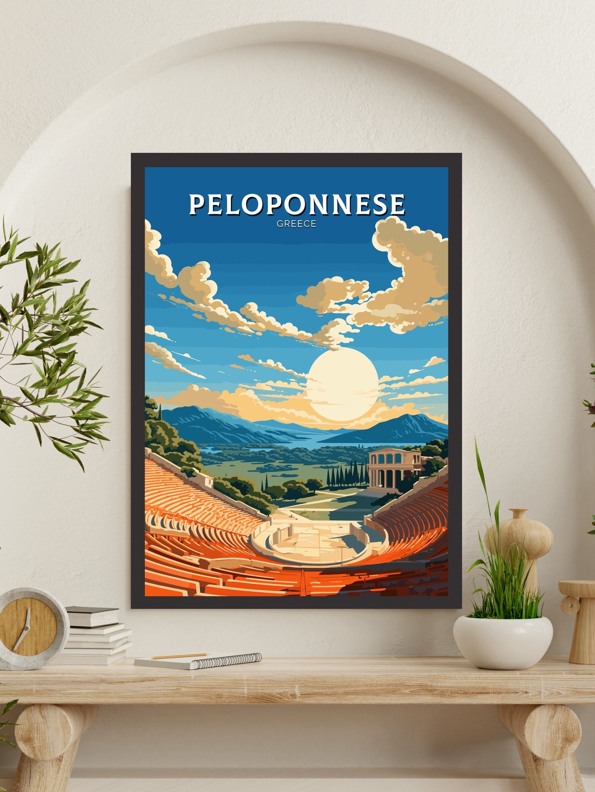 Affiche de voyage du Péloponnèse - Œuvre d'art grecque