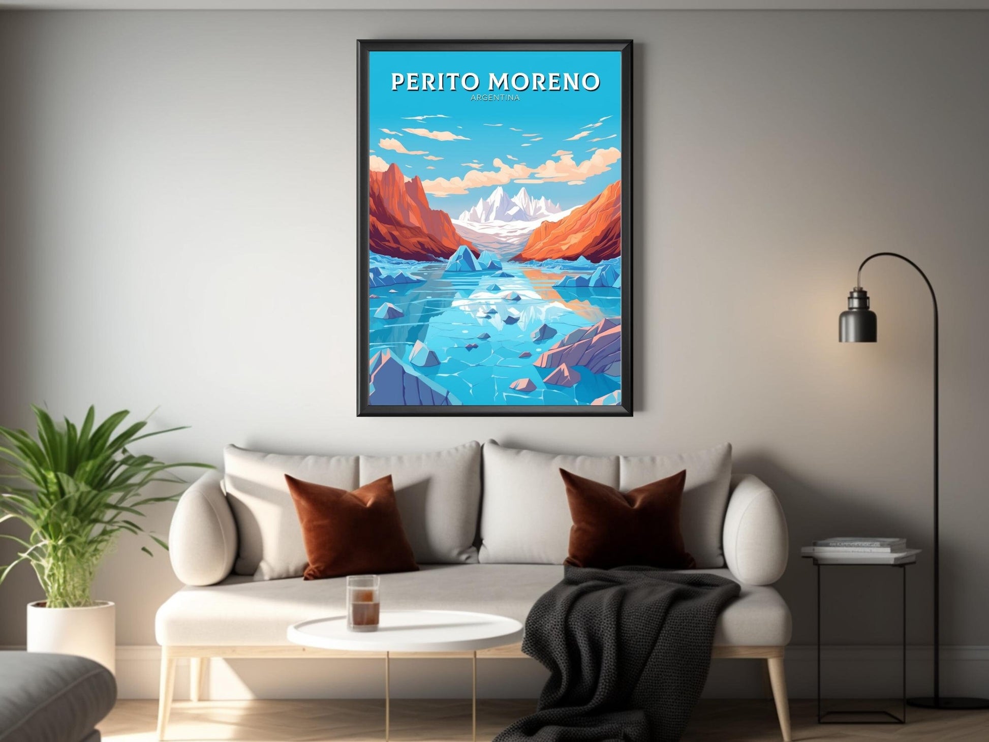 Notre affiche de voyage Perito Moreno – Art rétro sur le glacier plonge votre intérieur dans la grandeur glacée du glacier Perito Moreno en Argentine grâce à son design nostalgique. Parfaite pour les passionnés de voyages et les amateurs d'art rétro, elle capture les imposantes parois de glace et les teintes turquoise dans un style intemporel. Que vous ayez admiré ses fissures ou rêvé de son froid, cette affiche rétro Perito Moreno sera un ajout magnifique à votre décoration.