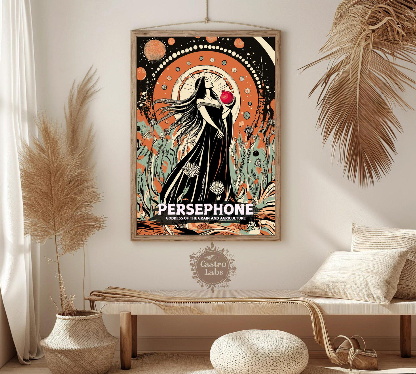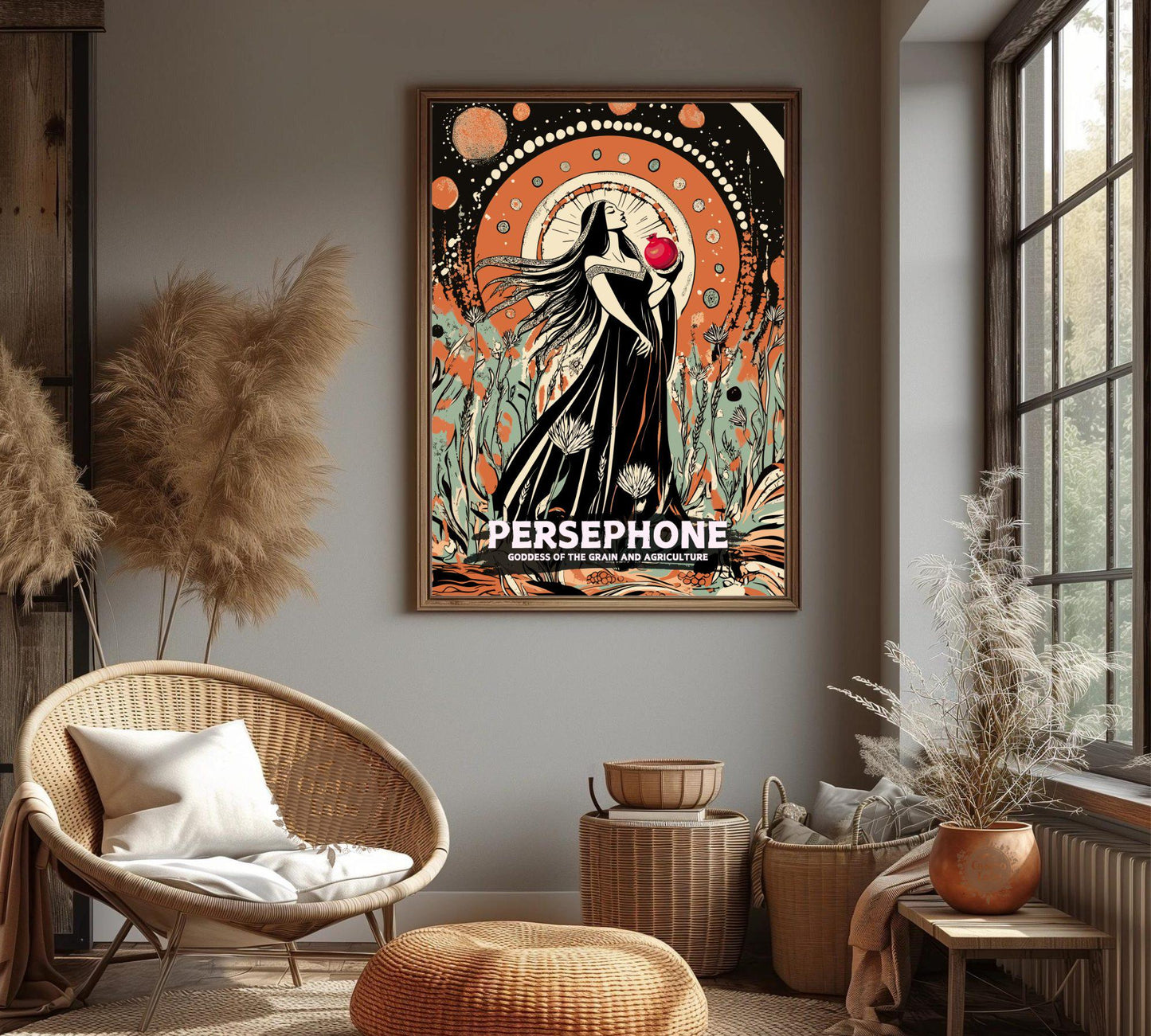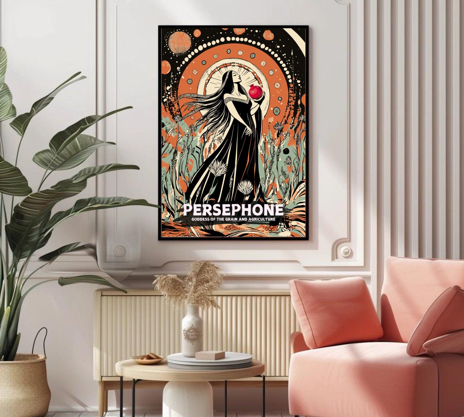 Notre affiche de la déesse Perséphone – Œuvre d'art grecque antique – illumine votre intérieur avec son design envoûtant. Parfaite pour les passionnés de mythologie et les amateurs de saisons, elle représente Perséphone, déesse grecque du printemps et des Enfers, au milieu des fleurs et des ombres. Que vous vénériez son histoire ou que vous soyez amateur d'art mythique, cette affiche grecque de Perséphone apportera une touche captivante à votre décoration.