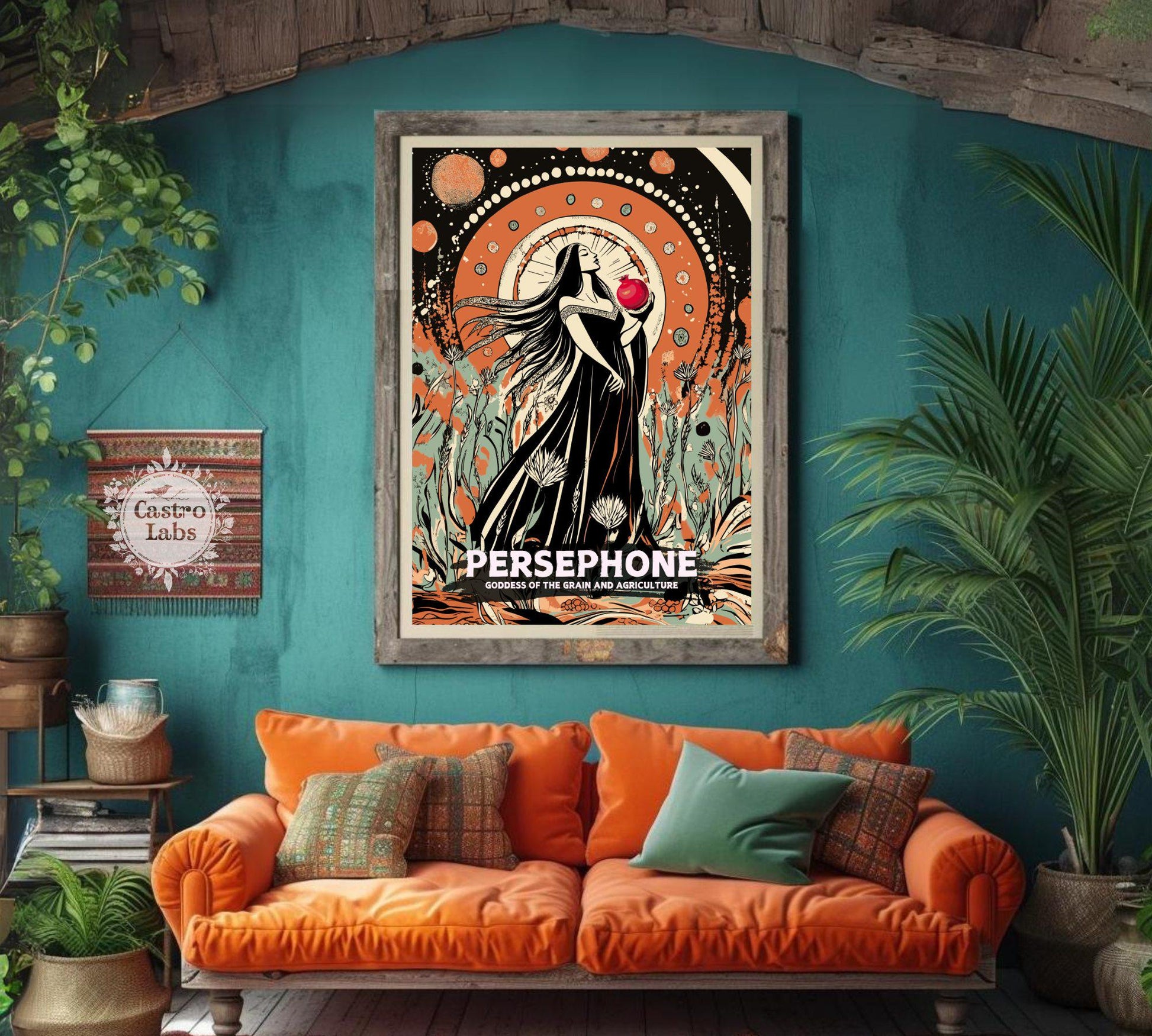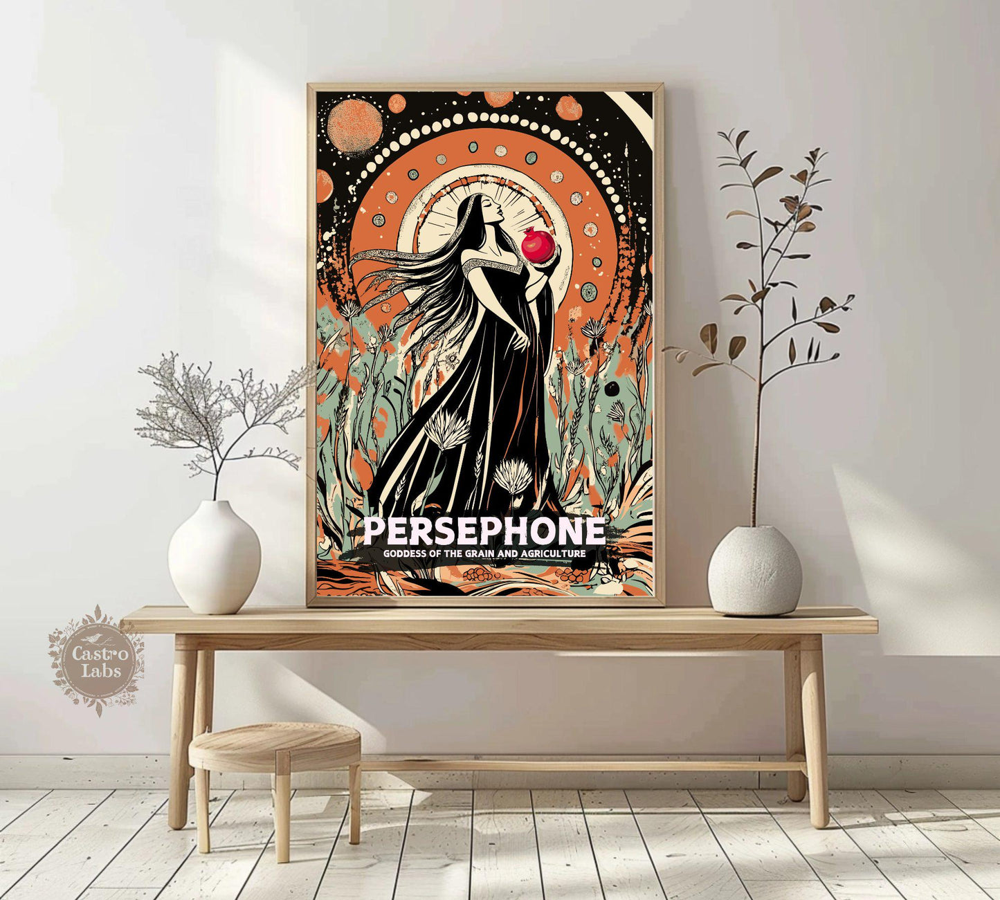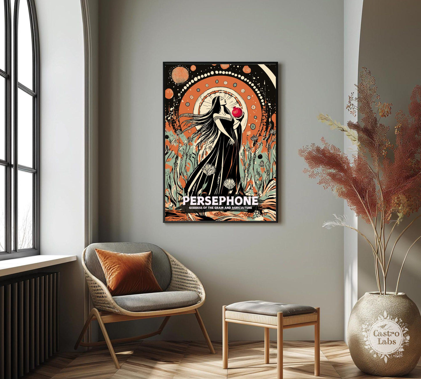 Notre affiche de la déesse Perséphone – Œuvre d'art grecque antique – illumine votre intérieur avec son design envoûtant. Parfaite pour les passionnés de mythologie et les amateurs de saisons, elle représente Perséphone, déesse grecque du printemps et des Enfers, au milieu des fleurs et des ombres. Que vous vénériez son histoire ou que vous soyez amateur d'art mythique, cette affiche grecque de Perséphone apportera une touche captivante à votre décoration.