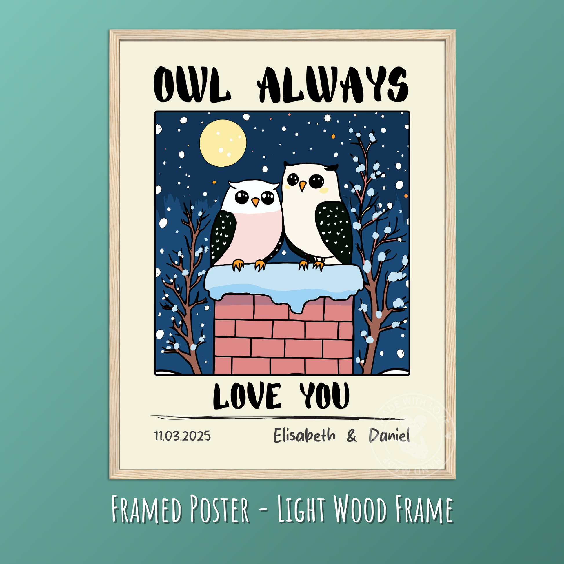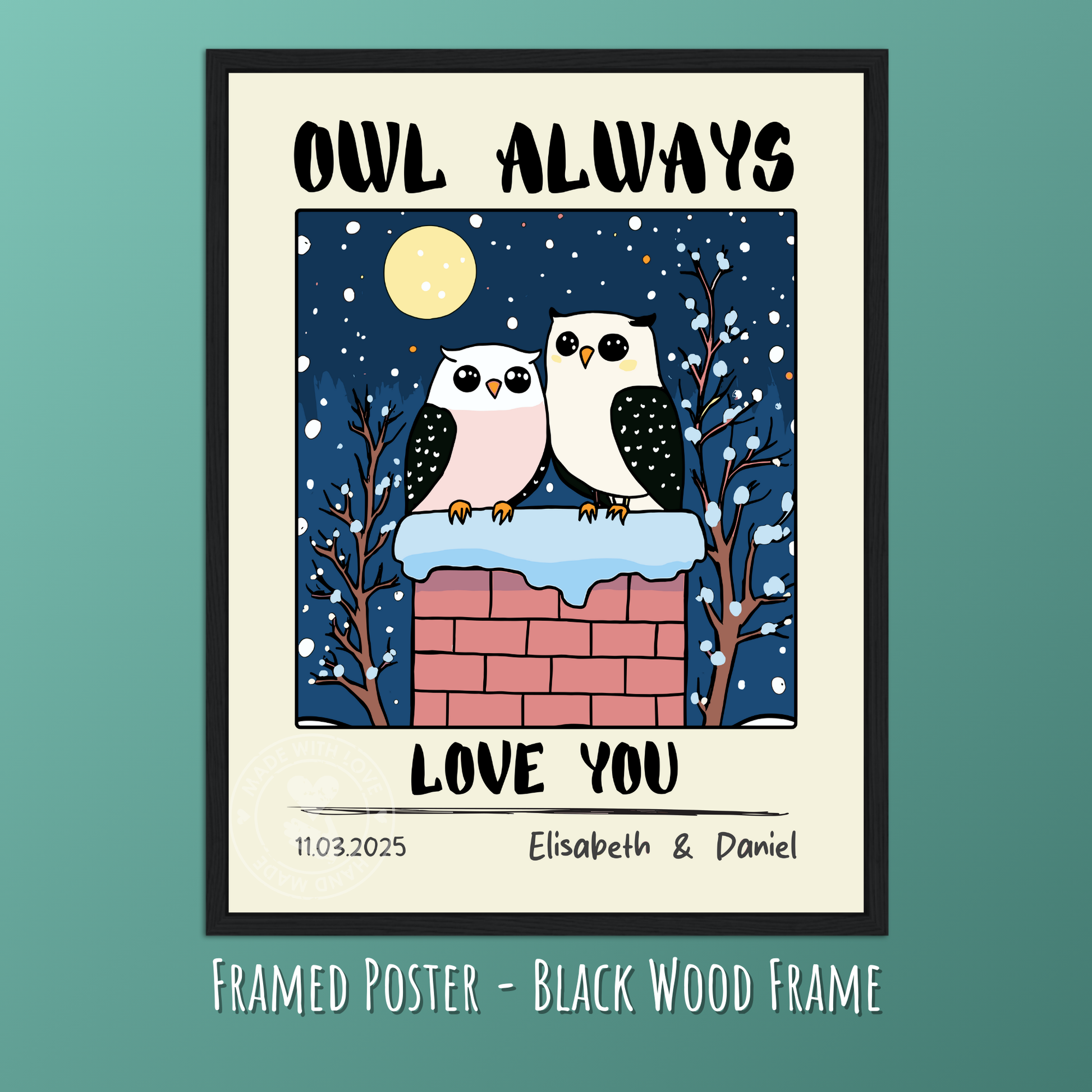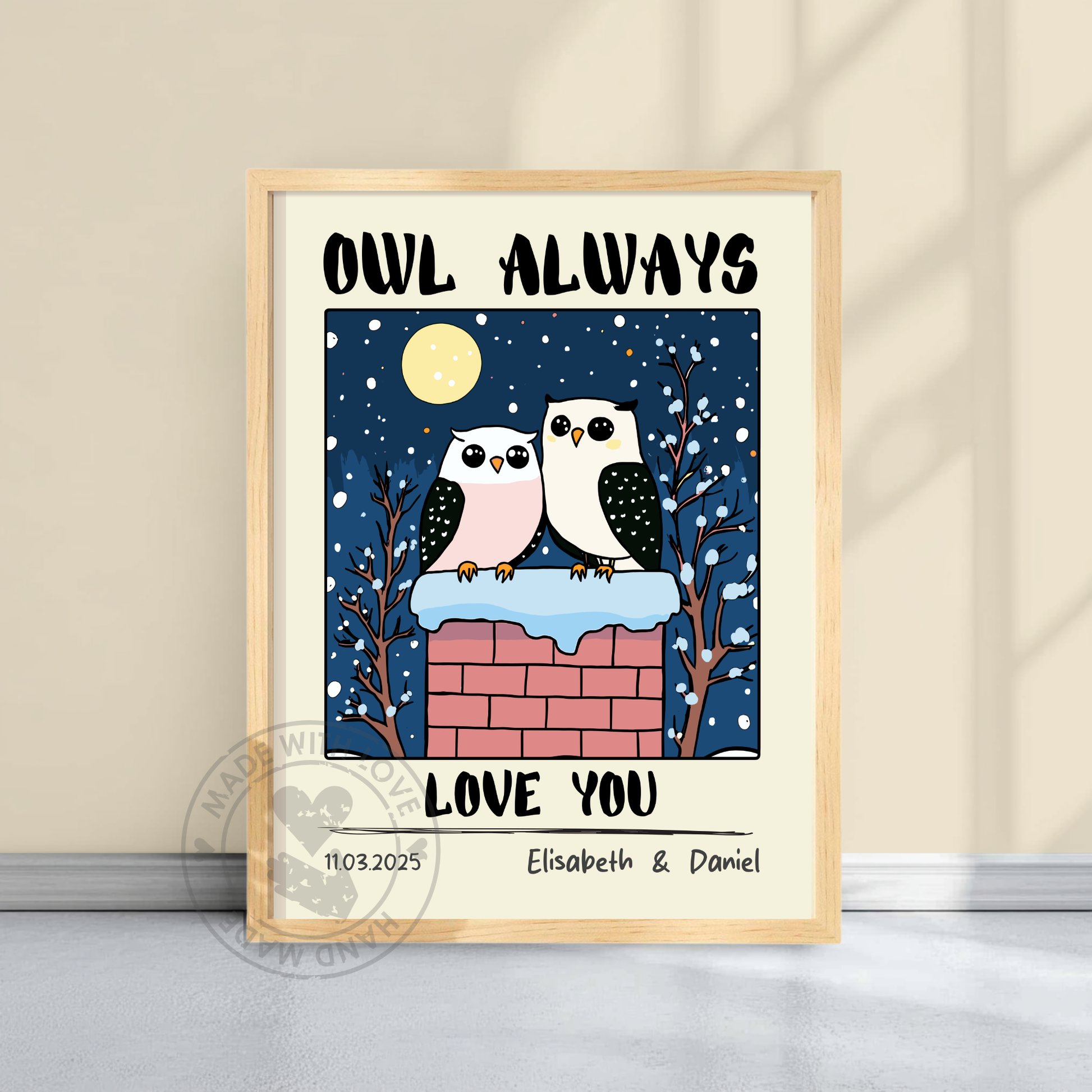 Célébrez votre amour de façon unique avec ce portrait personnalisé de couple de hiboux . Avec ses deux charmants hiboux au design rétro, cette œuvre d'art personnalisée est un cadeau idéal pour un anniversaire , des fiançailles ou un mariage , pour tous ceux qui apprécient la nature, les hiboux et une décoration d'intérieur originale. Son esthétique fantaisiste apporte chaleur et caractère à tout espace, et en fait un ajout chaleureux à votre intérieur.