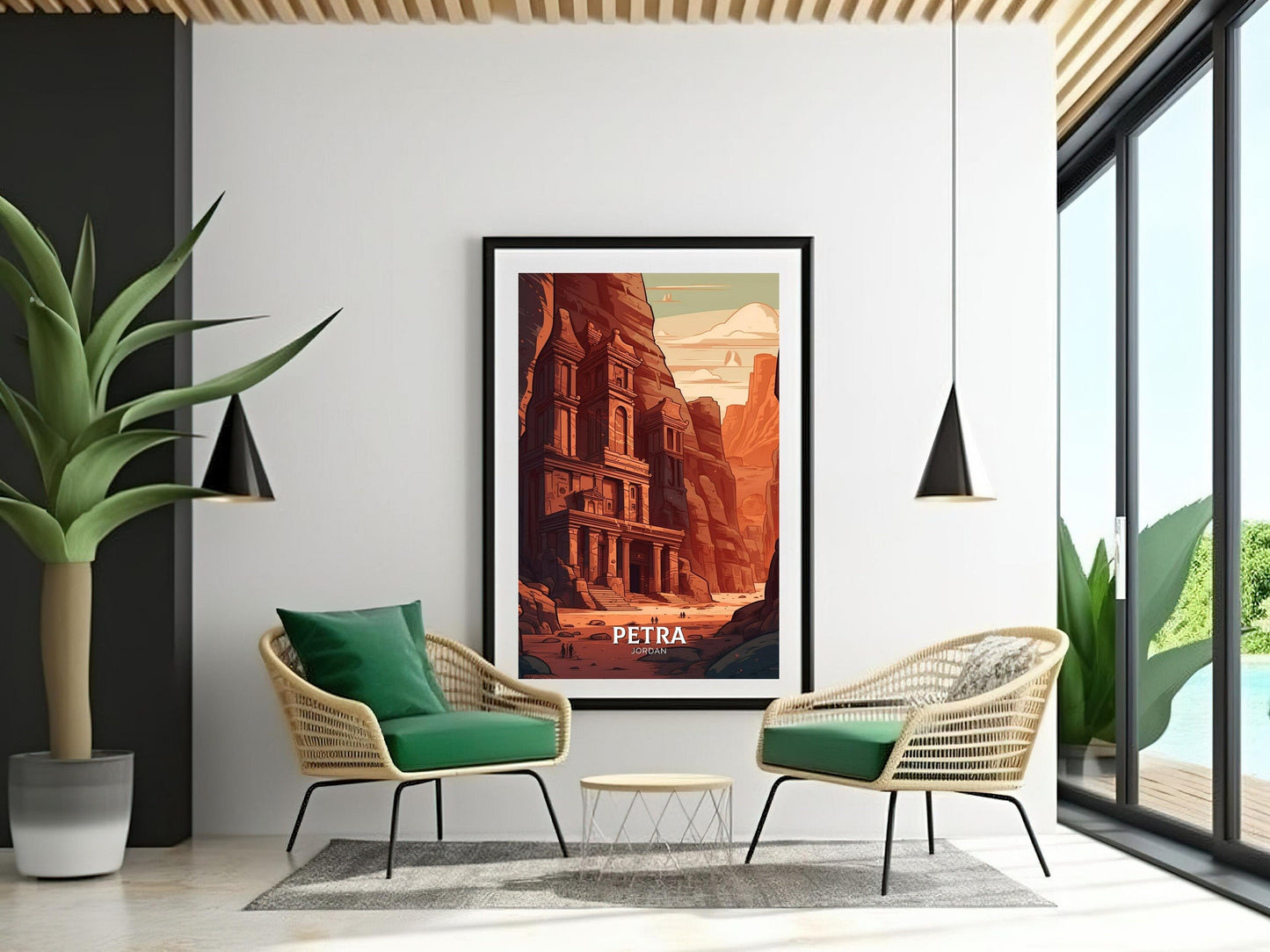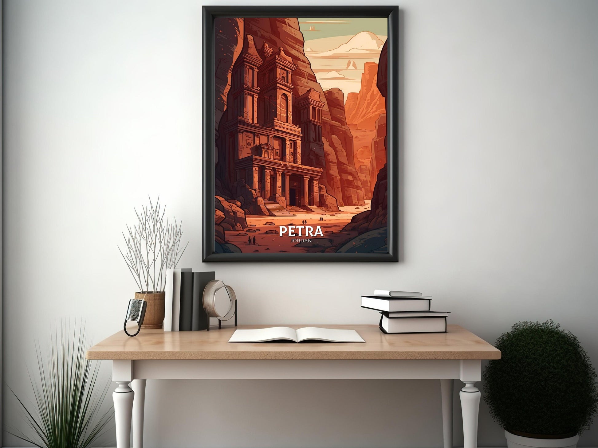 Transformez votre intérieur en un havre de paix grâce à cette œuvre captivante. Idéale pour un salon, un bureau ou un espace inspiré du voyage, elle s'associe parfaitement à d'autres œuvres d'art rétro. Plus qu'un simple objet de décoration, cette affiche de voyage rétro est un voyage dans la cité perdue de Jordanie.