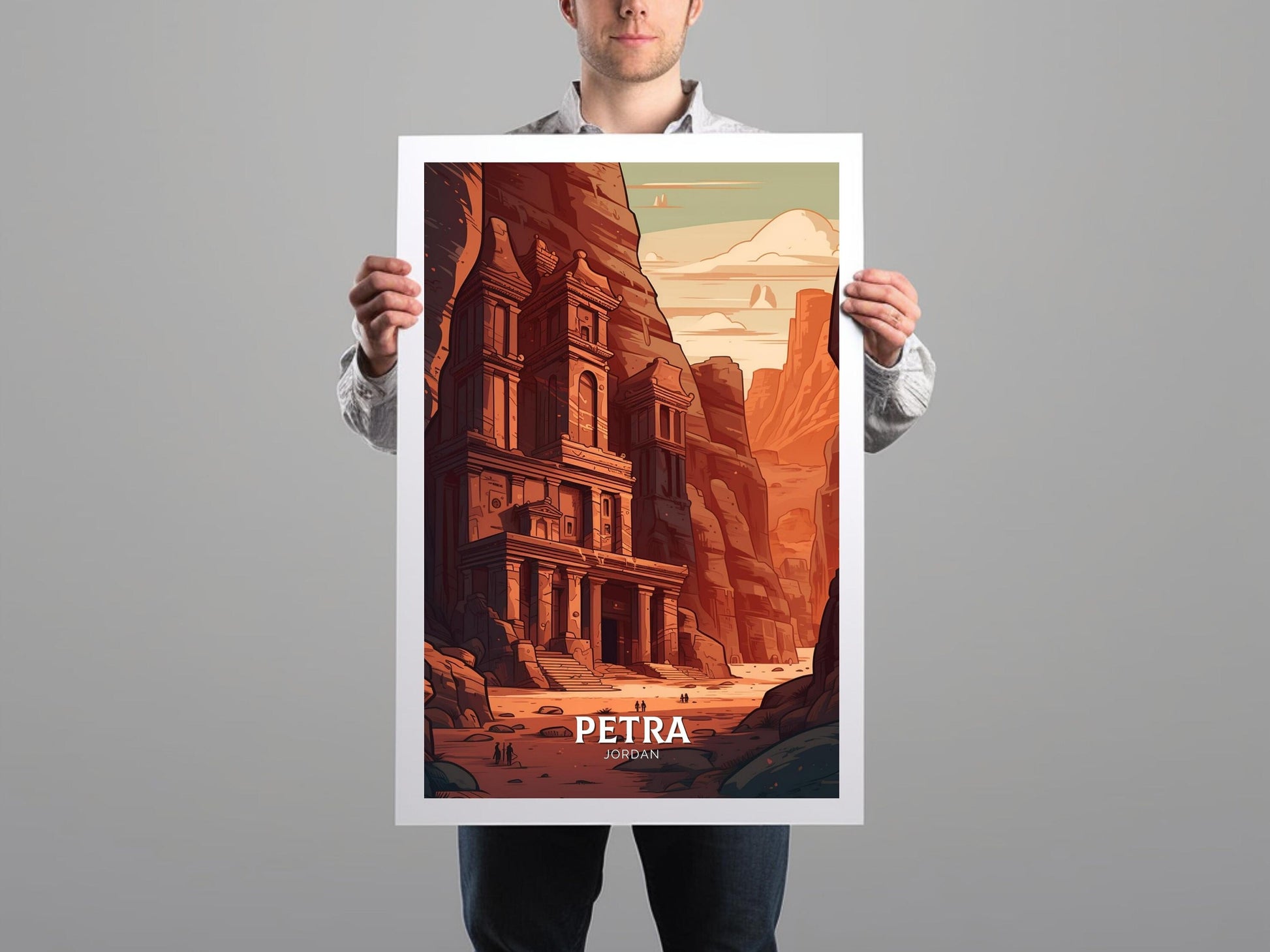 Notre affiche de voyage rétro Petra, avec son design nostalgique, plonge votre espace dans le mystère antique de la Jordanie. Parfaite pour les passionnés de voyages et les amateurs d'art rétro, elle capture les façades rocheuses rose-rouge de Petra et la grandeur du désert avec un style intemporel. Que vous ayez exploré ses canyons ou rêvé de son histoire, cette affiche rétro Petra sera un ajout saisissant à votre décoration.