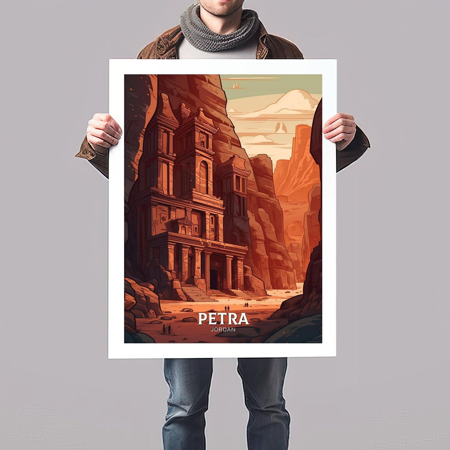Cette œuvre mêle des rouges chauds et des beiges sableux à l'essence majestueuse de Pétra, évoquant le charme d'un voyage vintage avec une touche de modernité. Imprimée sur un papier de qualité supérieure, elle offre un éclat durable et un fini lisse, ce qui en fait un cadeau idéal pour les aventuriers ou les collectionneurs d'art. Cette affiche de Pétra ajoute une touche de merveille archéologique à n'importe quel mur.