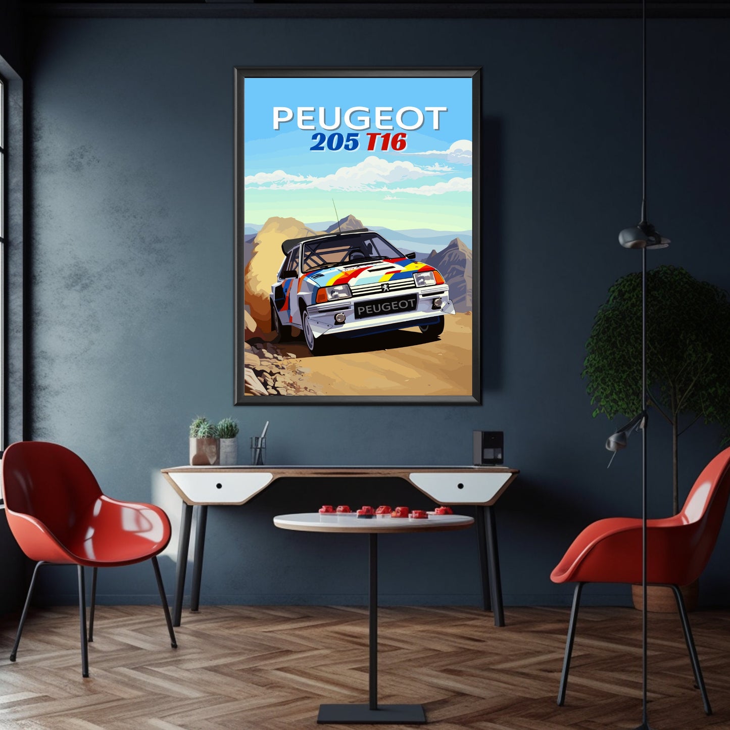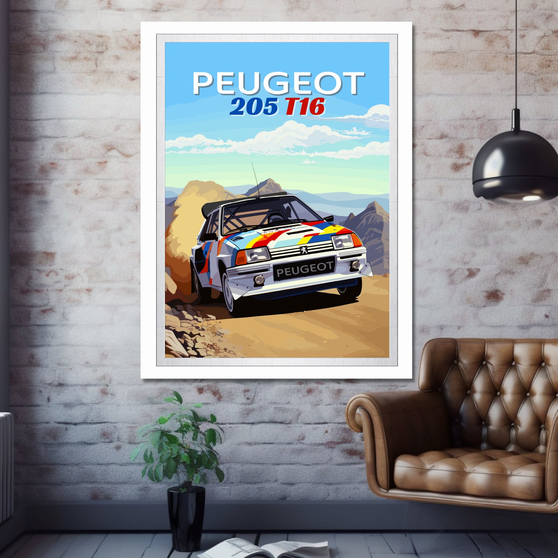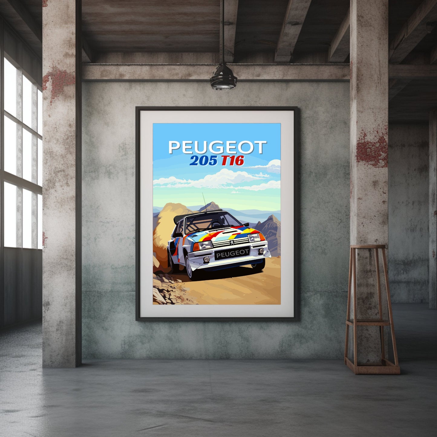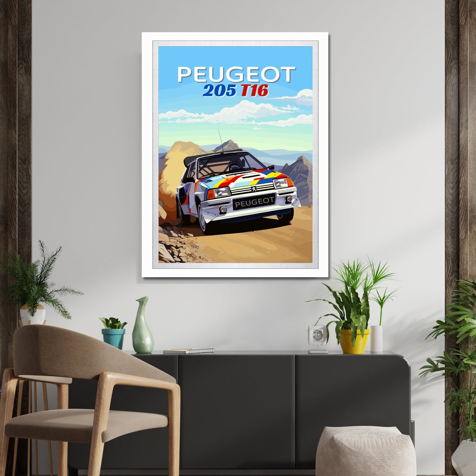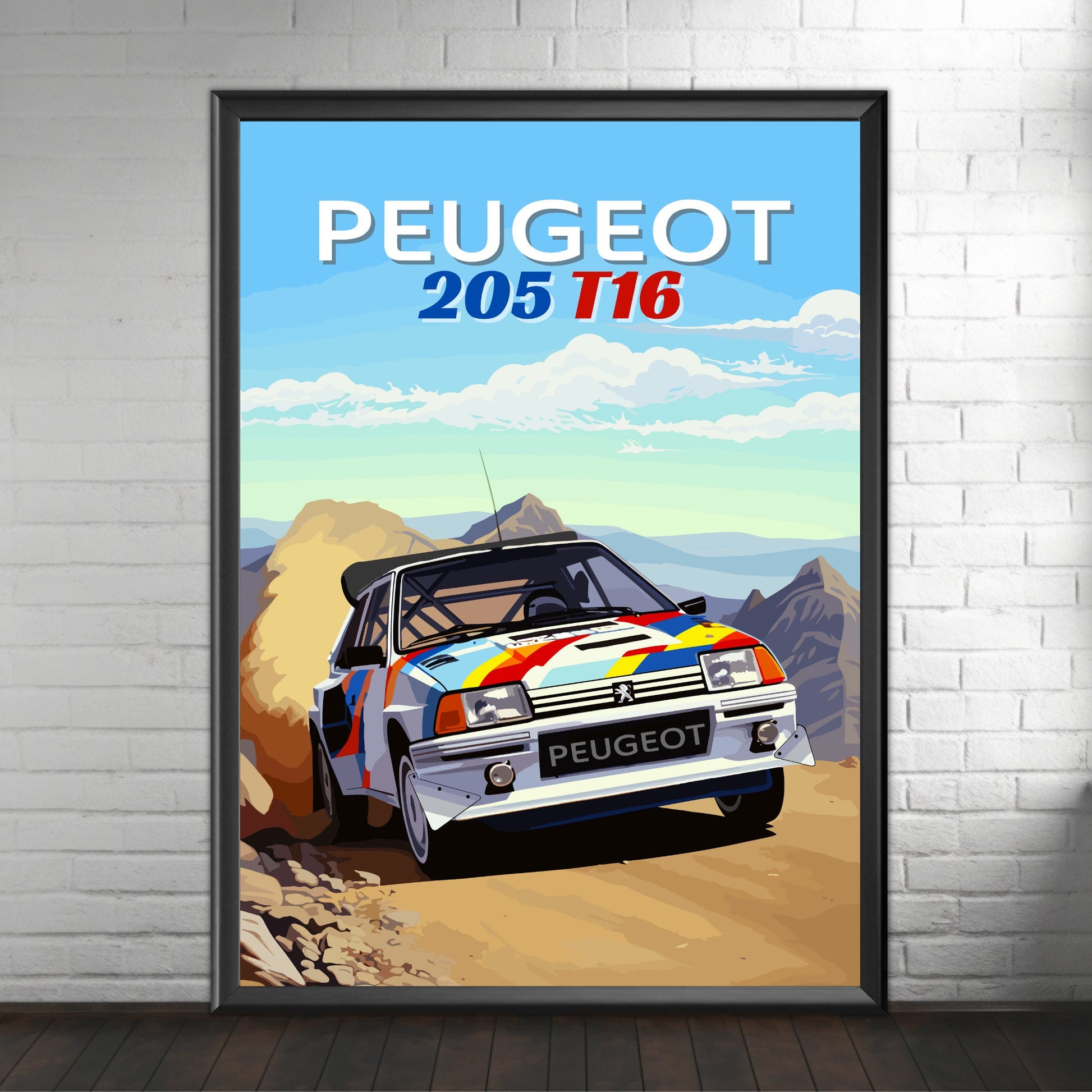 Affiche Peugeot 205 T16 – Décoration murale emblématique du rallye Groupe B