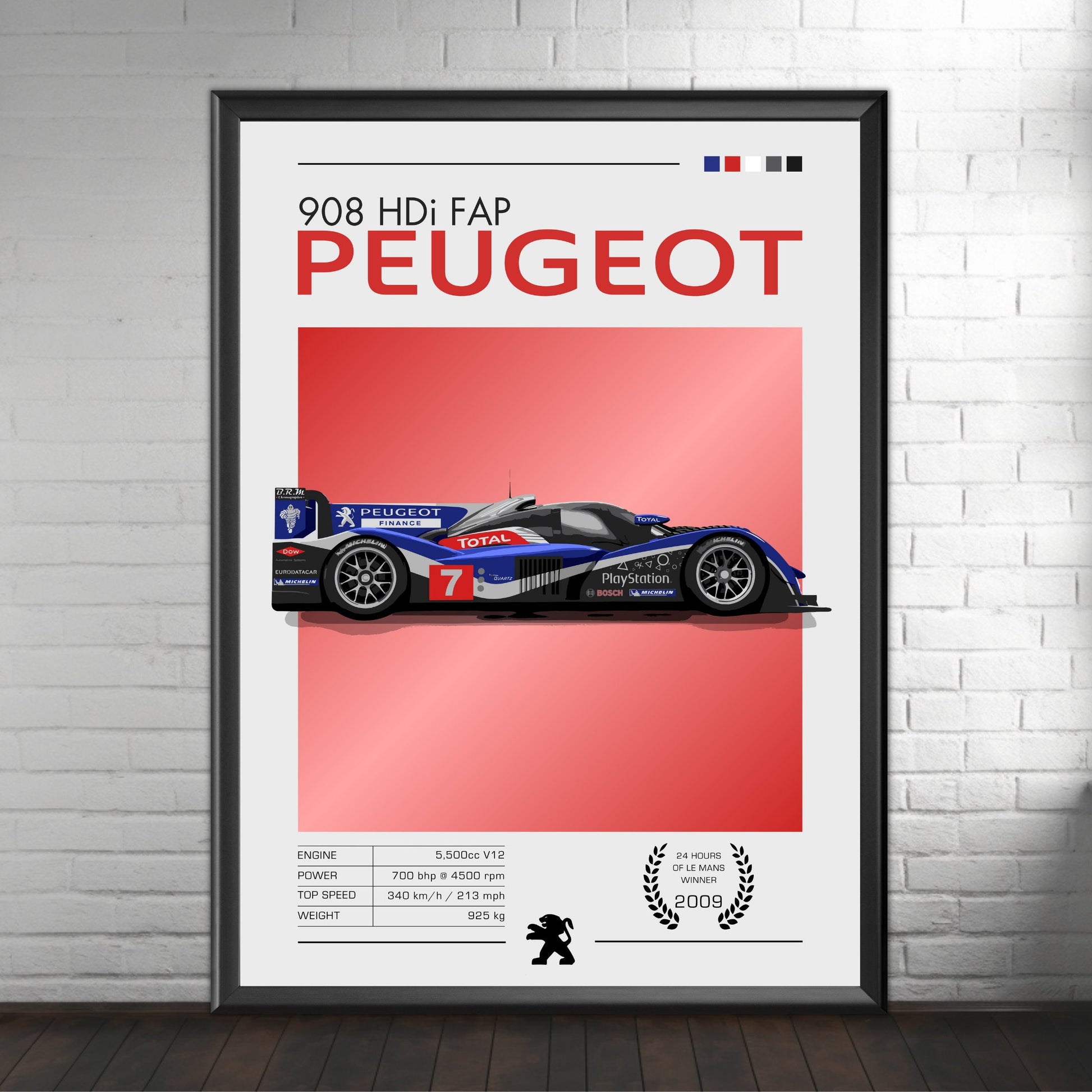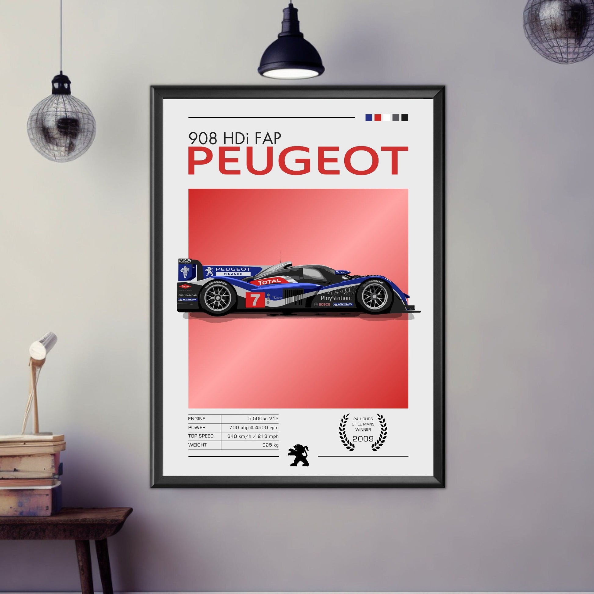 Imprimée sur des matériaux de première qualité , l' affiche Peugeot 908 offre des détails nets et des couleurs éclatantes, mettant en valeur le design aérodynamique et la technologie avancée de ce prototype emblématique des 24 Heures du Mans. Idéale pour les chambres, les bureaux, les garages ou les salons , elle apporte une touche sportive palpitante à tous les espaces.